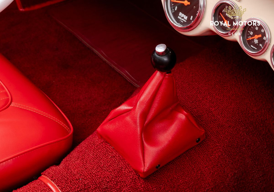 Весь салон, включая торпедо и дверные карты, обшит кожей. Но самой удивительной и уникальной частью является панель торпедо. Слева от водителя расположен большой аналоговый спидометр. В центре консоли горизонтально расположилось еще 6 аналоговых датчиков. Удивительной частью является и установка зеркала заднего вида в центр торпедо культового спорткара, мы все привыкли, что оно на лобовом стекле, но раньше думали немного иначе.