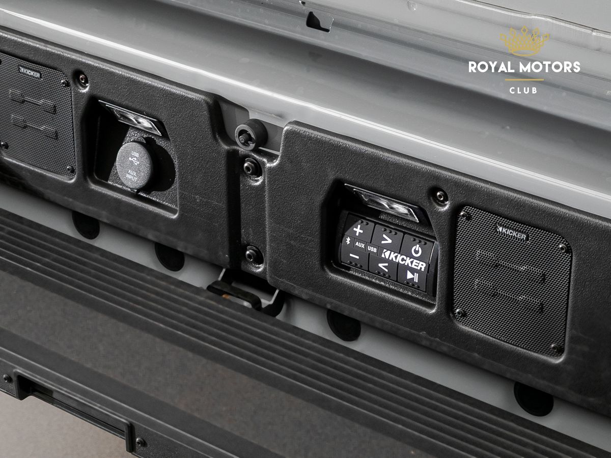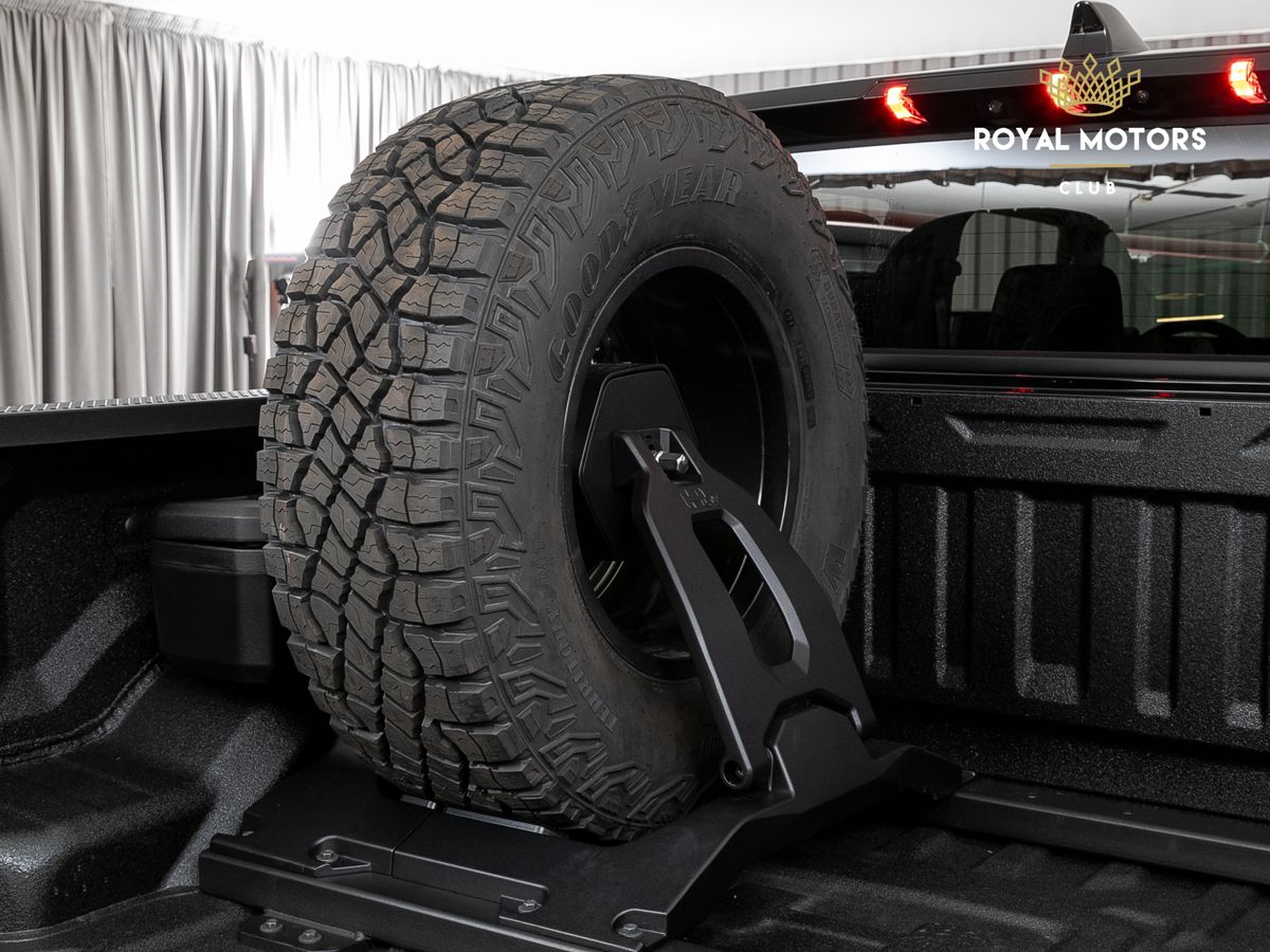 Полноуправляемое шасси в режиме Auto позволяет улучшить маневренность: задние колеса поворачиваются на угол до 10 градусов. Задний подруливающий механизм можно отключить или перевести в режим CrabWalk - все четыре колеса поворачиваются в одну сторону, и пикап может двигаться «по диагонали» подобно крабу. А для движения по асфальтовым трассам предусмотрен автопилот Super Cruise с функцией автоматической смены полосы движения.