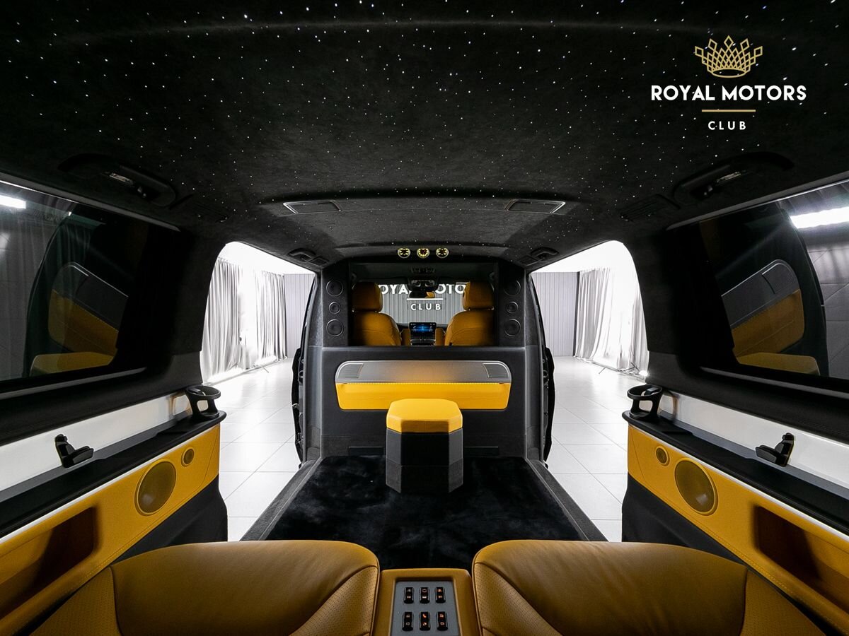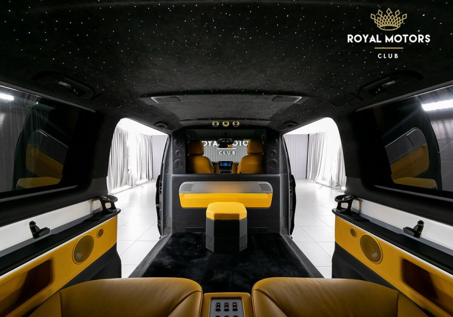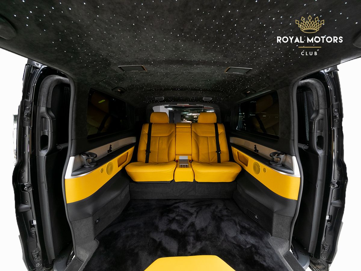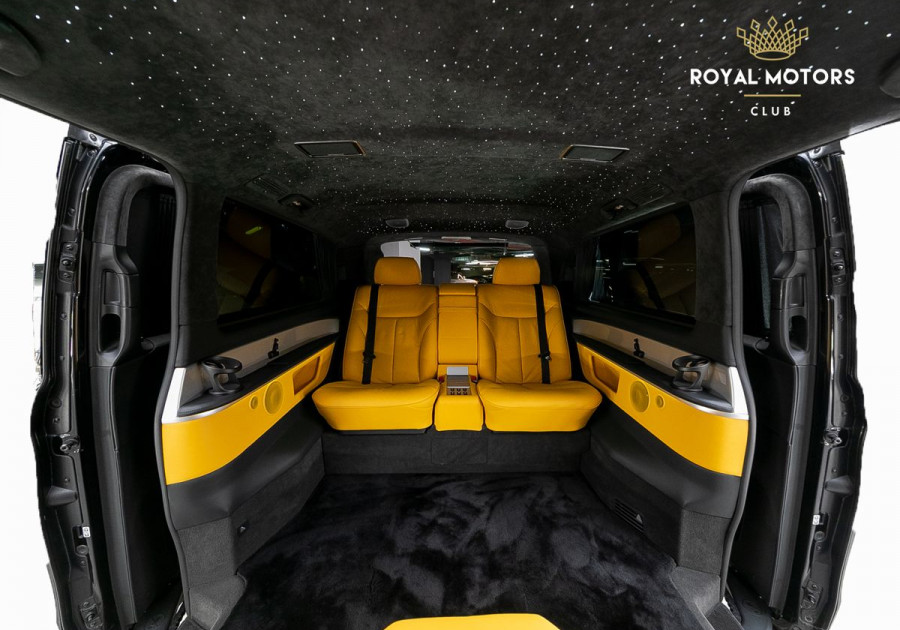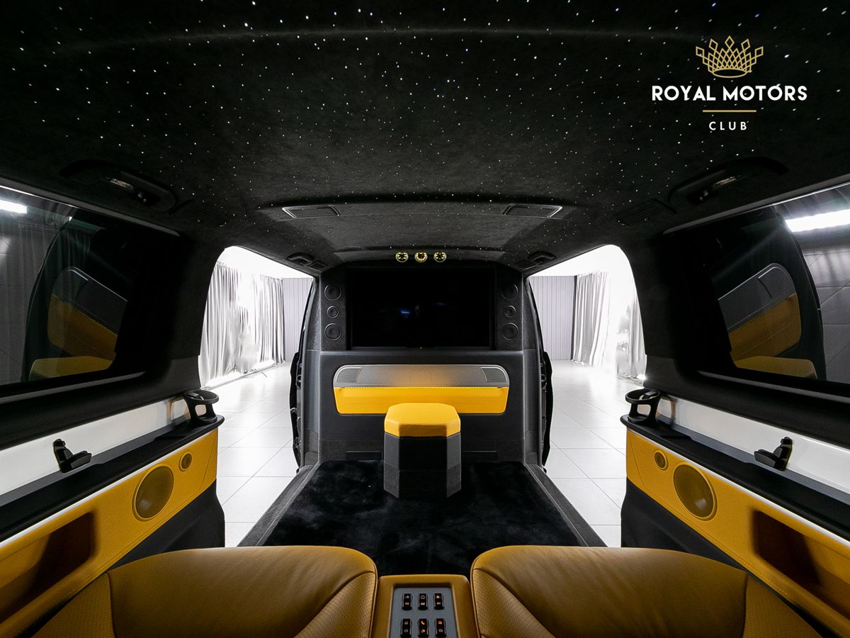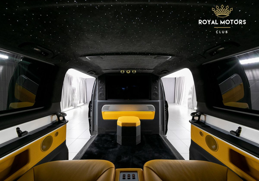 Чистокровный немец, выполненный в чёрном цвете в сочетании с ярким салоном из кожи, составляет лаконичную композицию. Минивэн включает в себя 4 пассажирских места. Данная комплектация дополняется следующими функциями: