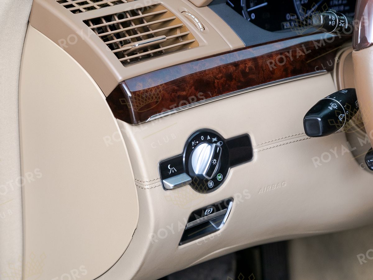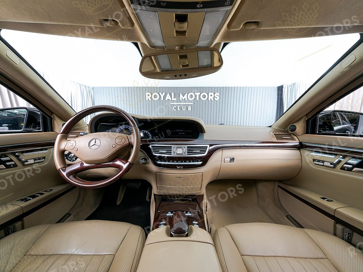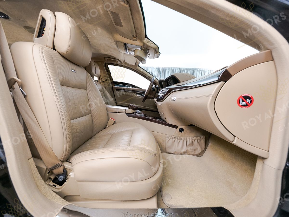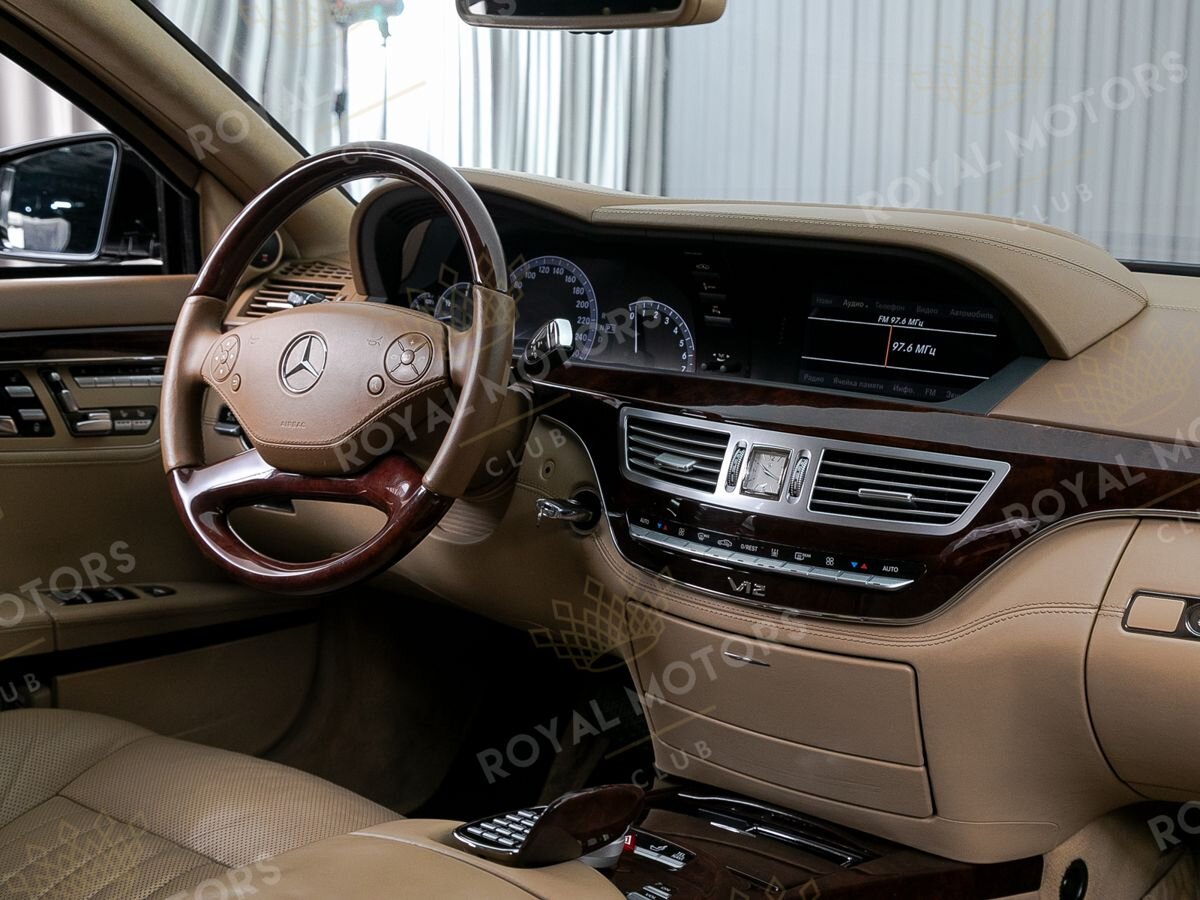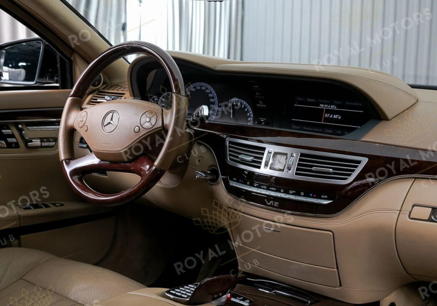 Интерьер Mercedes-Benz S-Class создан из высококачественных материалов с применением последних технологий того времени. Мультимедийная система COMAND с технологией «Split View» позволяет водителю и пассажиру видеть на одном экране разные изображения в зависимости от угла обзора.