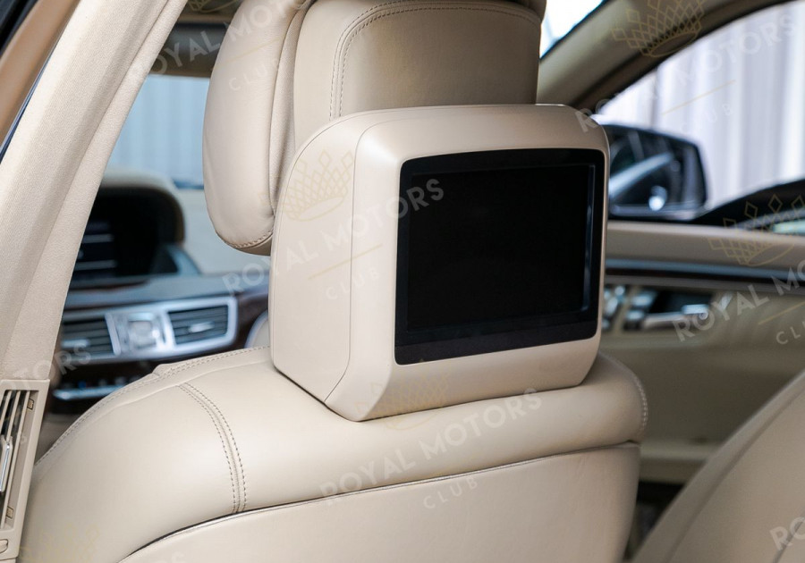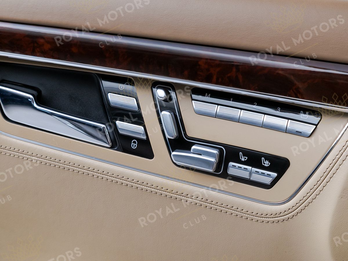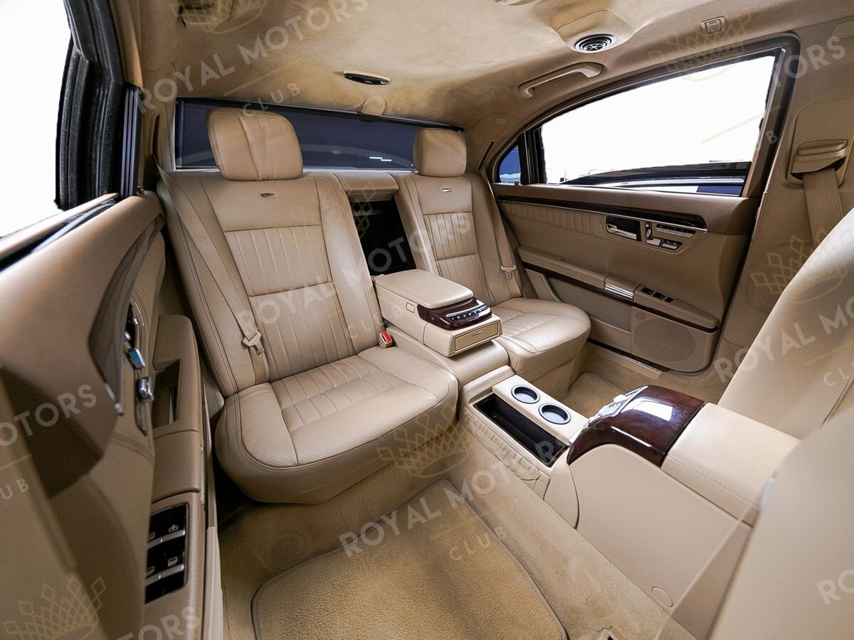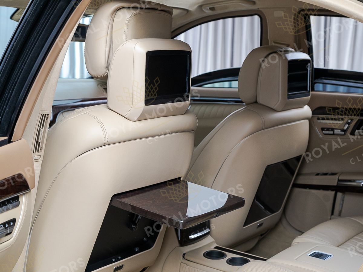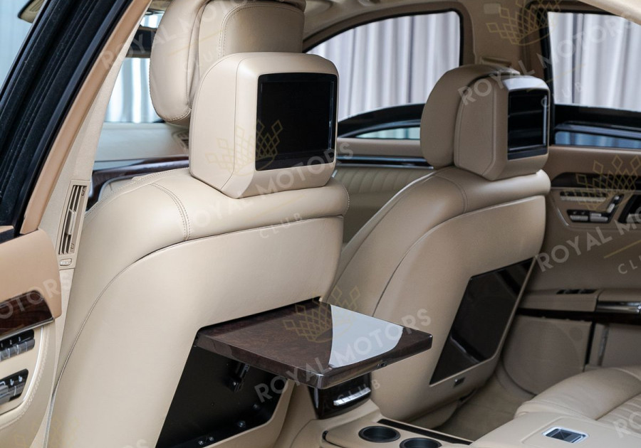 Как всегда, S-Class отличается высочайшим уровнем комфорта. Удобные передние сиденья имеют множество регулировок с памятью настроек. В подголовники вмонтированы экраны развлекательной системы. Особый комфорт сзади гарантирован за счёт удлинённой версии кузова, где задний ряд разделен на два индивидуально регулируемых посадочных места с массивным функциональным подлокотником, в который встроен блок управления мультимедийной системой.