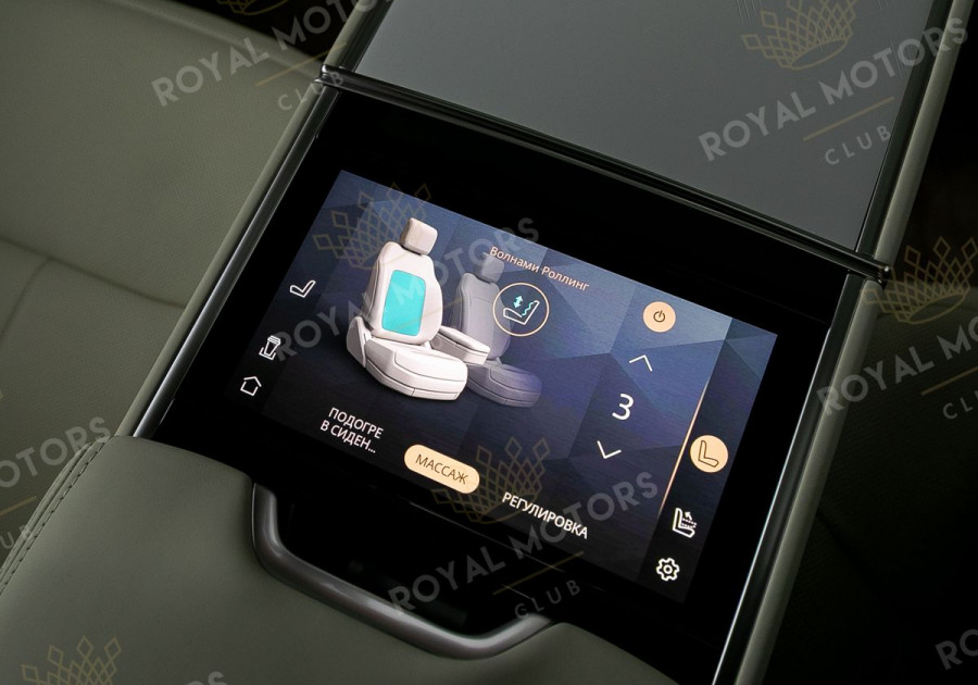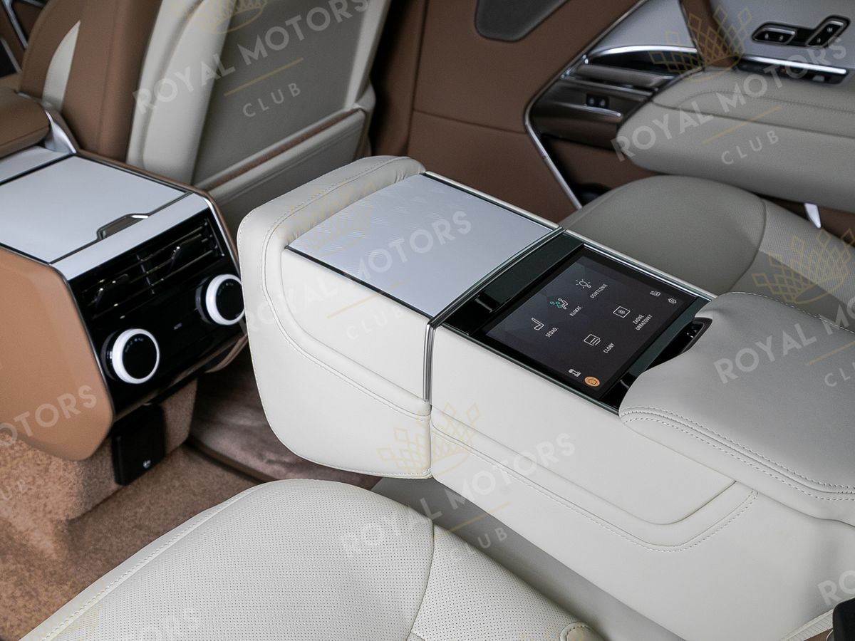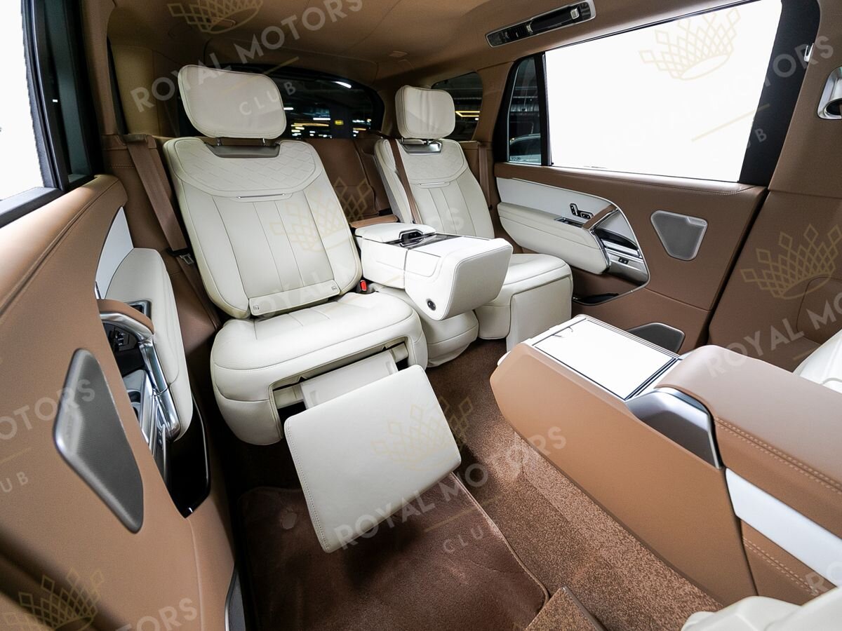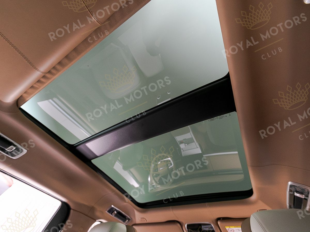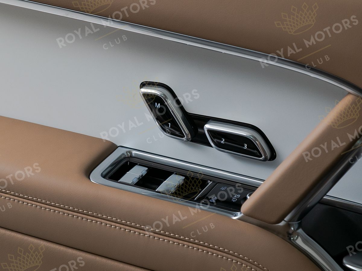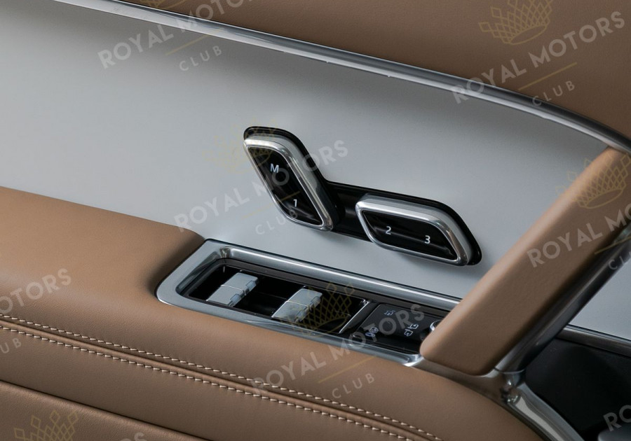 Комплектация оснащена массажем/вентиляцией сидений, системой оттоман, мониторами в спинках передних сидений, камерами с обзором 360, проекцией, отделкой рулевого колеса деревом, солнцезащитными шторками, колёсными дисками R23 и максимальной аудиосистемой Meridian Signature.