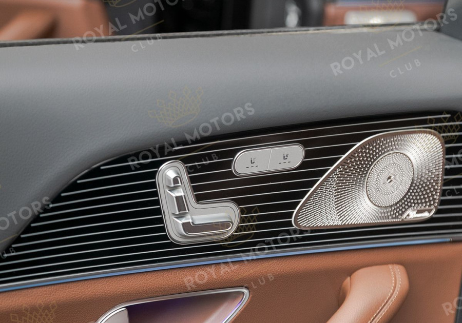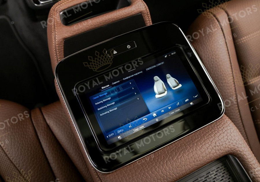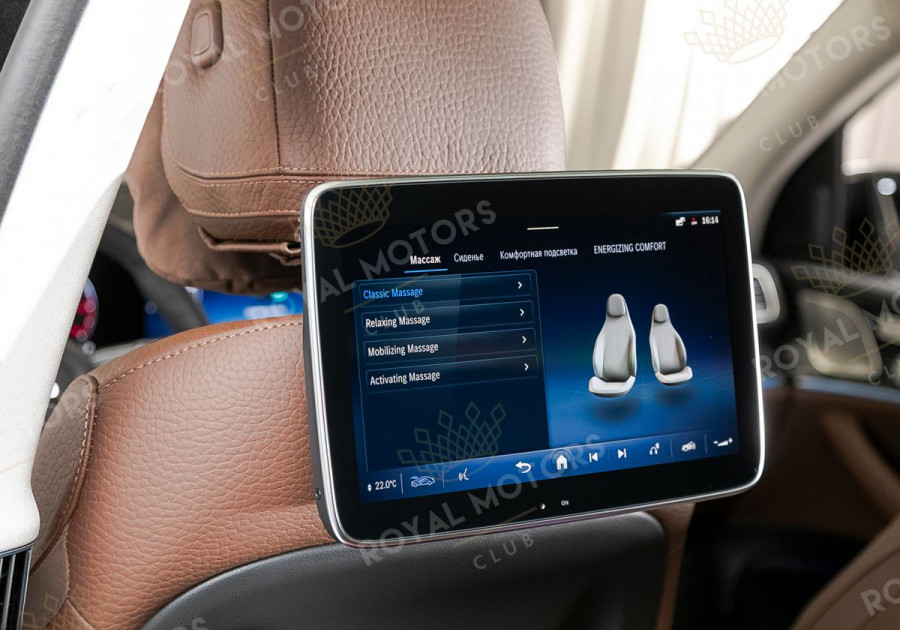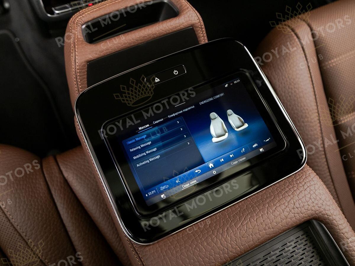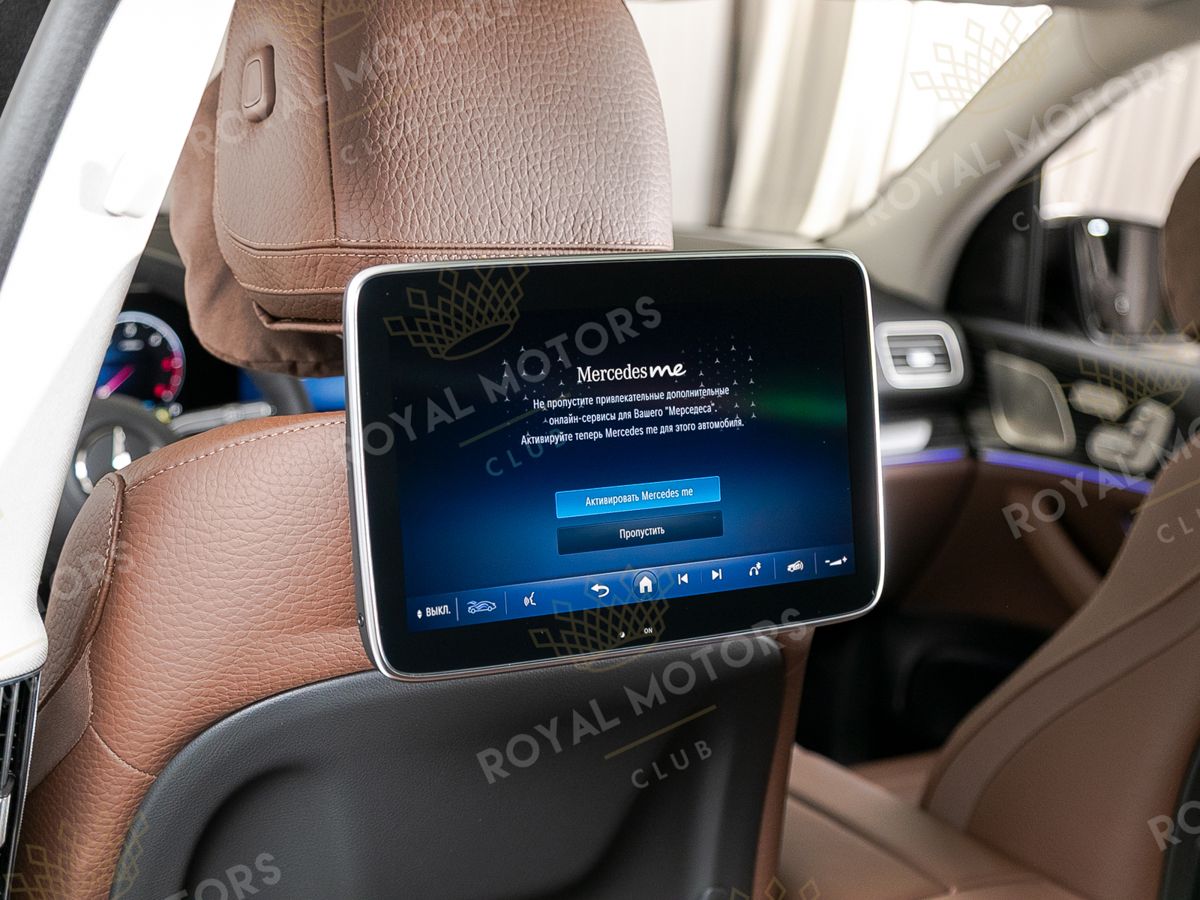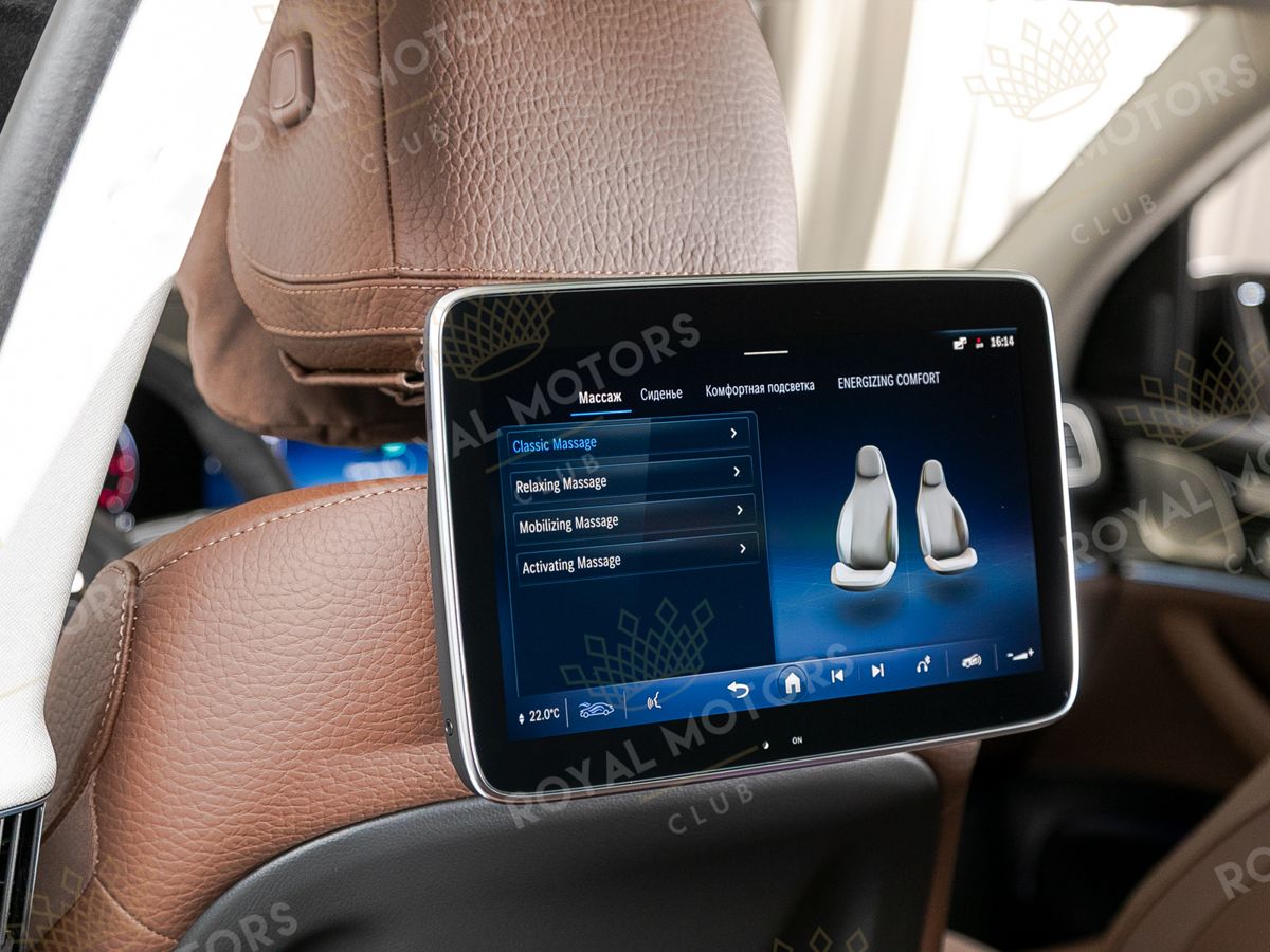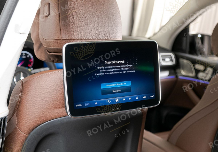 Комплектация оснащена AMG Line, пневматической подвеской, мониторами в спинках передних сидений, активным круиз-контролем, проекцией, массажем/вентиляцией сидений, камерами с обзором 360, панорамой и премиальной аудиосистемой Burmester.