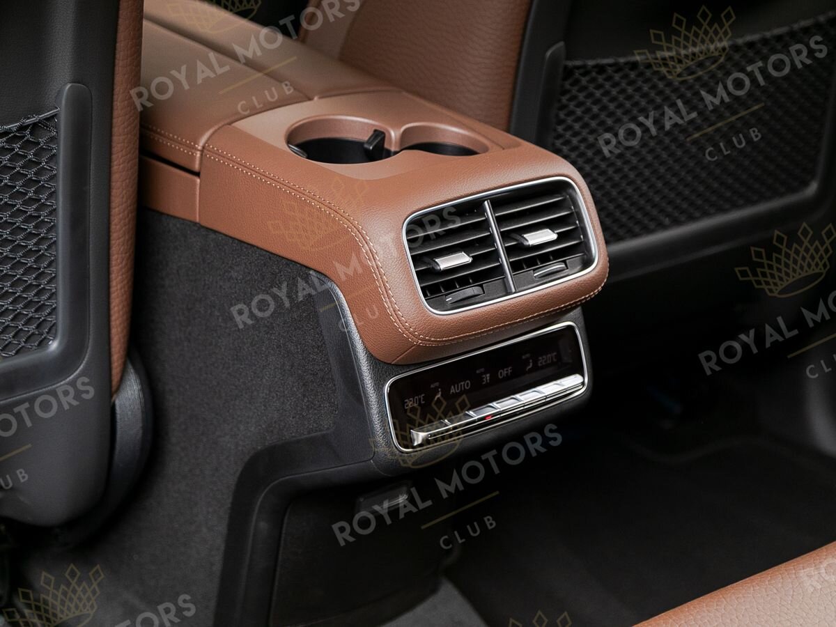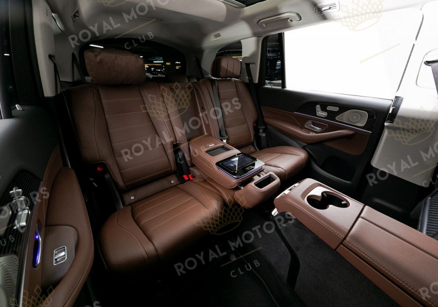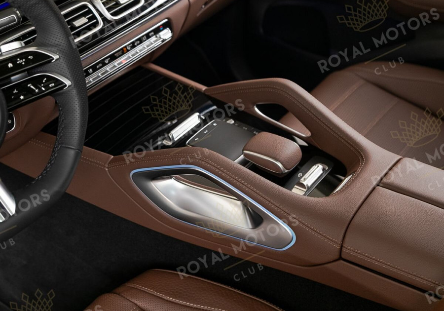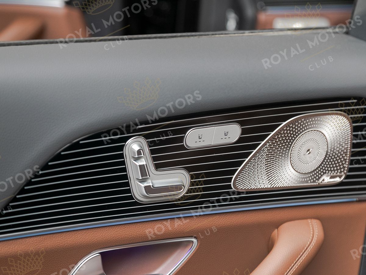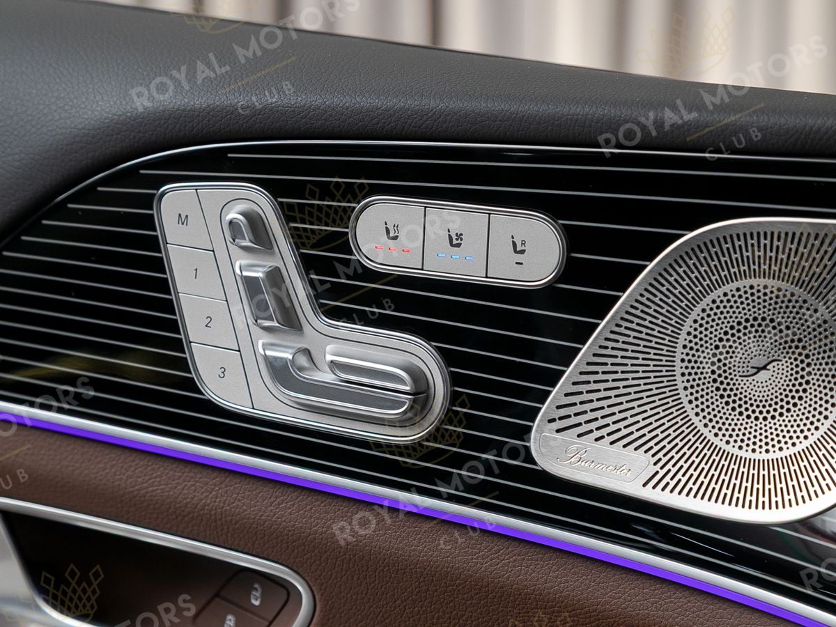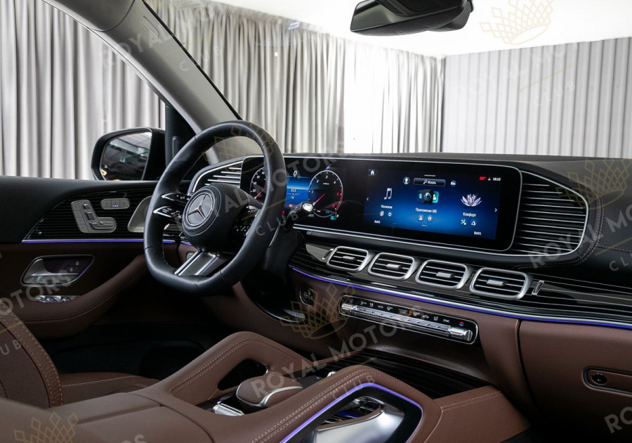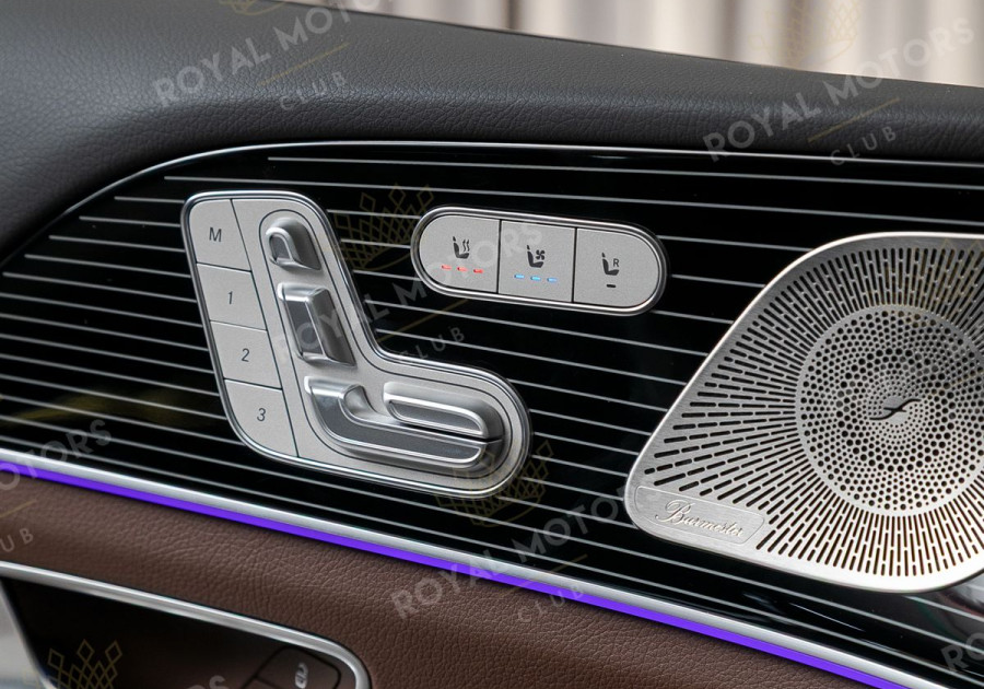 Комплектация оснащена AMG Line, пневматической подвеской, мониторами в спинках передних сидений, активным круиз-контролем, проекцией, массажем/вентиляцией сидений, камерами с обзором 360, панорамой и премиальной аудиосистемой Burmester.