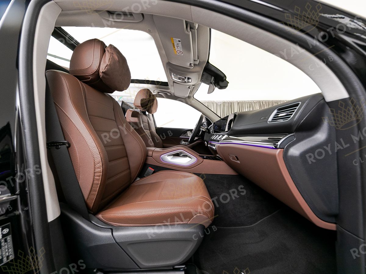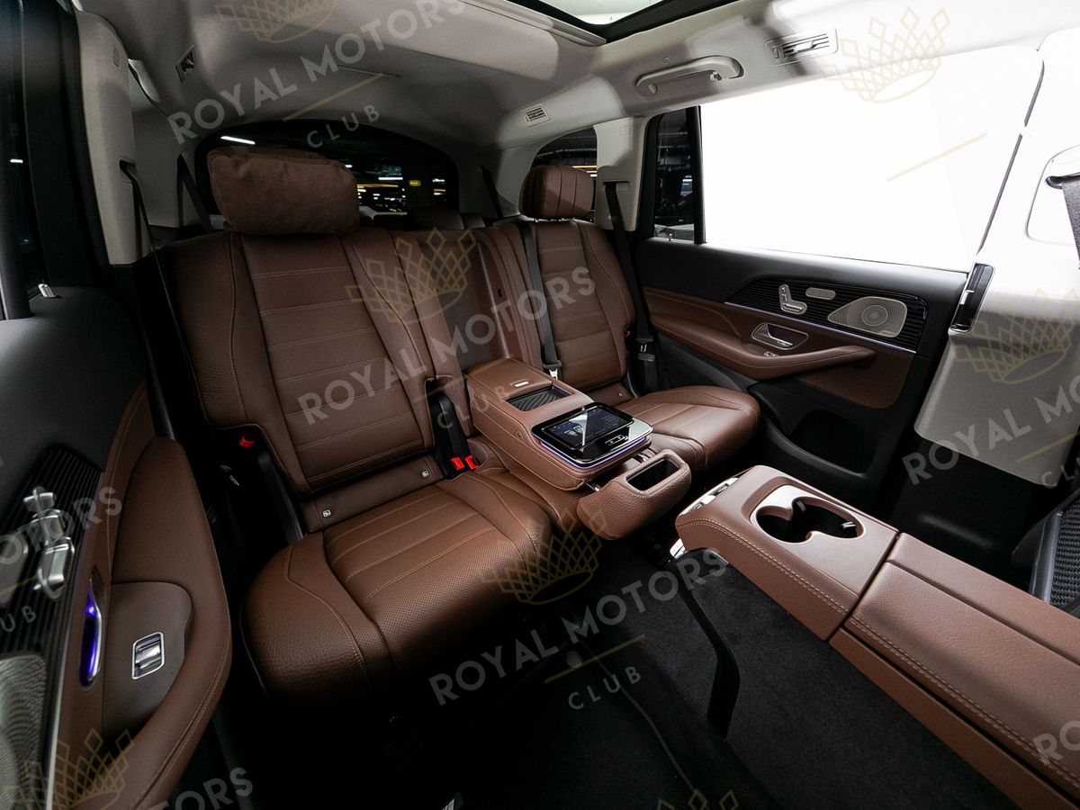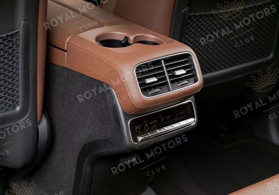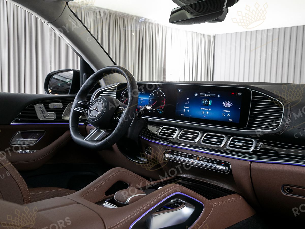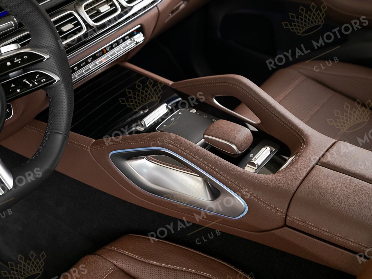 Комплектация оснащена AMG Line, пневматической подвеской, мониторами в спинках передних сидений, активным круиз-контролем, проекцией, массажем/вентиляцией сидений, камерами с обзором 360, панорамой и премиальной аудиосистемой Burmester.