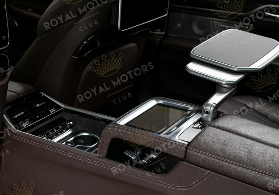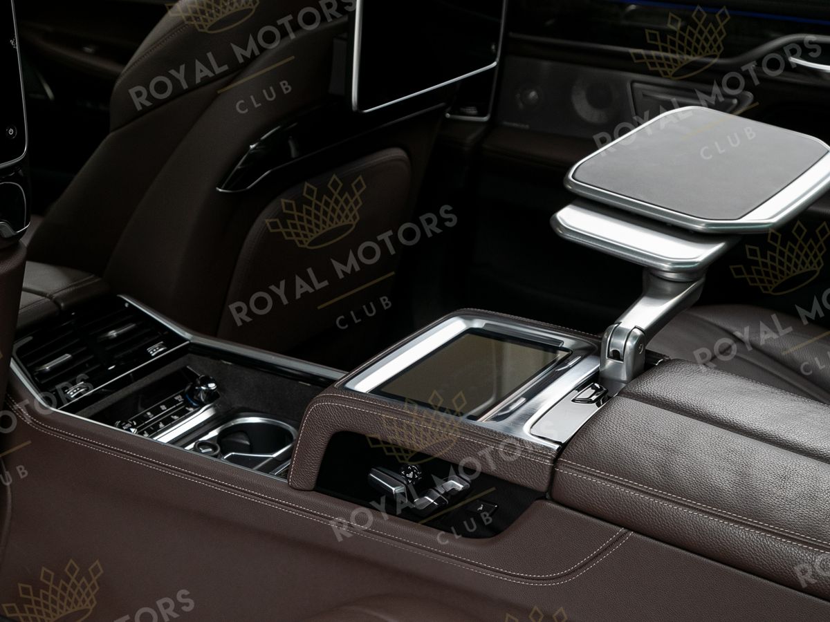 Пневматическая подвеска, раздельный задний ряд, сиденья с функцией массажа, дополнительные мониторы в спинках сидений, лазерные фары, адаптивный круиз-контроль, камеры с обзором 360.