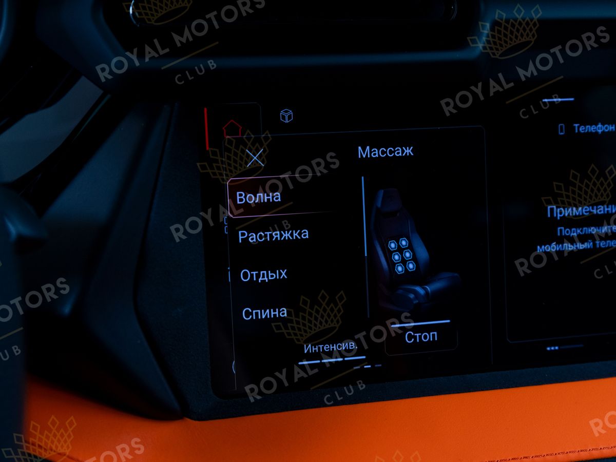 Комплектация оснащена пневматической подвеской, карбон-керамической тормозной системой, камерами с обзором 360, колёсными дисками R23, массажем/вентиляцией сидений, проекцией, системой ночного видения и премиальной аудиосистемой Bang & Olufsen 3D.
