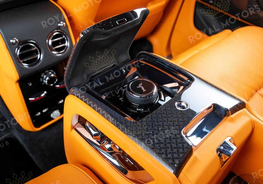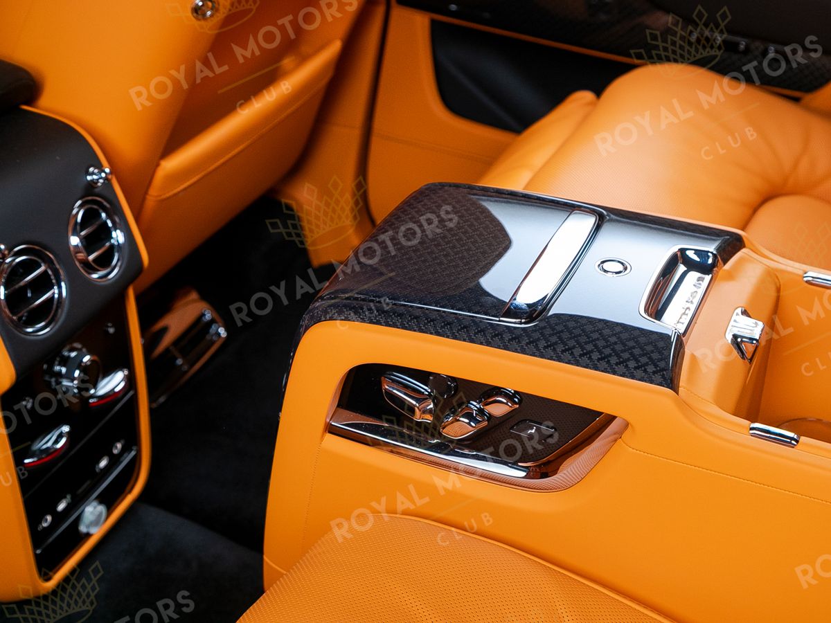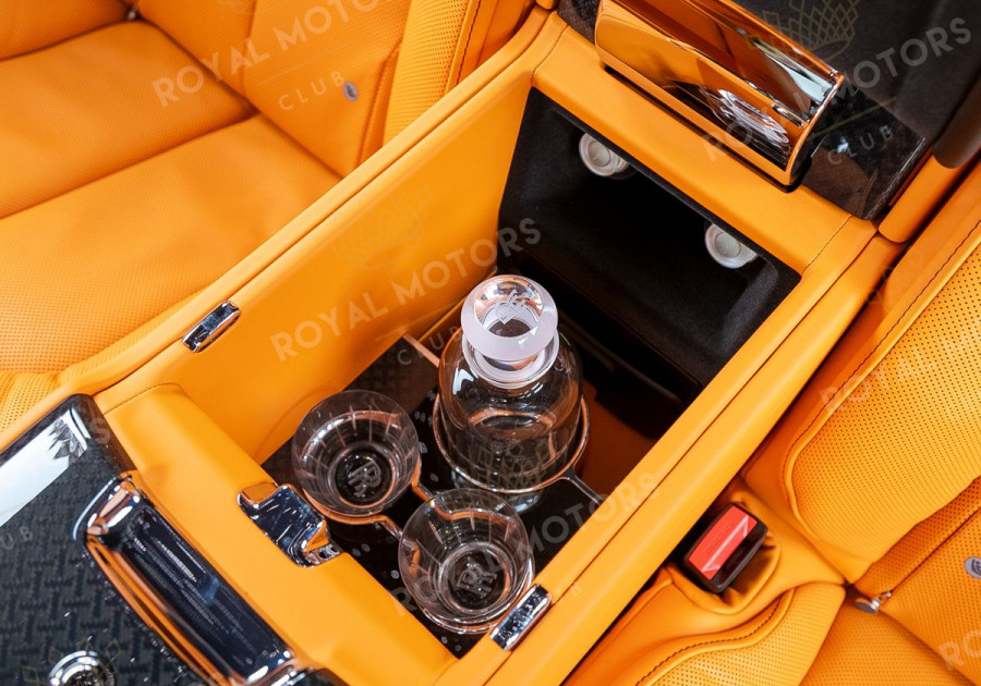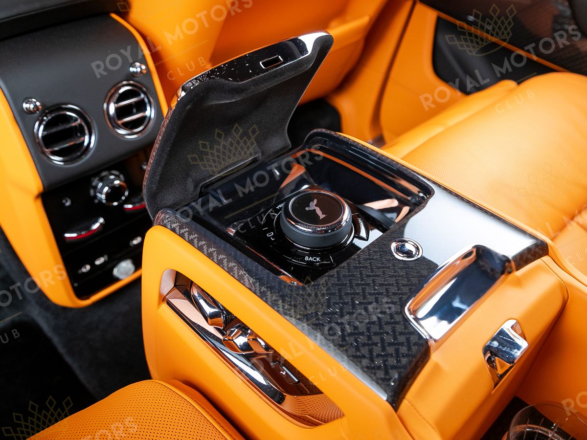 Комплектация оснащена раздельными задними сиденьями повышенного комфорта, пневматической подвеской, камерами с обзором 360, массажем/вентиляцией сидений, мониторами/столами в спинках передних сидений, потолком "Звёздное небо", проекцией и максимальной аудиосистемой Rolls-Royce Bespoke Audio.