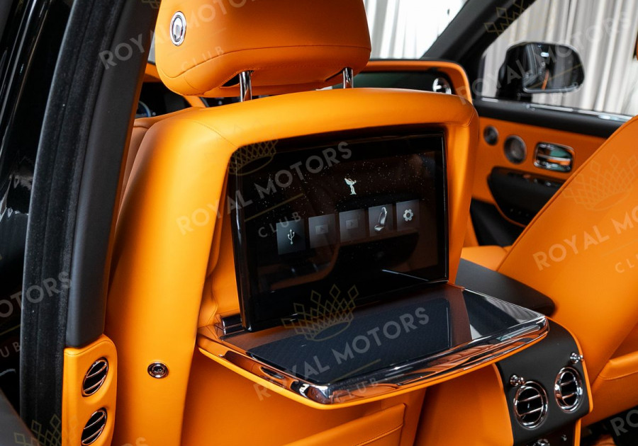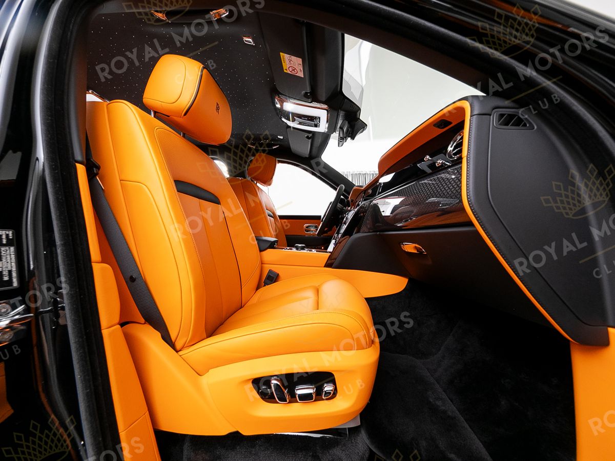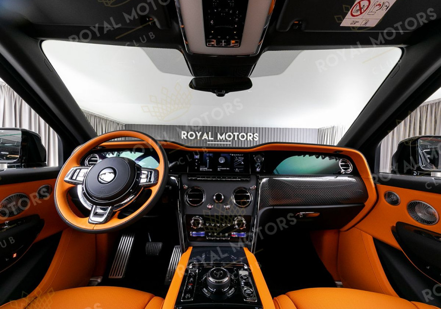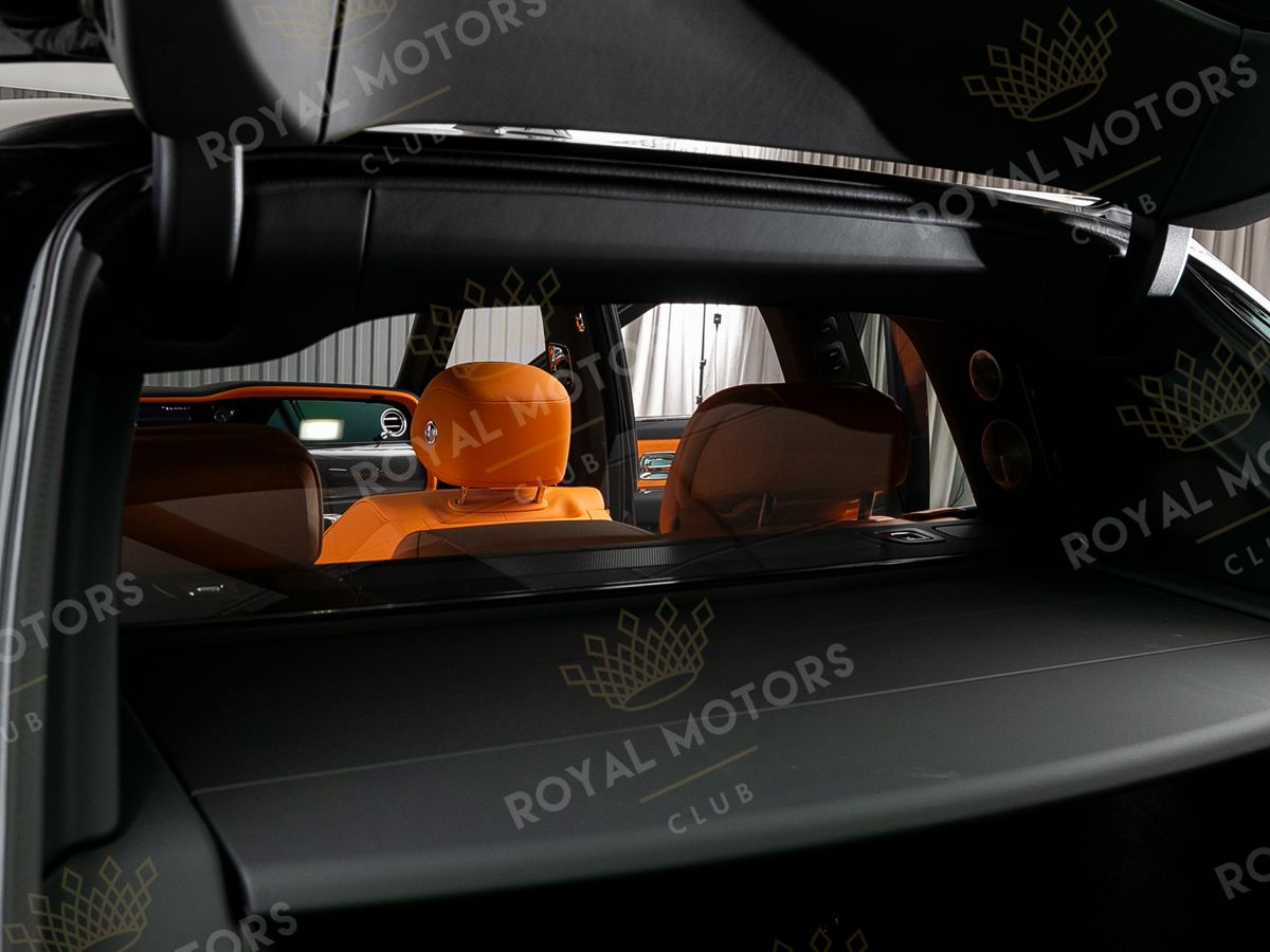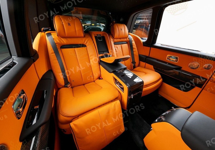 Комплектация оснащена раздельными задними сиденьями повышенного комфорта, пневматической подвеской, камерами с обзором 360, массажем/вентиляцией сидений, мониторами/столами в спинках передних сидений, потолком "Звёздное небо", проекцией и максимальной аудиосистемой Rolls-Royce Bespoke Audio.