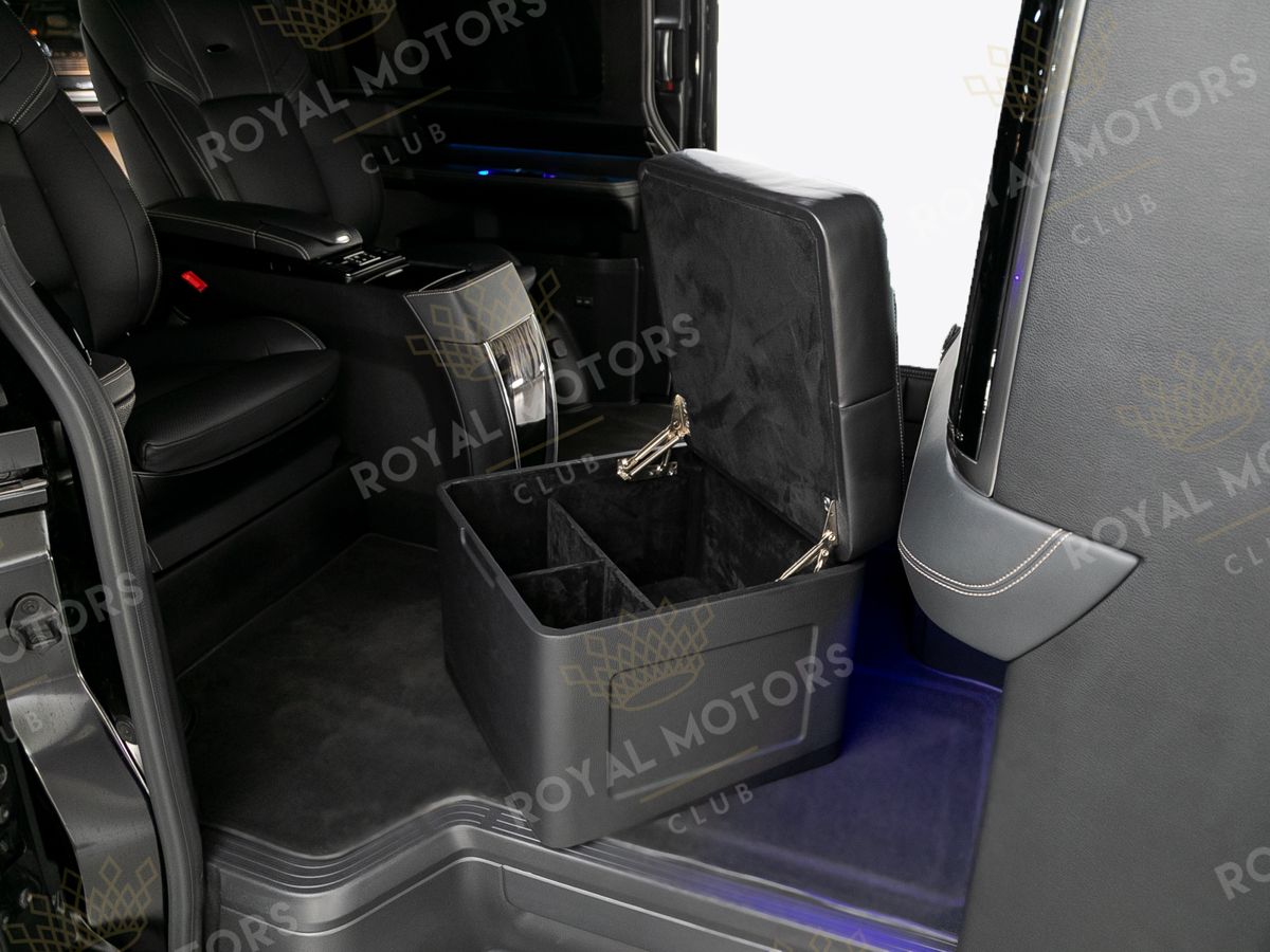 Комплектация оснащена межсалонной перегородкой с монитором, комфортабельными сиденьями с функцией вентиляции, потолком из Alcantara с функцией "звездное небо", премиальной аудиосистемой, системой распознавания дорожных знаков, системой управления дальним светом и адаптивным круиз-контроль.