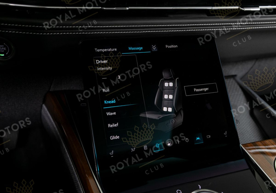 В салоне изогнутый OLED-дисплей увеличился и теперь располагается "от стойки до стойки"., соединяя 3 экрана: приборная панель, мультимедийный экран и экран для переднего пассажира.