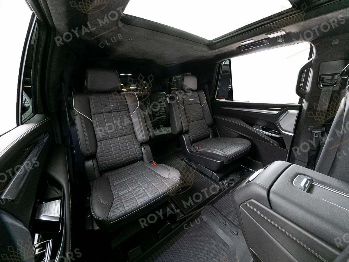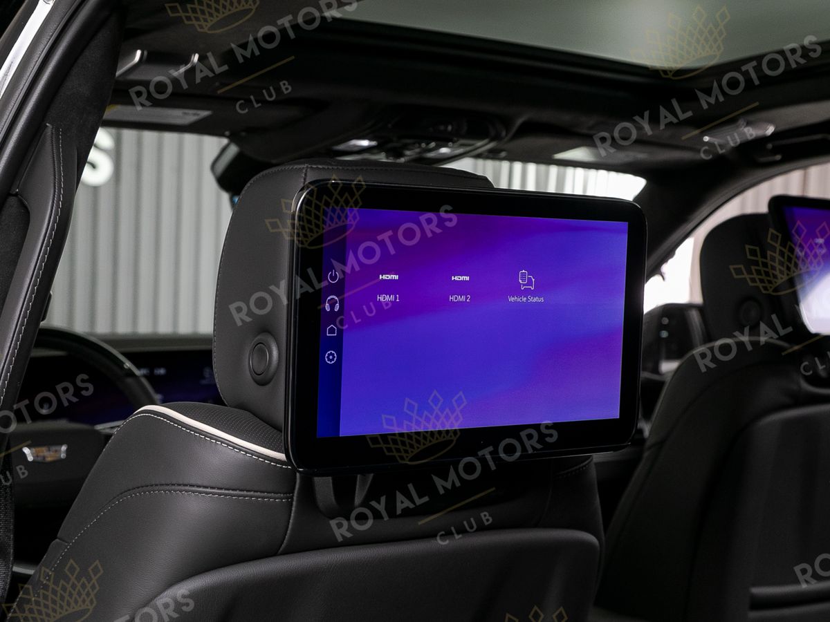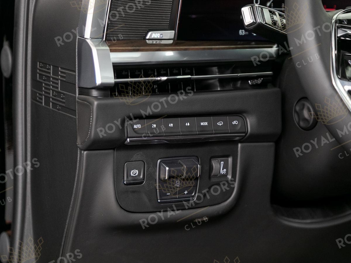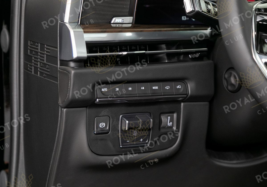 В комплектацию входят: пневматическая подвеска, система Super Cruise, выдвижные пороги с эл. приводом, камеры с обзором 360, вентиляция/массаж сидений, автоматическая парковка, мониторы в спинках передних сидений и премиальная аудиосистема AKG 36 динамиков..