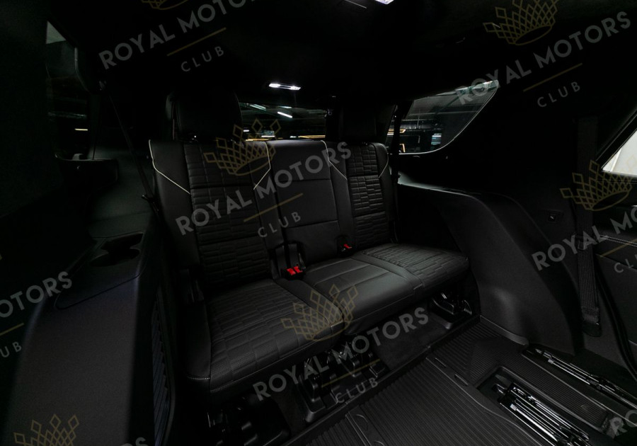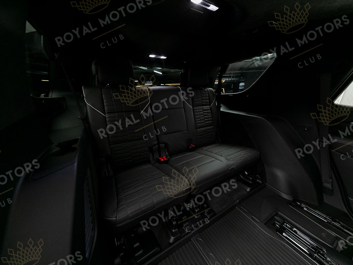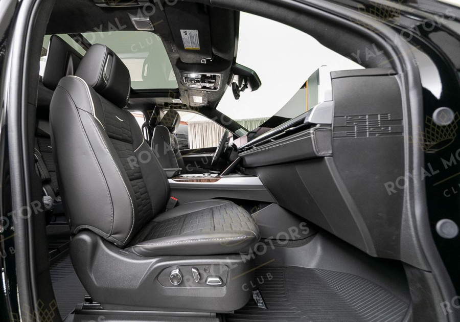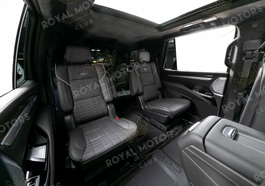 В комплектацию входят: пневматическая подвеска, система Super Cruise, выдвижные пороги с эл. приводом, камеры с обзором 360, вентиляция/массаж сидений, автоматическая парковка, мониторы в спинках передних сидений и премиальная аудиосистема AKG 36 динамиков..