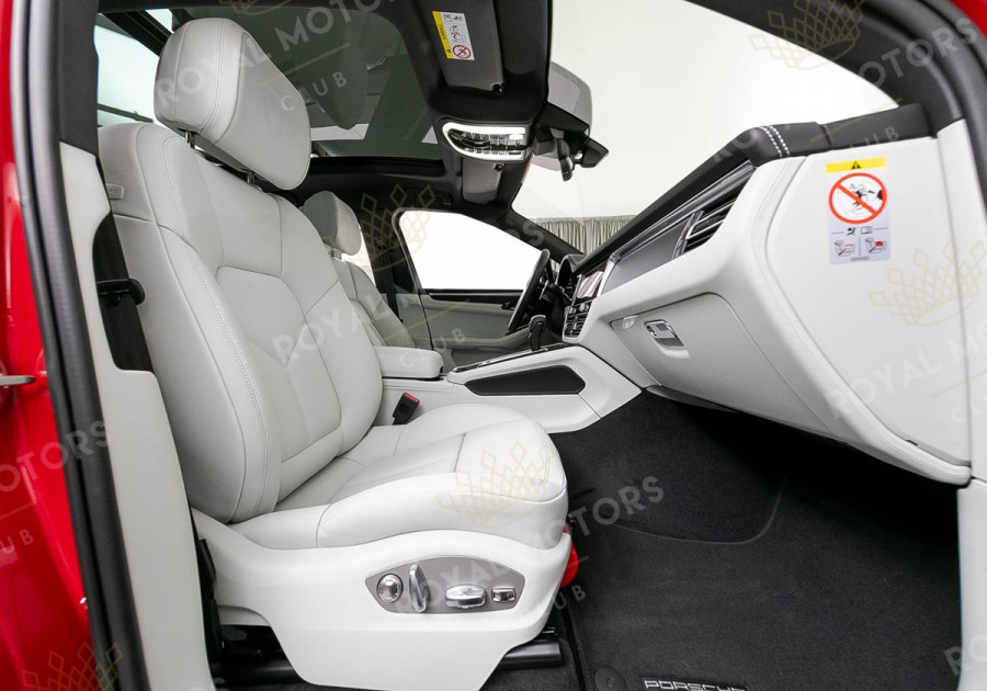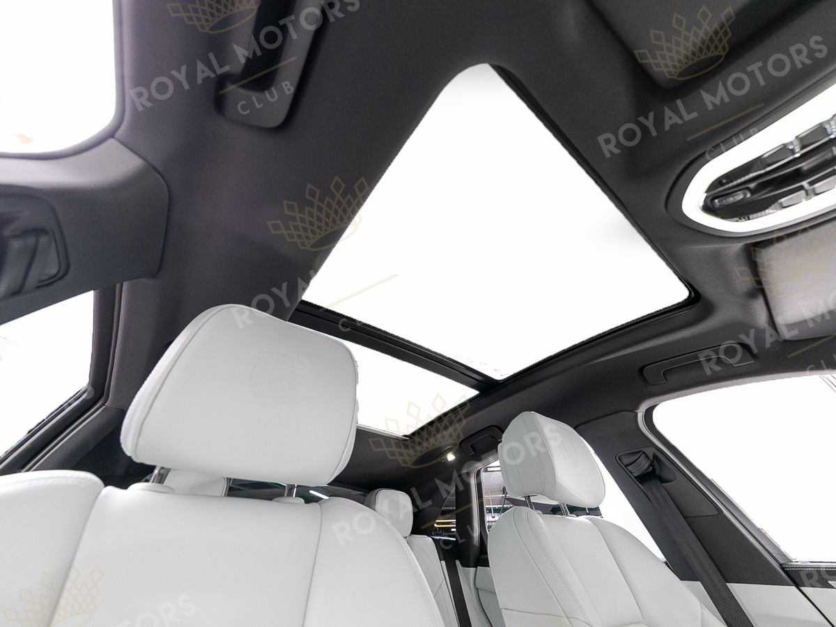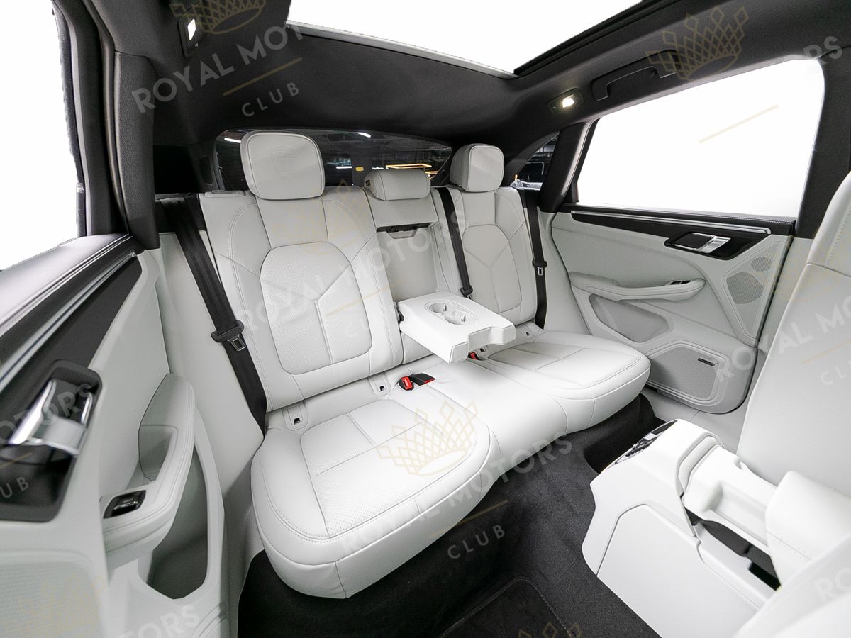 Комплектация оснащена камерами с обзором 360, 14-позиционными сиденьями, колёсными дисками R21, расширенной отделкой кожей, системой адаптивного освещения, адаптивным круиз-контролем, эмблемами Porsche на подголовниках, премиальной аудиосистемой Bose и панорамой.