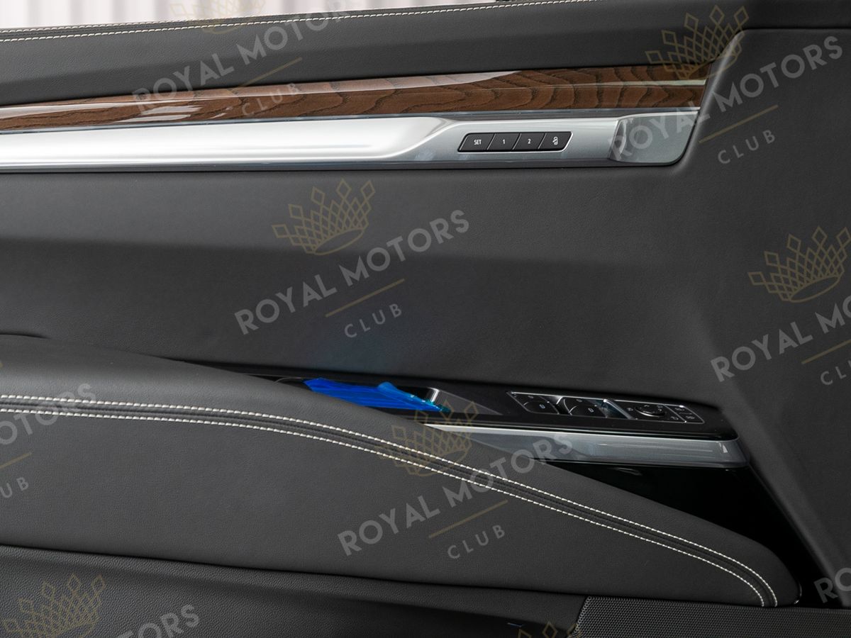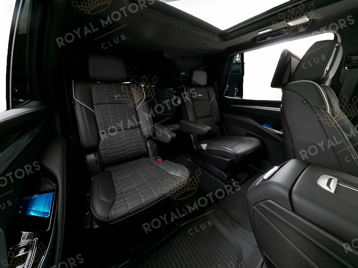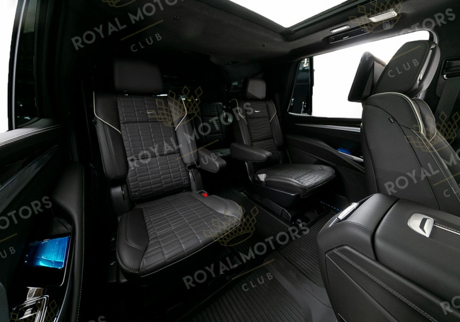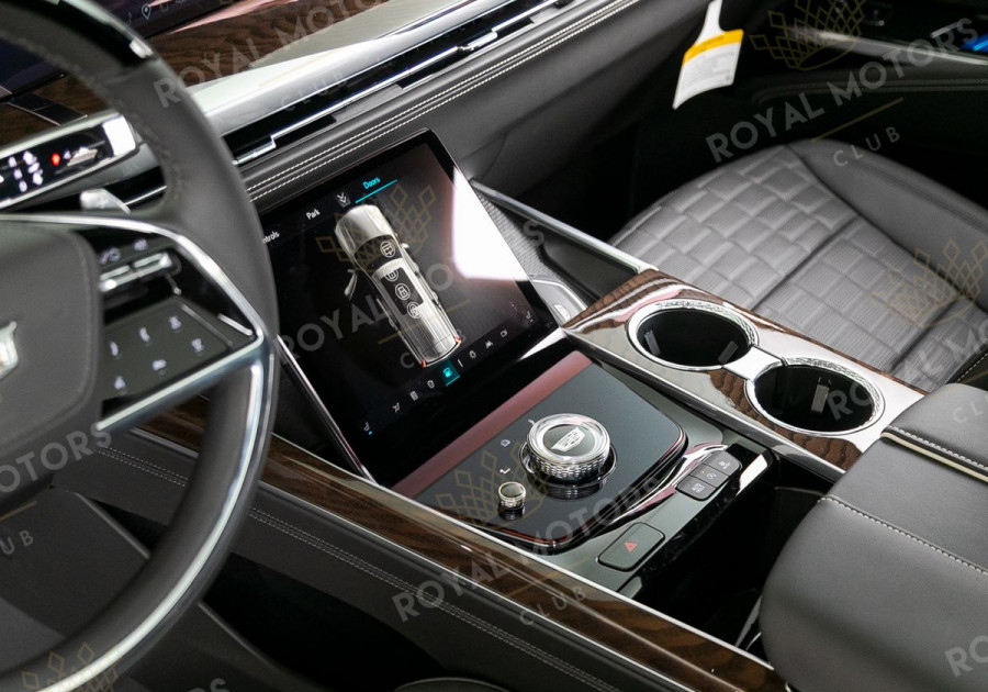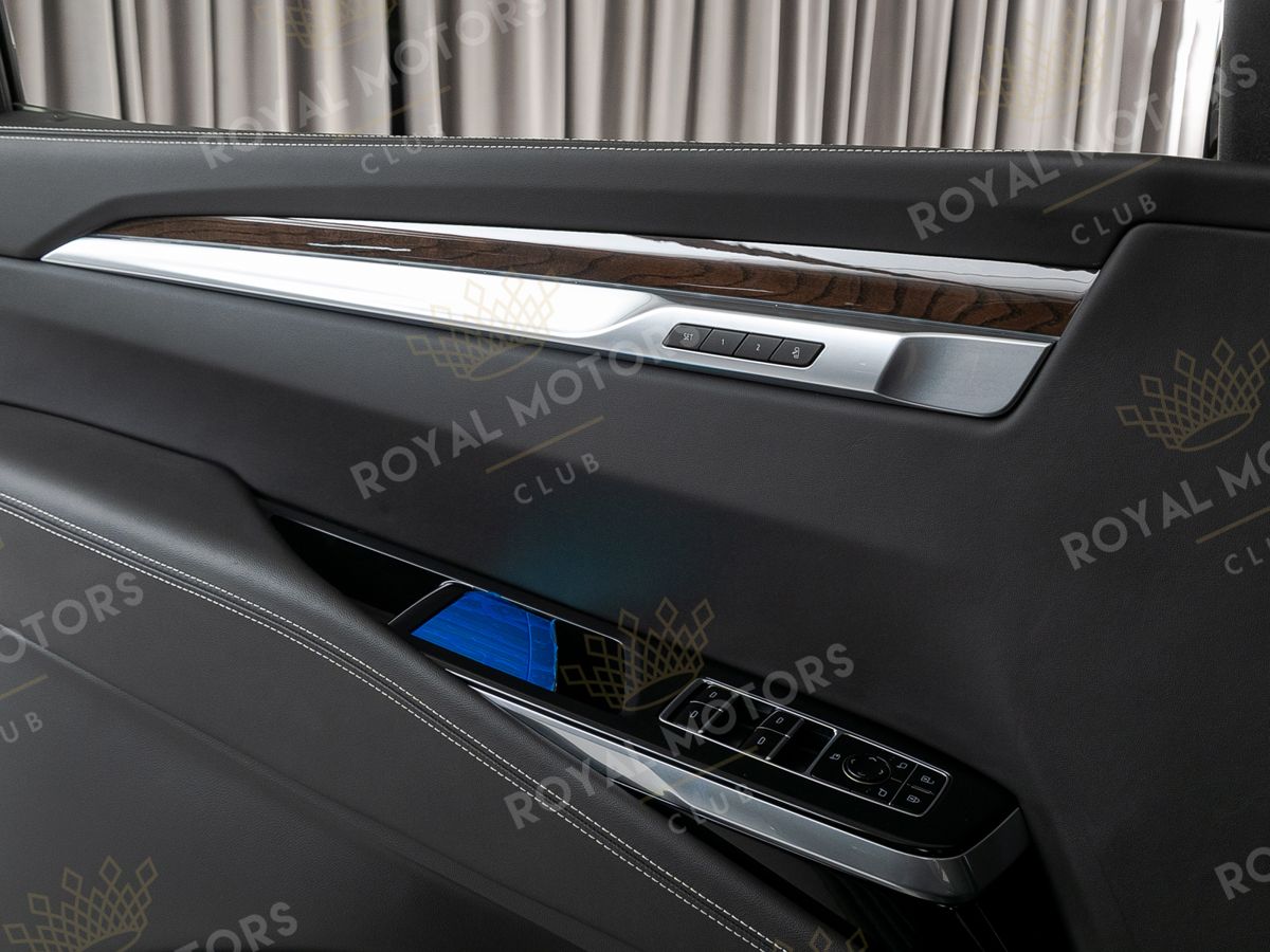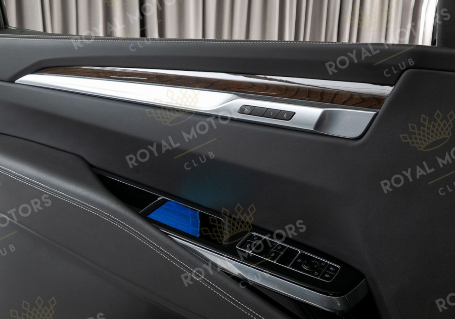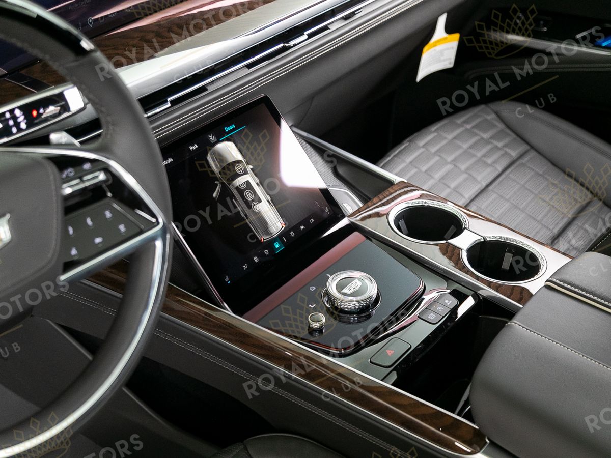 Комплектация оснащена системой Super Cruise, выдвижными порогами с эл. приводом, камерами с обзором 360, вентиляцией/массажем сидений, мониторами в спинках передних сидений, отделкой салона натуральным деревом, проекцией, панорамой и премиальной аудиосистемой AKG.