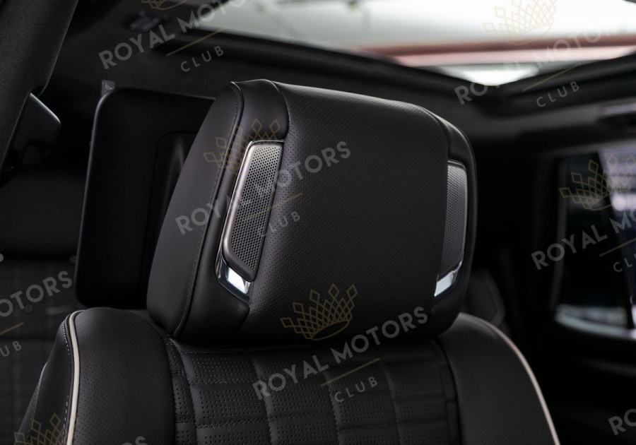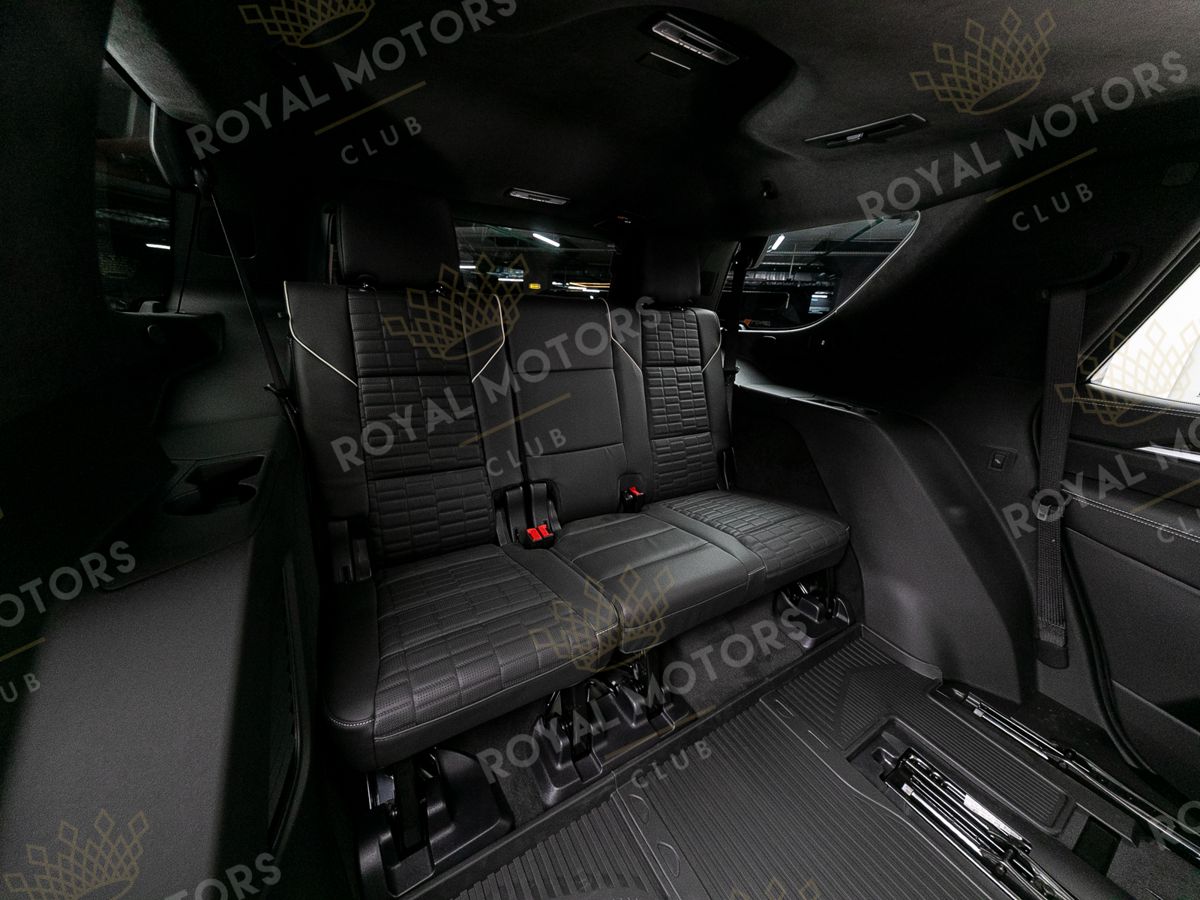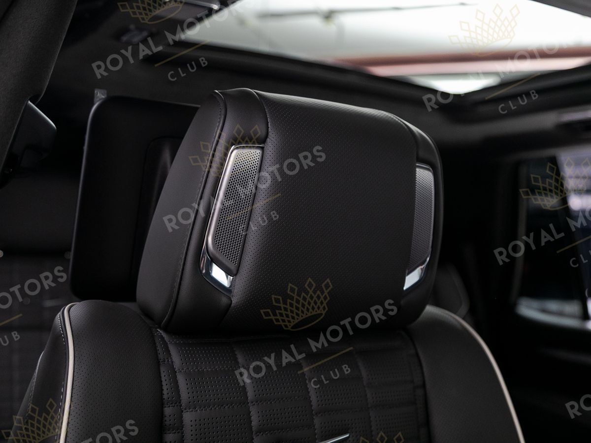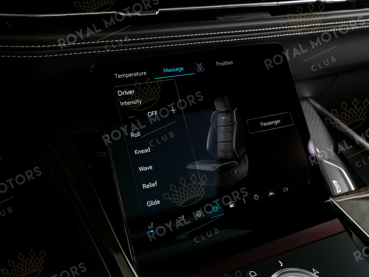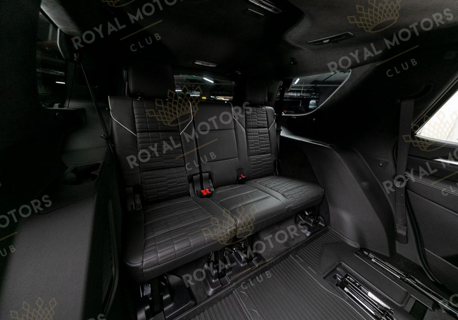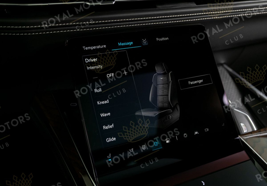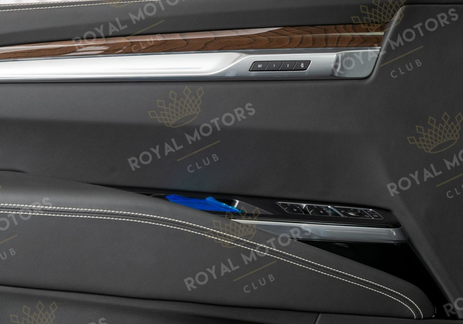 Комплектация оснащена системой Super Cruise, выдвижными порогами с эл. приводом, камерами с обзором 360, вентиляцией/массажем сидений, мониторами в спинках передних сидений, отделкой салона натуральным деревом, проекцией, панорамой и премиальной аудиосистемой AKG.