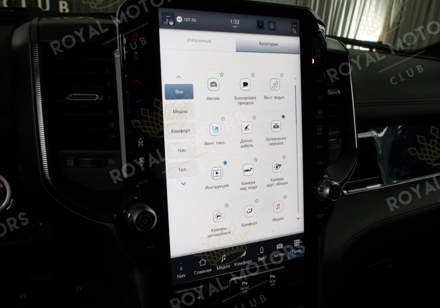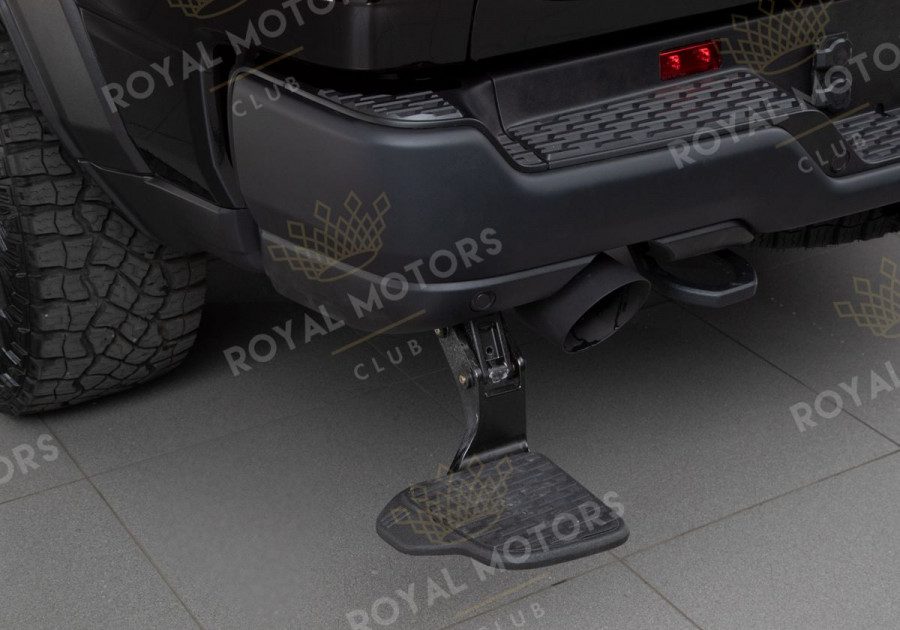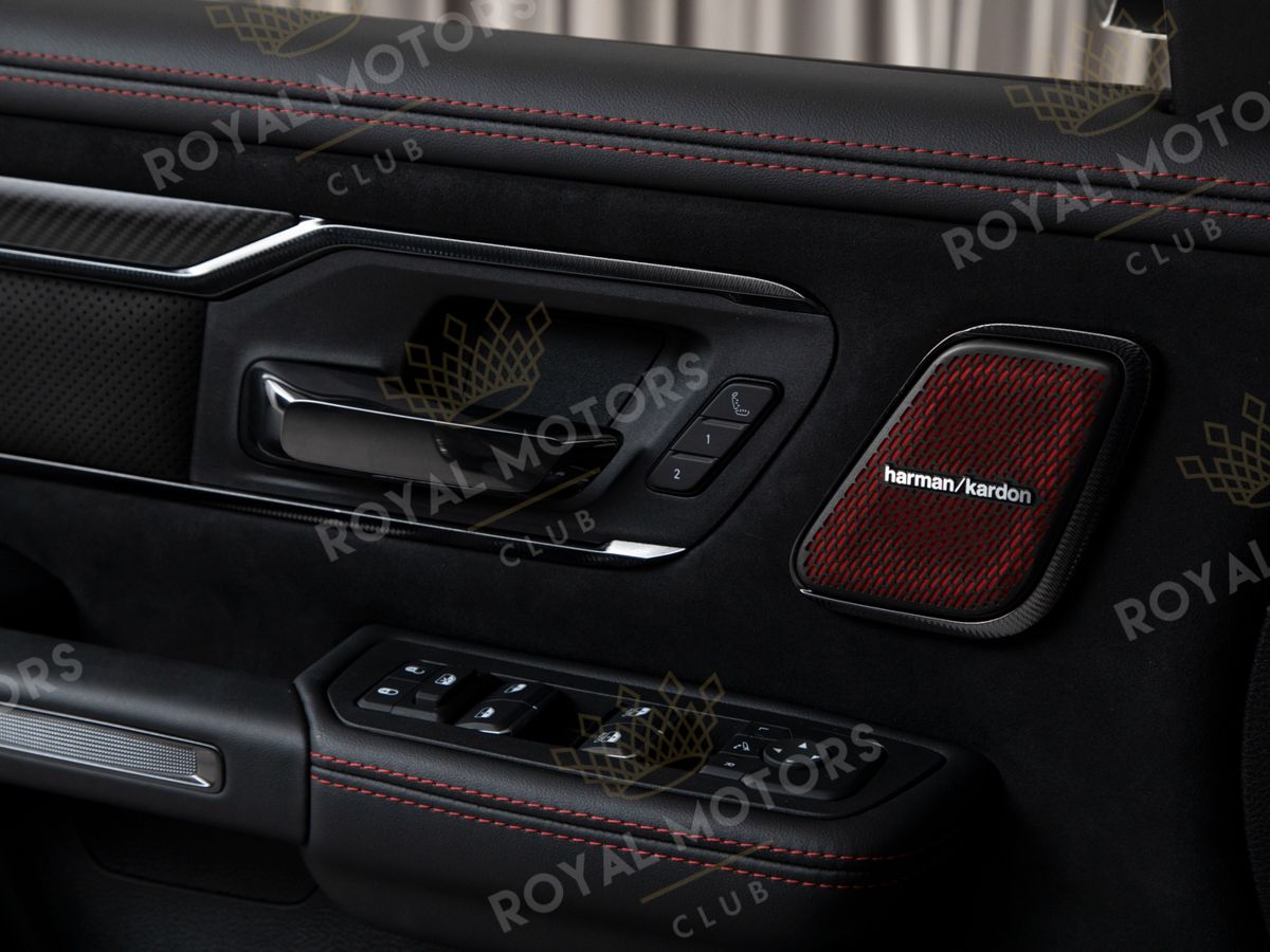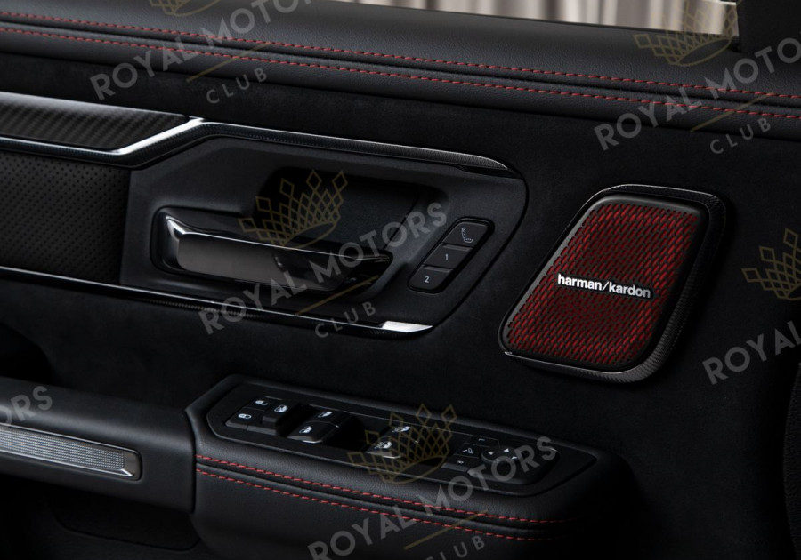 Комплектация оснащена дополнительными порогами для посадки в автомобиль, активной динамической подвеской, камерами с обзором 360, монитором для пассажира, массажем/вентиляцией сидений, адаптивным круиз-контролем, панорамой и премиальной аудиосистемой Harman/Kardon.