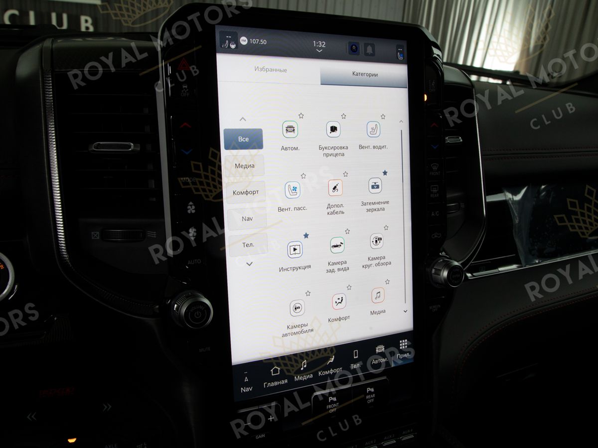С дополнительным пакетом оборудования RHO внедорожный пикап Ram оснащается множеством цифровых дисплеев, распределенных по четырем зонам обзора: 14,5-дюймовый вертикальный центральный сенсорный экран, 12,3-дюймовая цифровая панель приборов, 10-дюймовый проекционный дисплей и стандартный 10,3-дюймовым экран для пассажира, на котором отображается навигационная информация, видеопотоки с камер бездорожья или медиа контент, воспроизводимый через HDMI кабель.