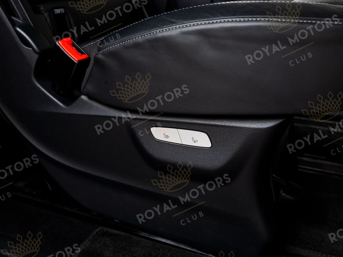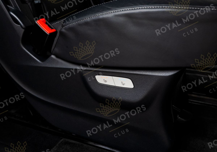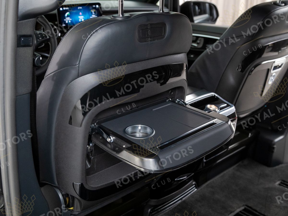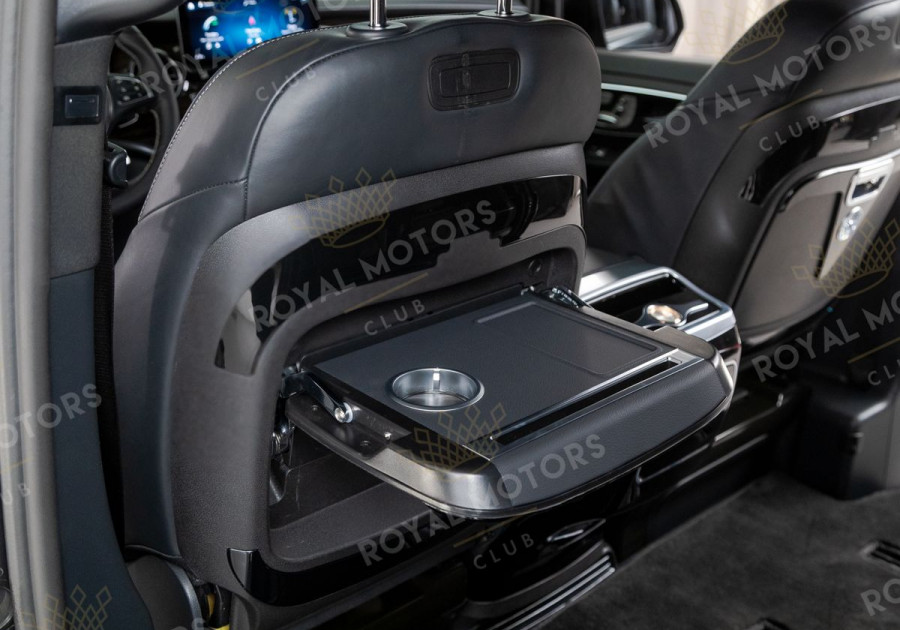 Комплектация оснащена камерами с обзором 360, складными столами, Intelligent Light System, вентиляцией сидений, адаптивным круиз-контролем, системой распознавания дорожных знаков, подлокотником для переднего пассажира/водителя и премиальной аудиосистемой Burmester.