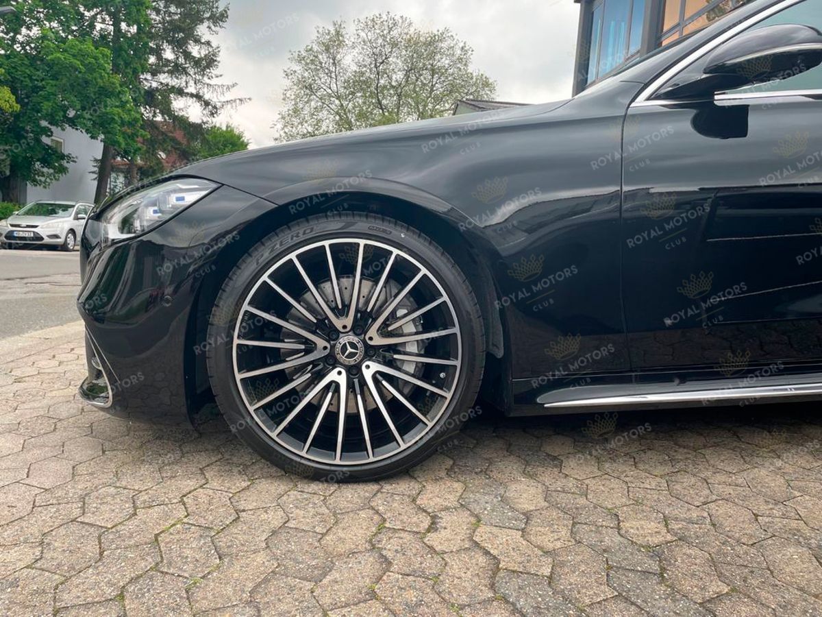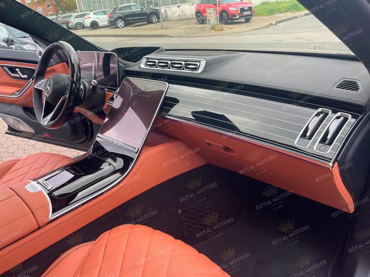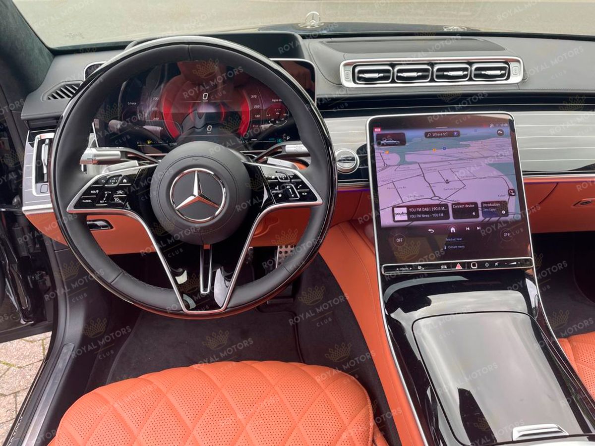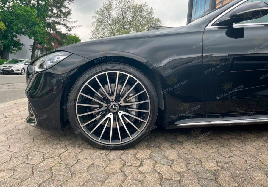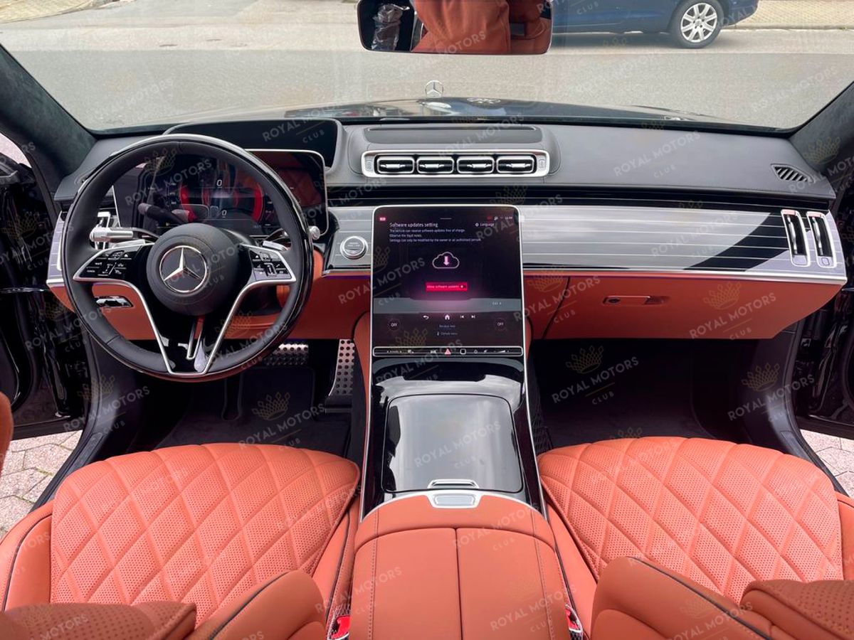Комплектация оснащена AMG-пакетом, пневматической подвеской, камерами с обзором 360, мониторами в спинках передних сидений, активным круиз-контролем, проекцией, вентиляцией/массажем всех сидений, солнцезащитными шторками и премиальной аудиосистемой Burmester