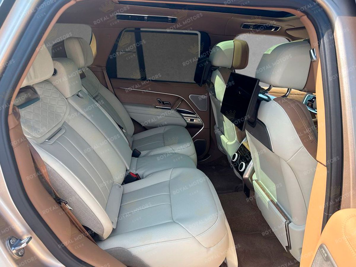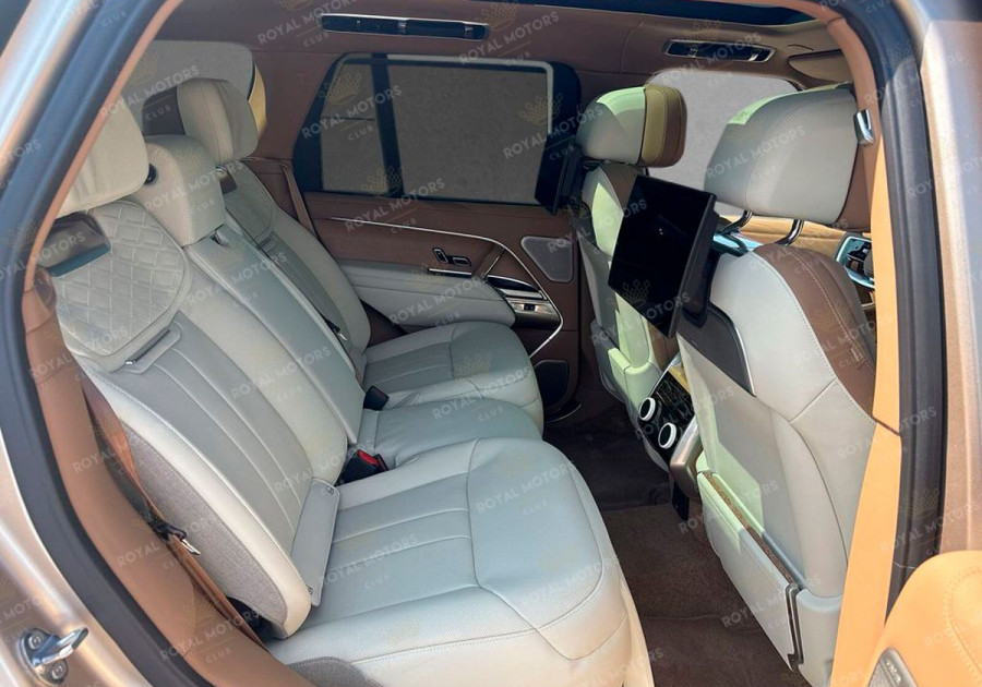 Комплектация оснащена пневматической подвеской, камерами с обзором 360, массажем/вентиляцией сидений, системой оттоман, мониторами в спинках передних сидений и премиальной аудиосистемой Meridian Signature.