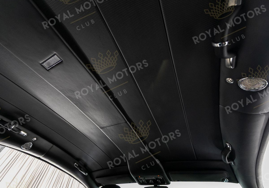 - Цельная обивка потолка, отделанная кожей.