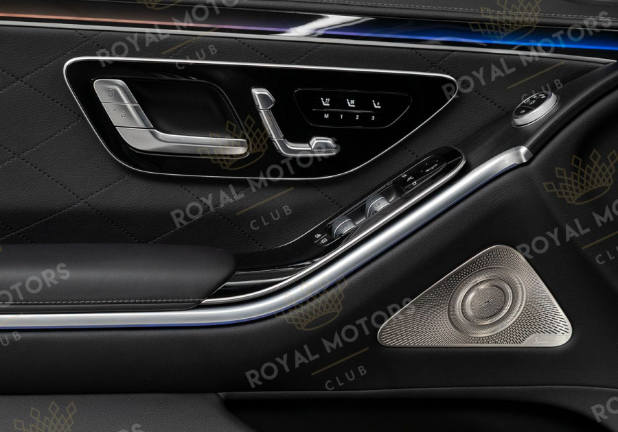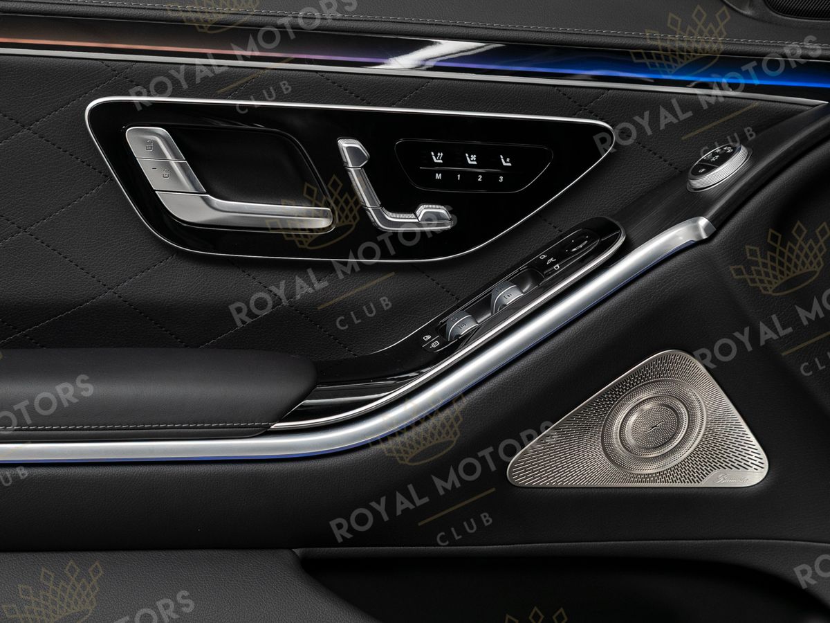 Комплектация оснащена пневматической подвеской, камерами с обзором 360, активным круиз-контролем, фарами Digital Light, проекцией, вентиляцией/массажем всех сидений, солнцезащитными шторками и премиальной аудиосистемой Burmester.