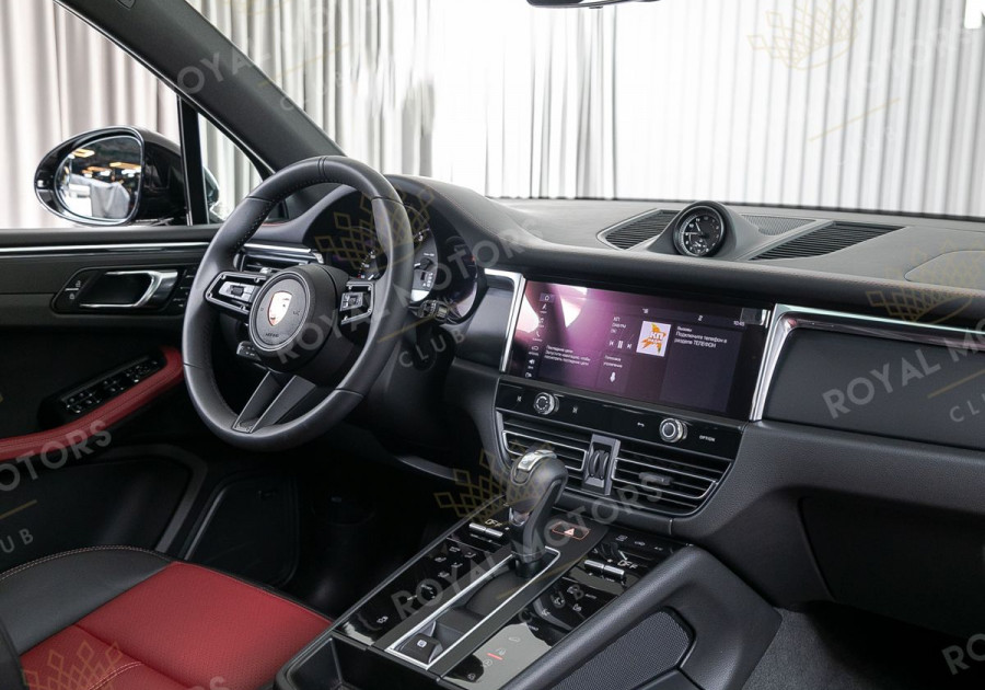 Комплектация оснащена камерами с обзором 360, пакетом Sport Chrono, ассистентом сохранения полосы движения, эмблемами Porsche на подголовниках, панорамой и премиальной аудиосистемой Bose.