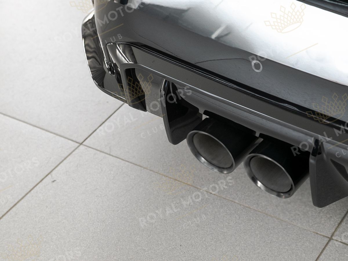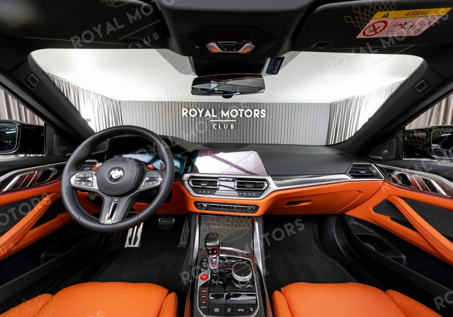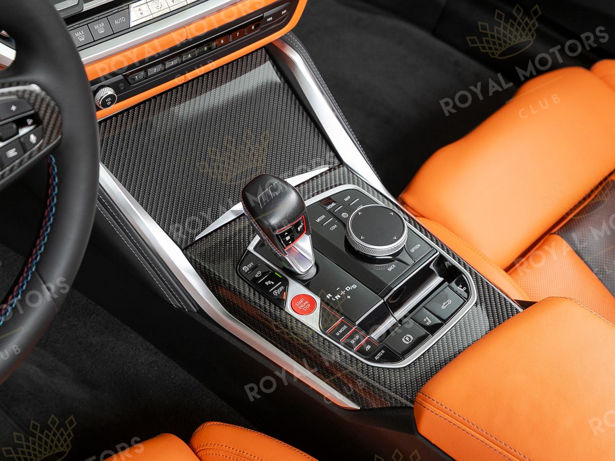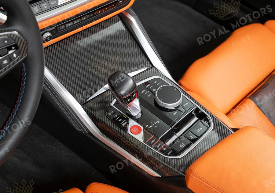 Комплектация оснащена карбон-пакетом интерьера, доводчиками, проекцией, камерами с обзором 360, фарами BMW Laser, вентиляцией сидений, активным круиз-контролем и премиальной аудиосистемой Harman/Kardon.