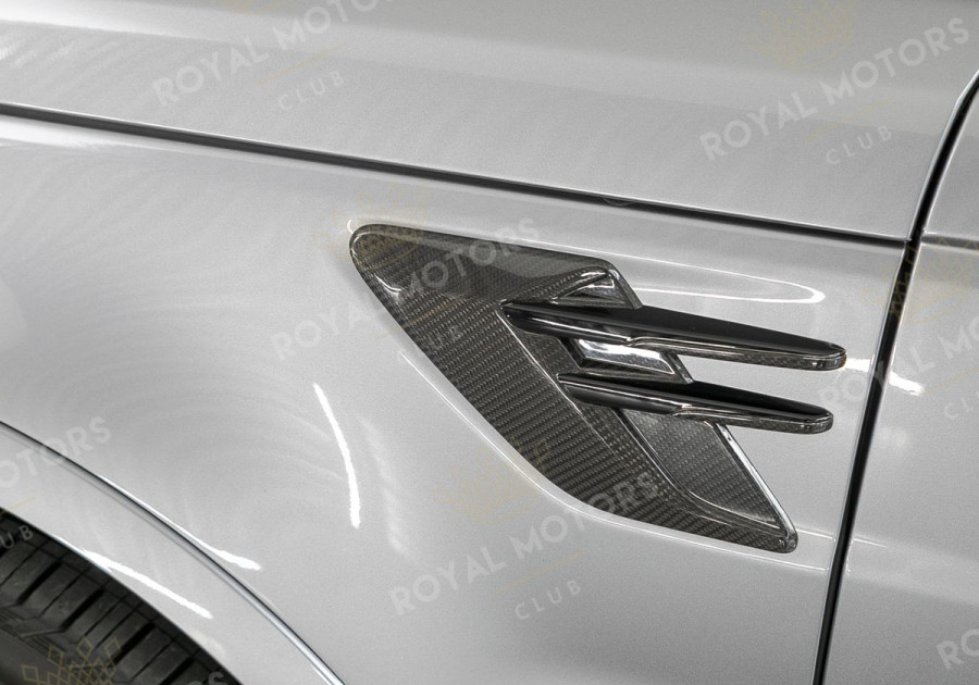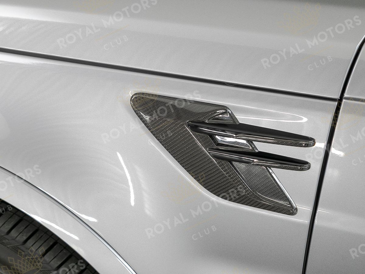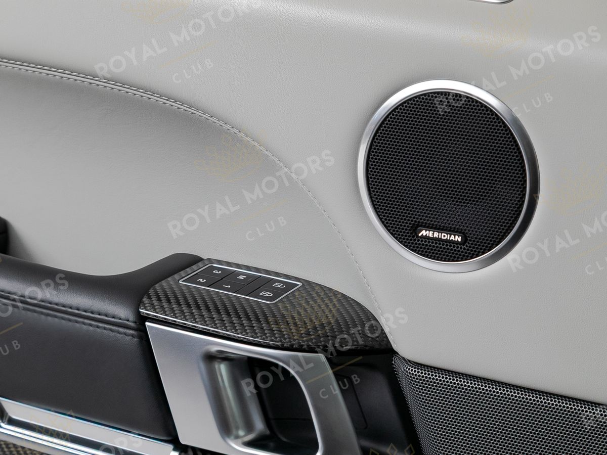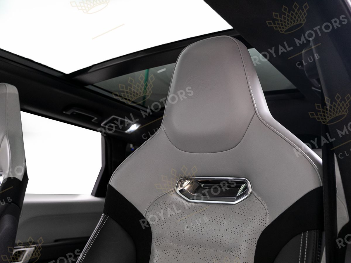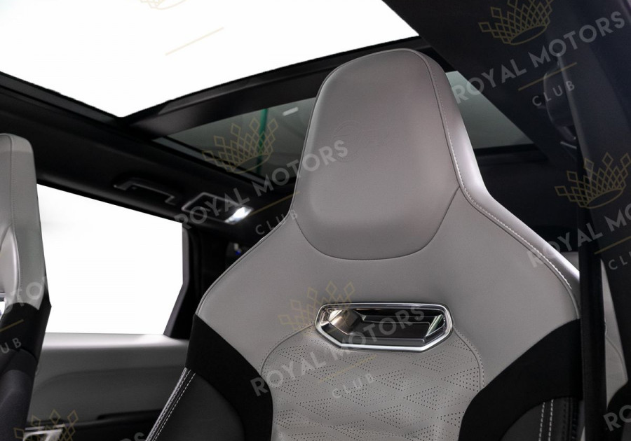 Комплектация оснащена карбон-пакетом интерьера и экстерьера, пневматической подвеской, камерами с обзором 360, проекцией, адаптивным освещением, ковшеобразными передними сиденьями с функцией памяти, панорамой, адаптивным круиз-контролем и премиальной аудиосистемой Meridian.