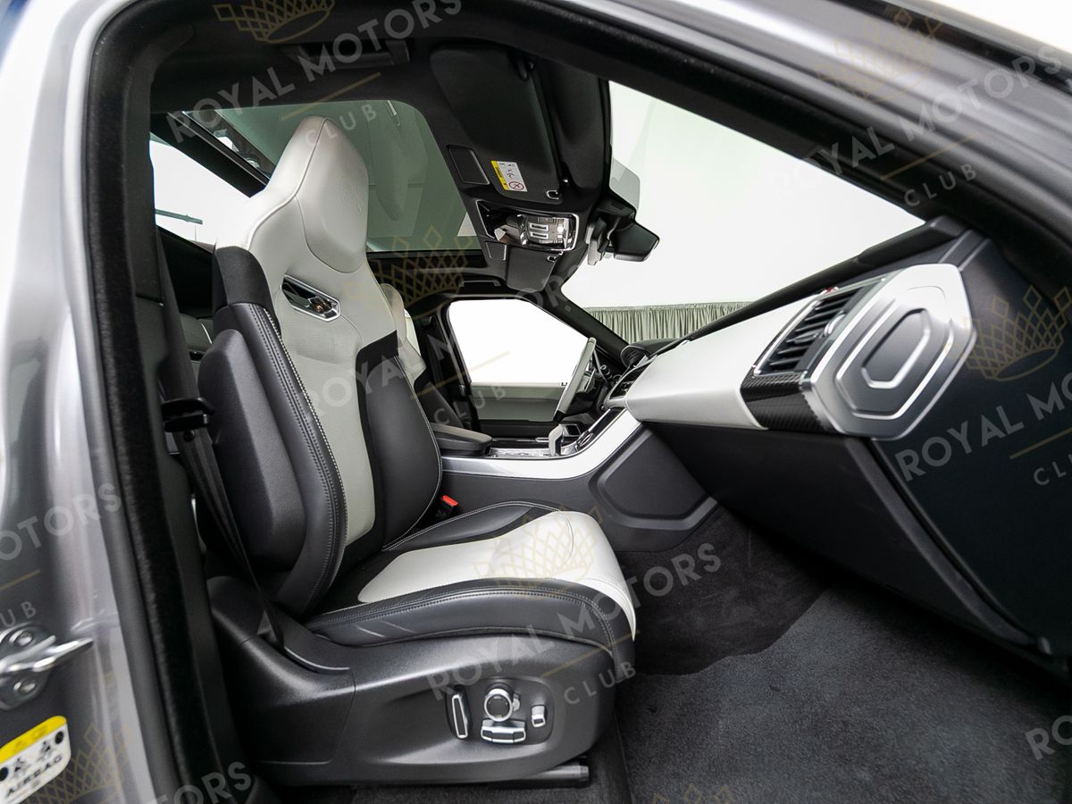 Range Rover Sport - спортивный внедорожник, под капотом которого располагается 5-литровый бензиновый двигатель V8 с турбонаддувом мощностью 575 л.с. и максимальным крутящим моментом 516 Н·м. Двигатель работает в паре с 8-ступенчатой автоматической коробкой передач. Автомобиль оснащён системой полного привода.