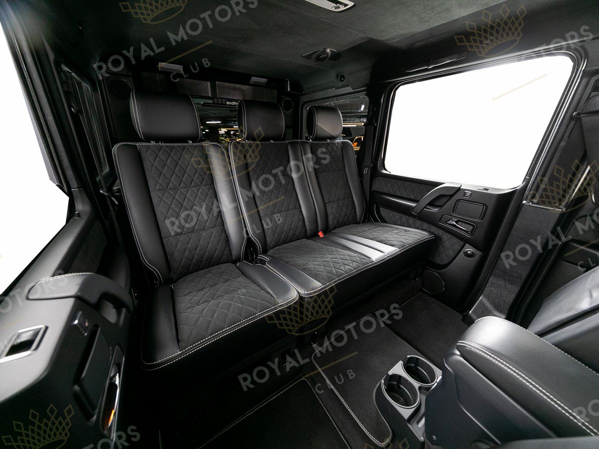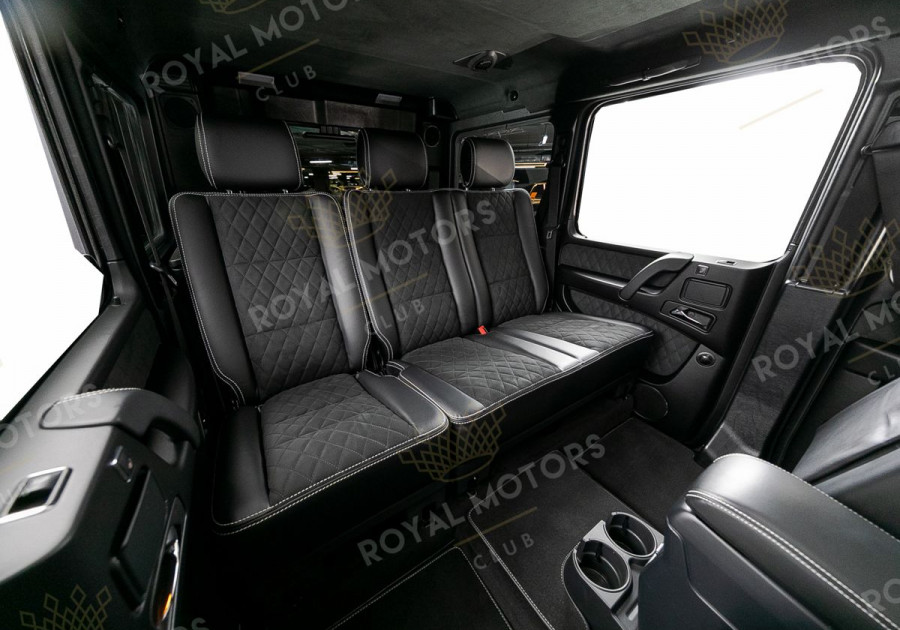 Интерьер G500 4x4² напоминает своего брата, G63 AMG 6x6. В комплектации боковые валики сидений, подголовники, приборная панель, центральная консоль и подлокотники на дверях отделаны чёрной кожей с контрастной строчкой. Сиденья и дверные панели обтянуты микроволокном (Dinamica) с ромбовидной прострочкой.