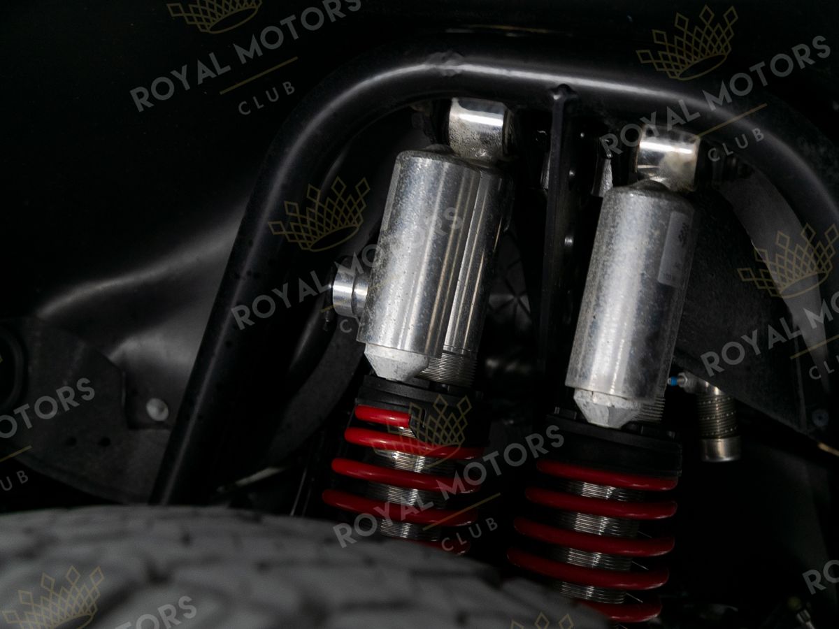 Секрет Squared заключается в ступицах колес, которые меняются местами с портальными осями. Портальная ось - это ступица, в которой вместо того, чтобы входить в центральную точку колеса, полуоси входят в верхнюю часть ступицы и затем направляются вниз. Это позволяет увеличить дорожный просвет по сравнению со стандартным. Отличительная внешняя особенность модификации заключается в карбоновых крыльях и карбоновой световой планке над лобовым стеклом.