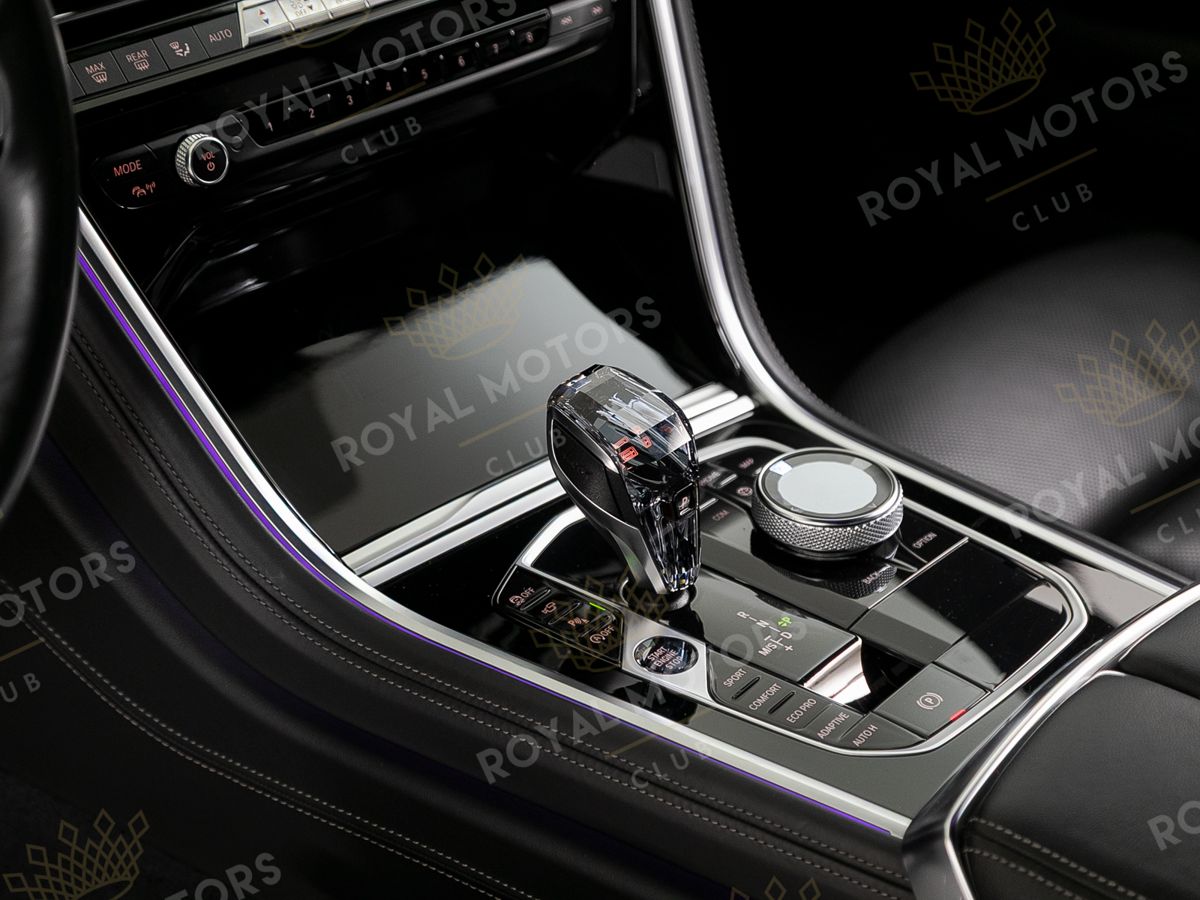 Комплектация оснащена камерами с обзором 360, пакетом отделки из хрусталя, фарами BMW Laser, вентиляцией сидений, активным круиз-контролем, доводчиками, проекцией и премиальной аудиосистемой harman/kardon.