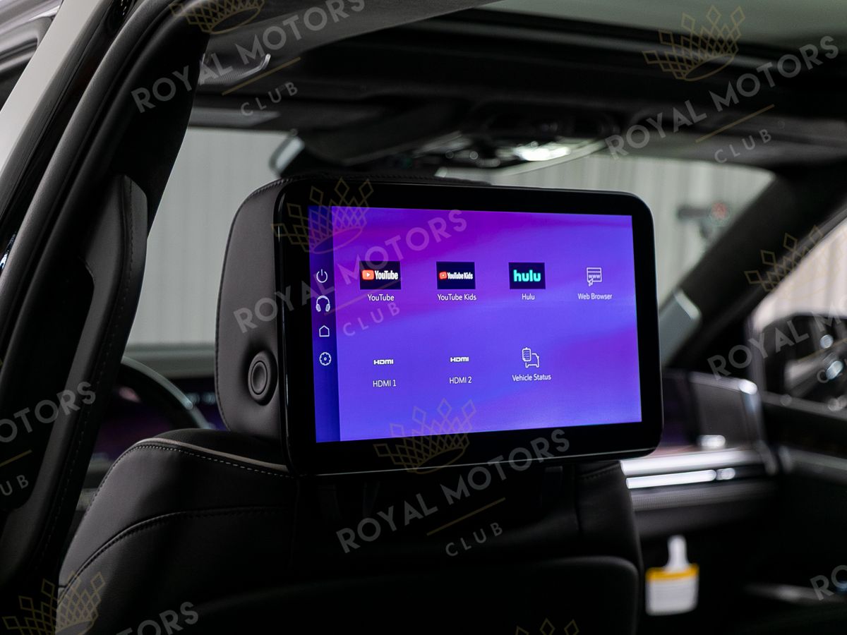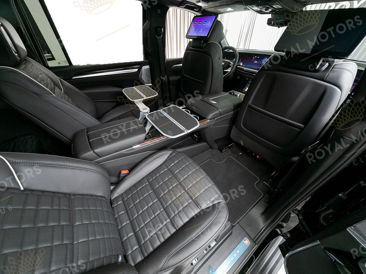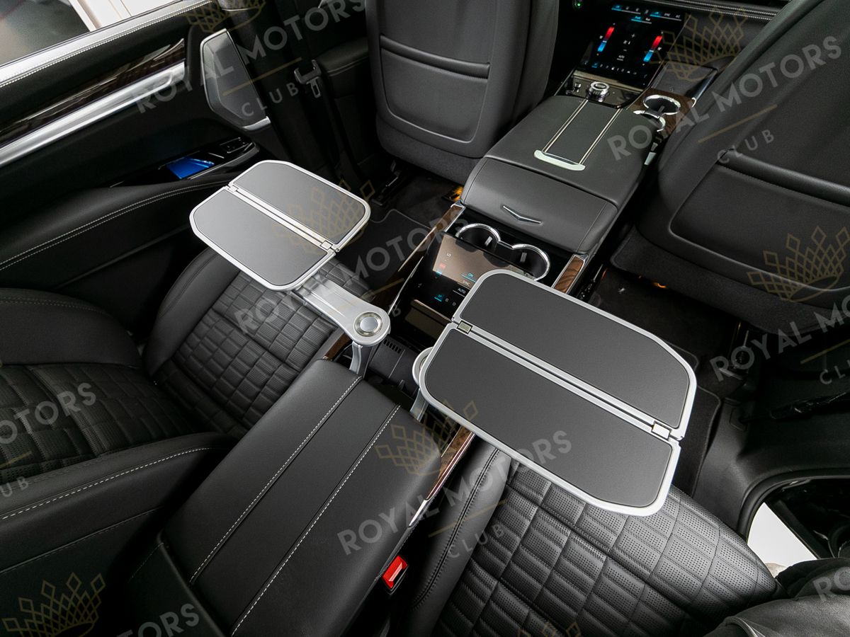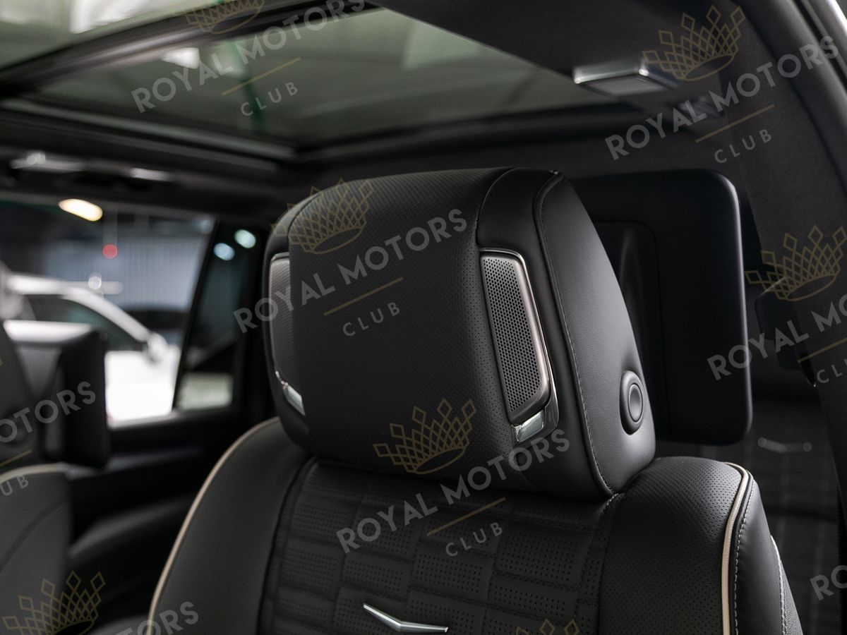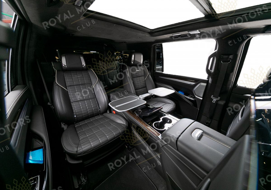 Комплектация оснащена массажем/вентиляцией сидений, мониторами в спинках передних сидений, выдвижными порогами с эл. приводом, пневматической подвеской, системой Super Cruise, камерами с обзором 360, панорамой, системой ночного видения и максимальной аудиосистемой AKG
