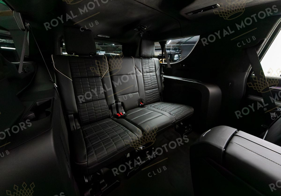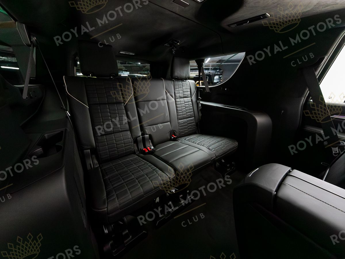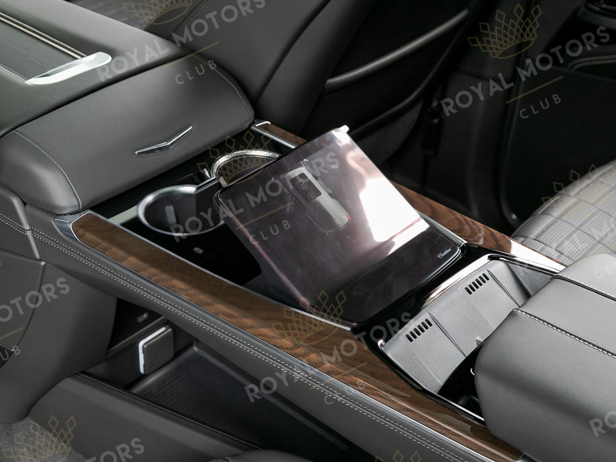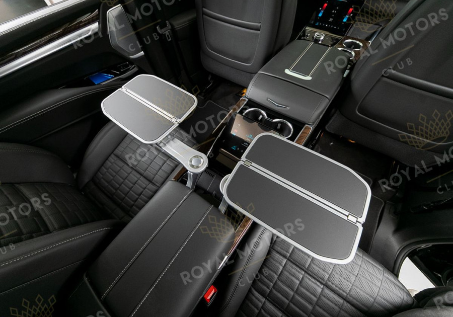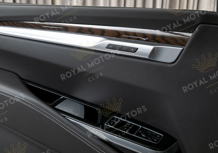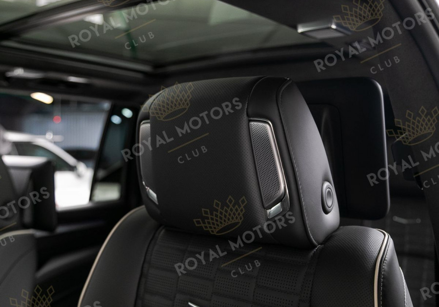 Комплектация оснащена массажем/вентиляцией сидений, мониторами в спинках передних сидений, выдвижными порогами с эл. приводом, пневматической подвеской, системой Super Cruise, камерами с обзором 360, панорамой, системой ночного видения и максимальной аудиосистемой AKG