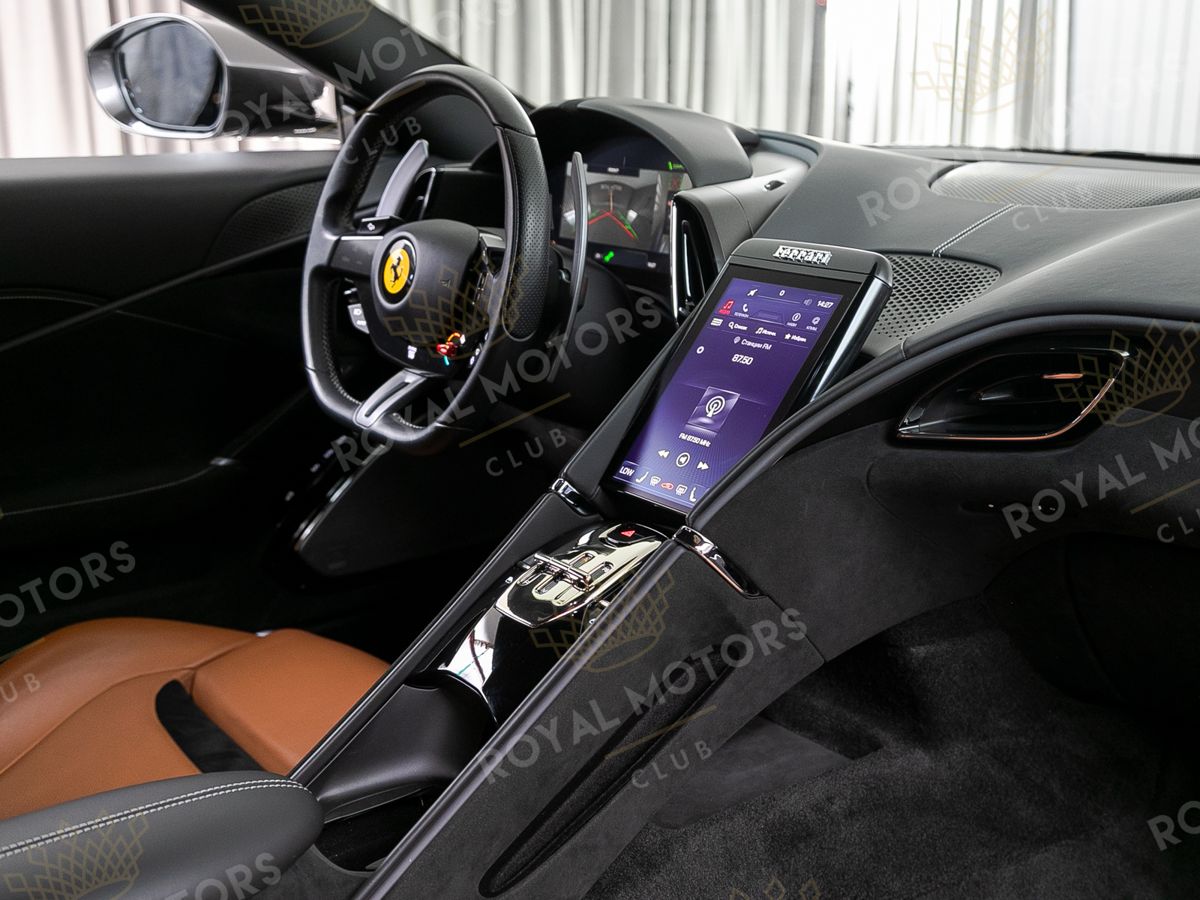 Внутреннее убранство премиального купе выполнено в принципиально новом для Ferrari стиле и способно похвастать красивым и современным оформлением, в котором царит «спортивная атмосфера».
