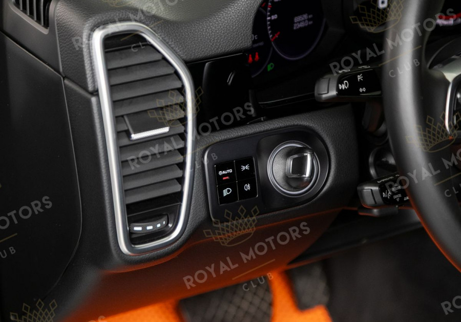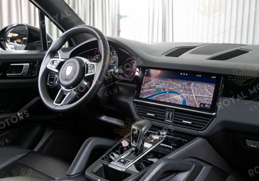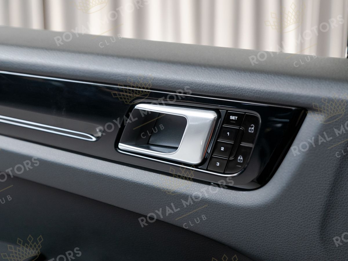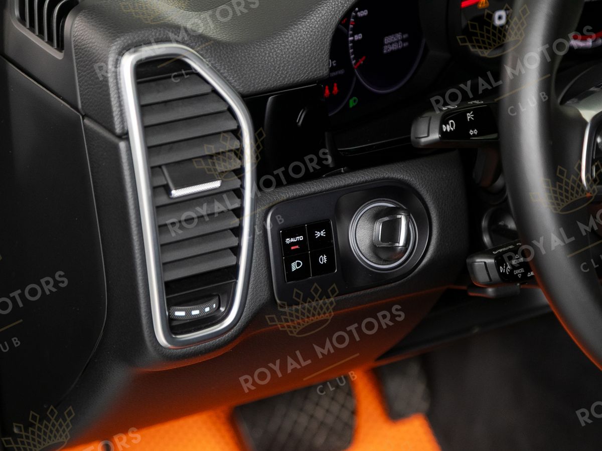 Комплектация оснащена камерами с обзором 360, колёсными дисками R21 Cayenne S, куриз-контролем, доводчиками, динамическим освещением поворотов, памятью водительского сиденья и бесключевым доступом.