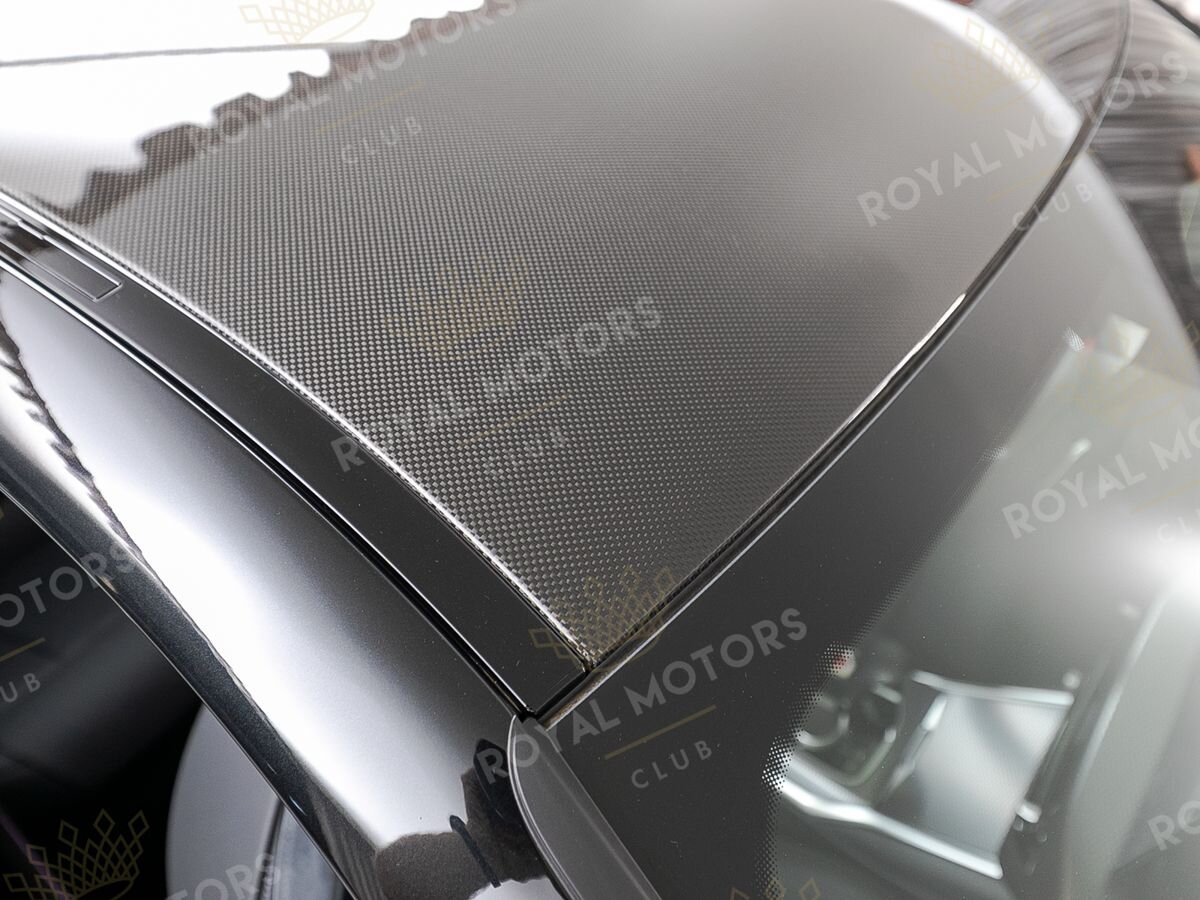 Автомобиль укомплектован углепластиковой крышей — это снижает снаряженную массу и центр тяжести. Полностью светодиодные фары входят в стандартную комплектацию.