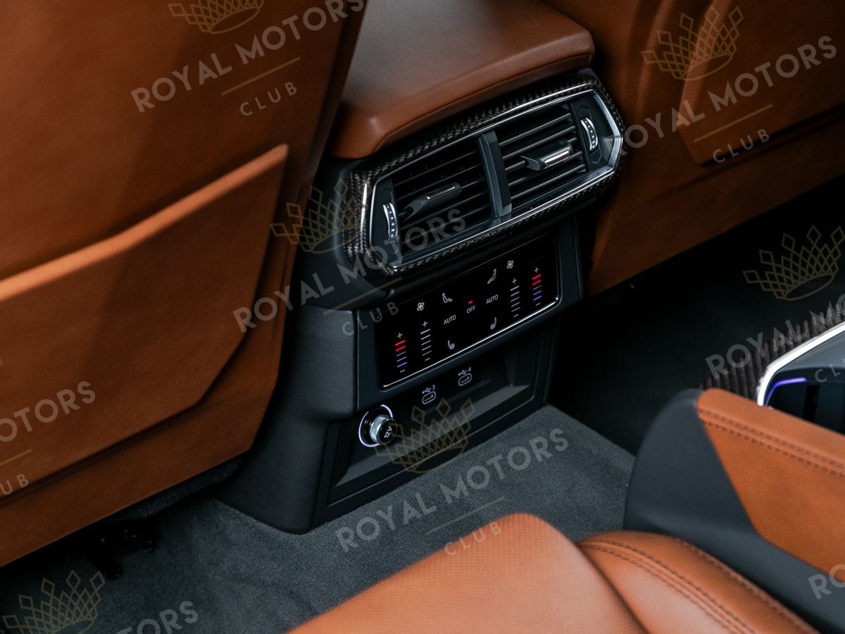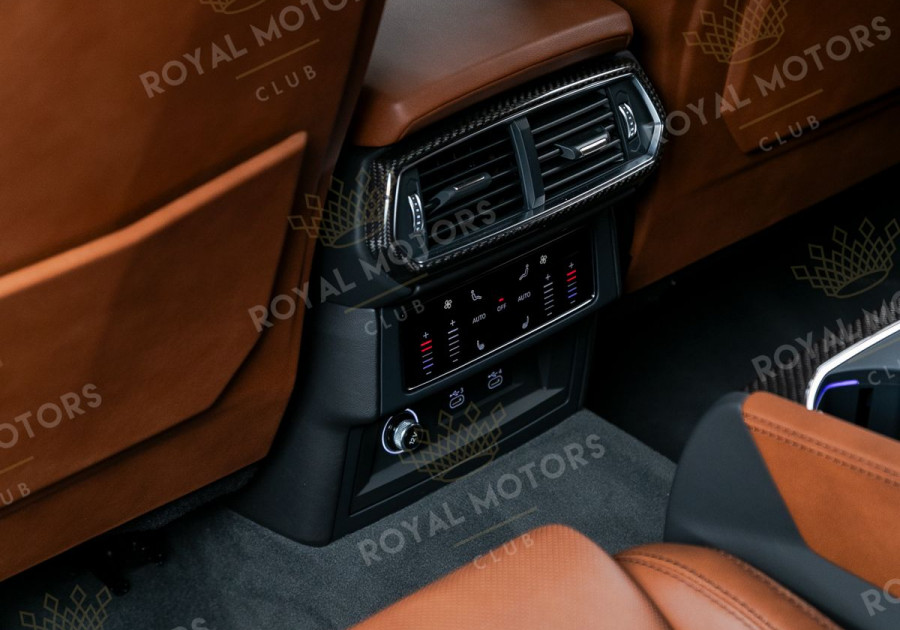 Комплектация оснащена карбон-пакетом интерьера, массажем/вентиляцией сидений, пневматической подвеской, карбон-керамической тормозной системой, подруливающей задней осью, выхлопной системой Akrapovic, камерами с обзором 360, системой ночного видения, солнцезащитными шторками и премиальной аудиосистемой Bang&Olufsen.