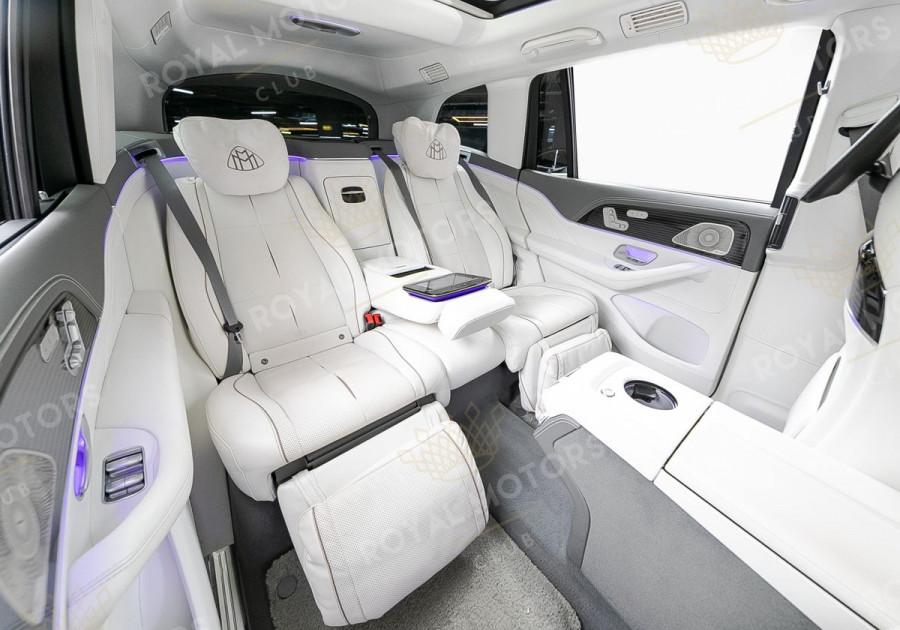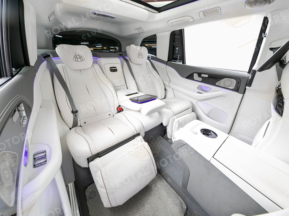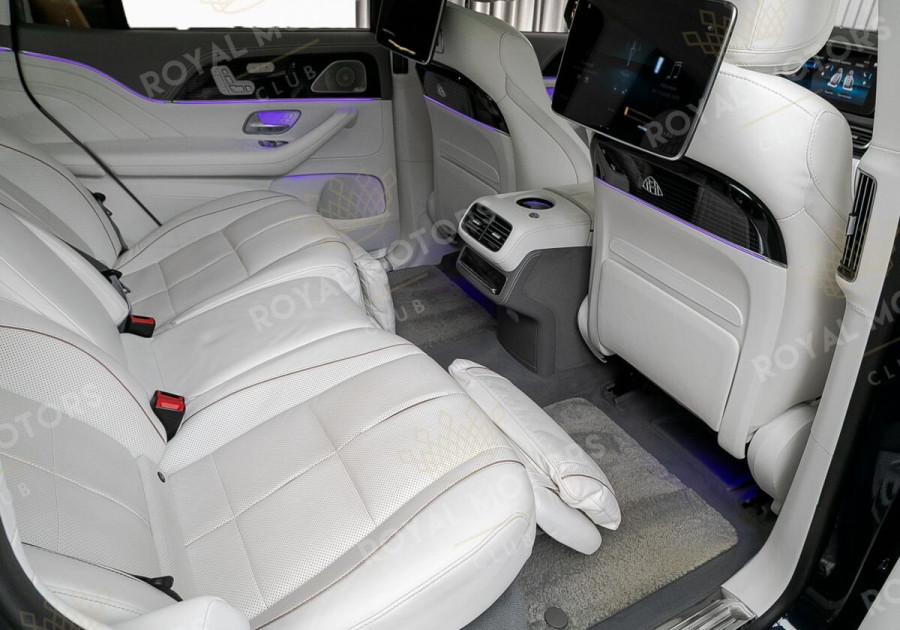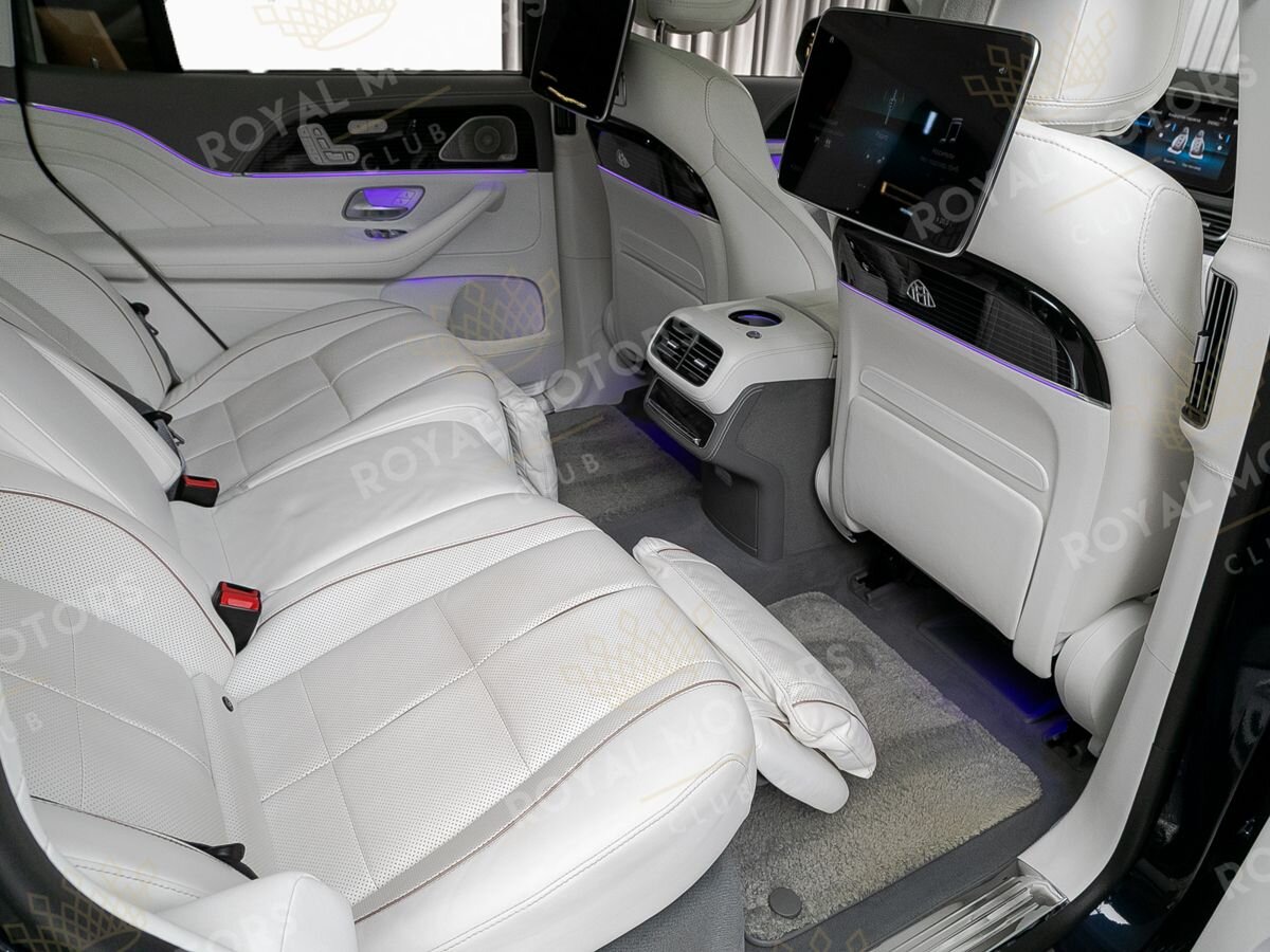 В Mercedes-Maybach GLS600 основное внимание уделено задней части салона. Третий ряд исчез безвозвратно, а второй сдвинут назад на 120 мм.