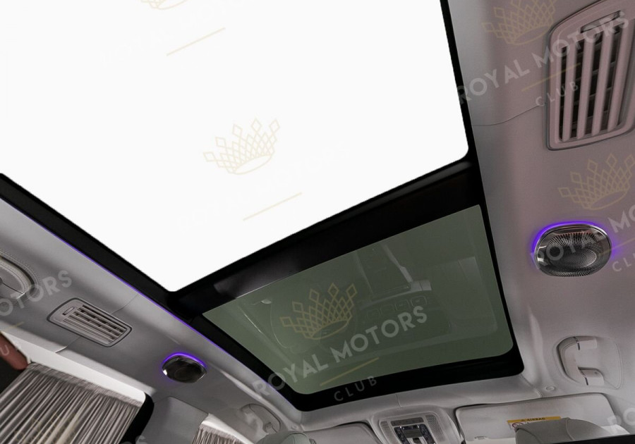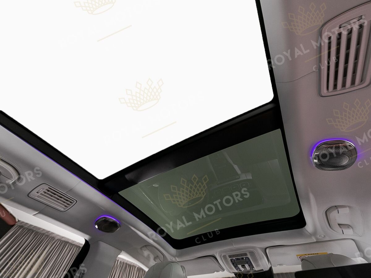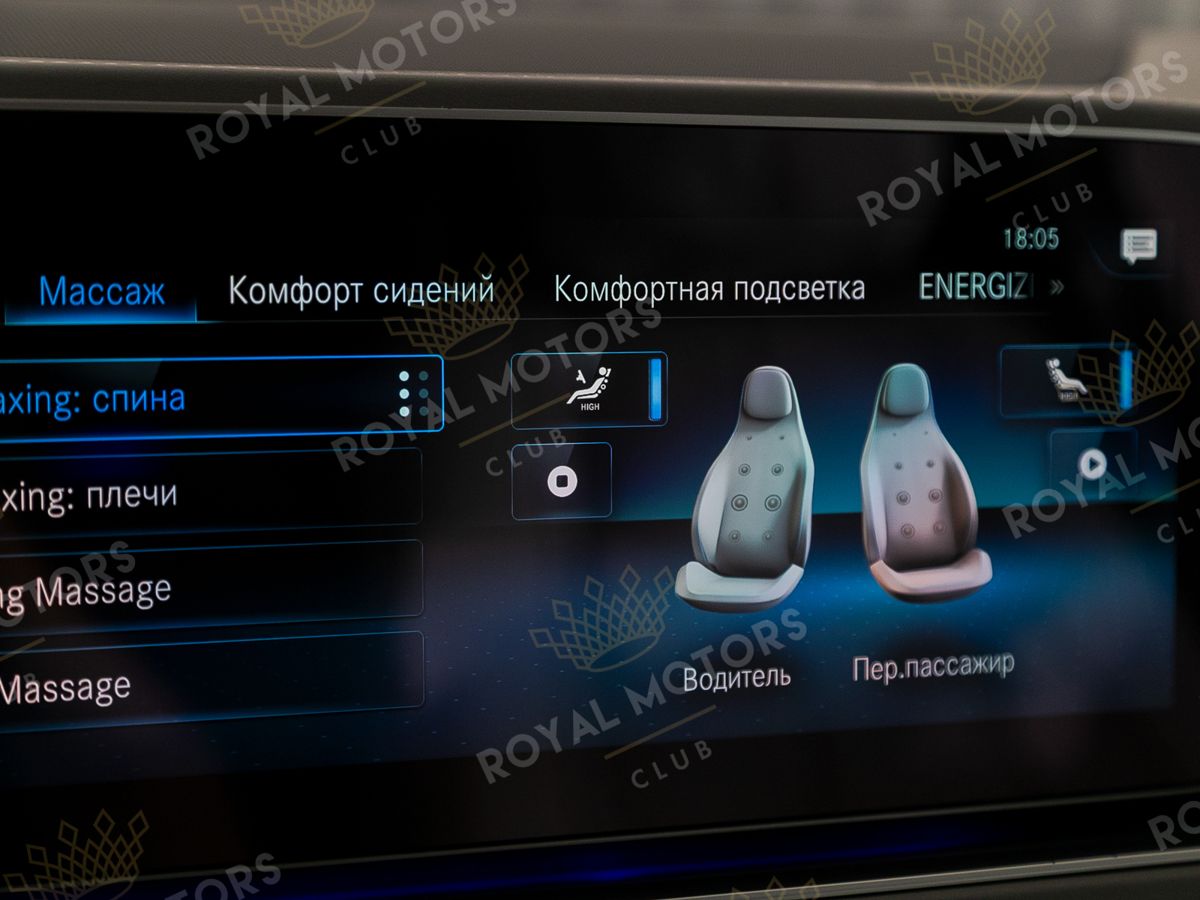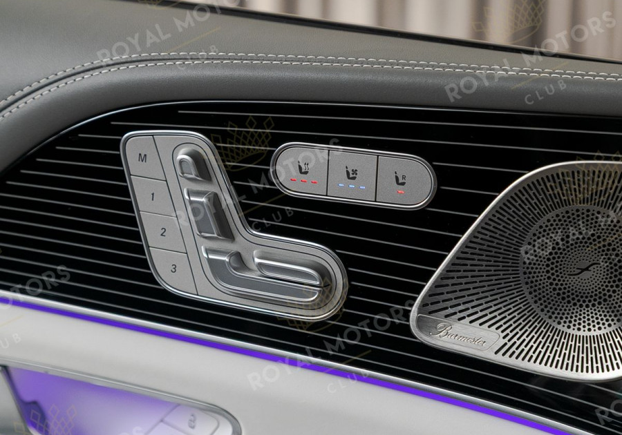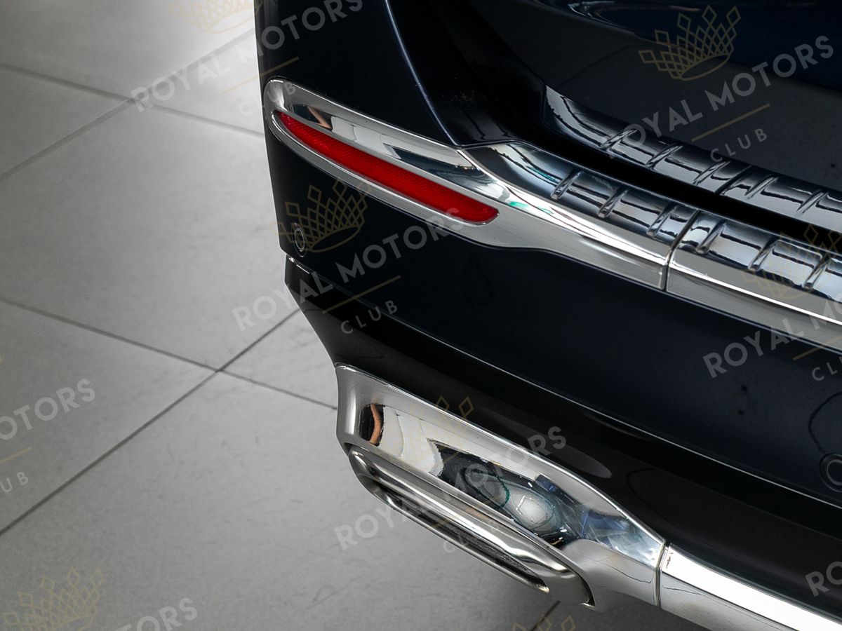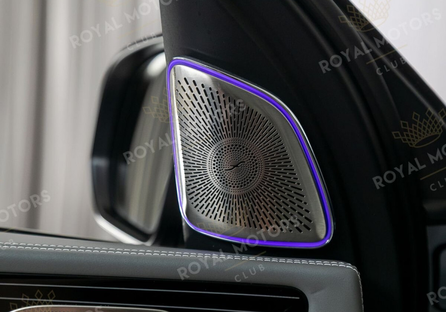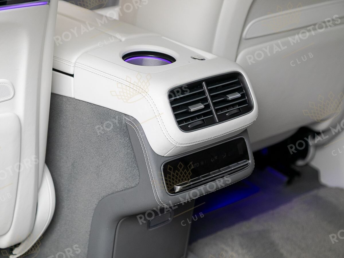 Комплектация оснащена выдвижными порогами с эл.приводом, подвеской E-Active Body Control, камерами с обзором 360, массажем/вентиляцией сидений, системой оттоман сидений, мониторами в спинках передних сидений, панорамой, отделкой салона кожей Nappa и премиальной аудиосистемой Burmester 3D High-End.