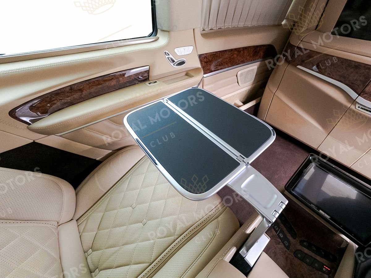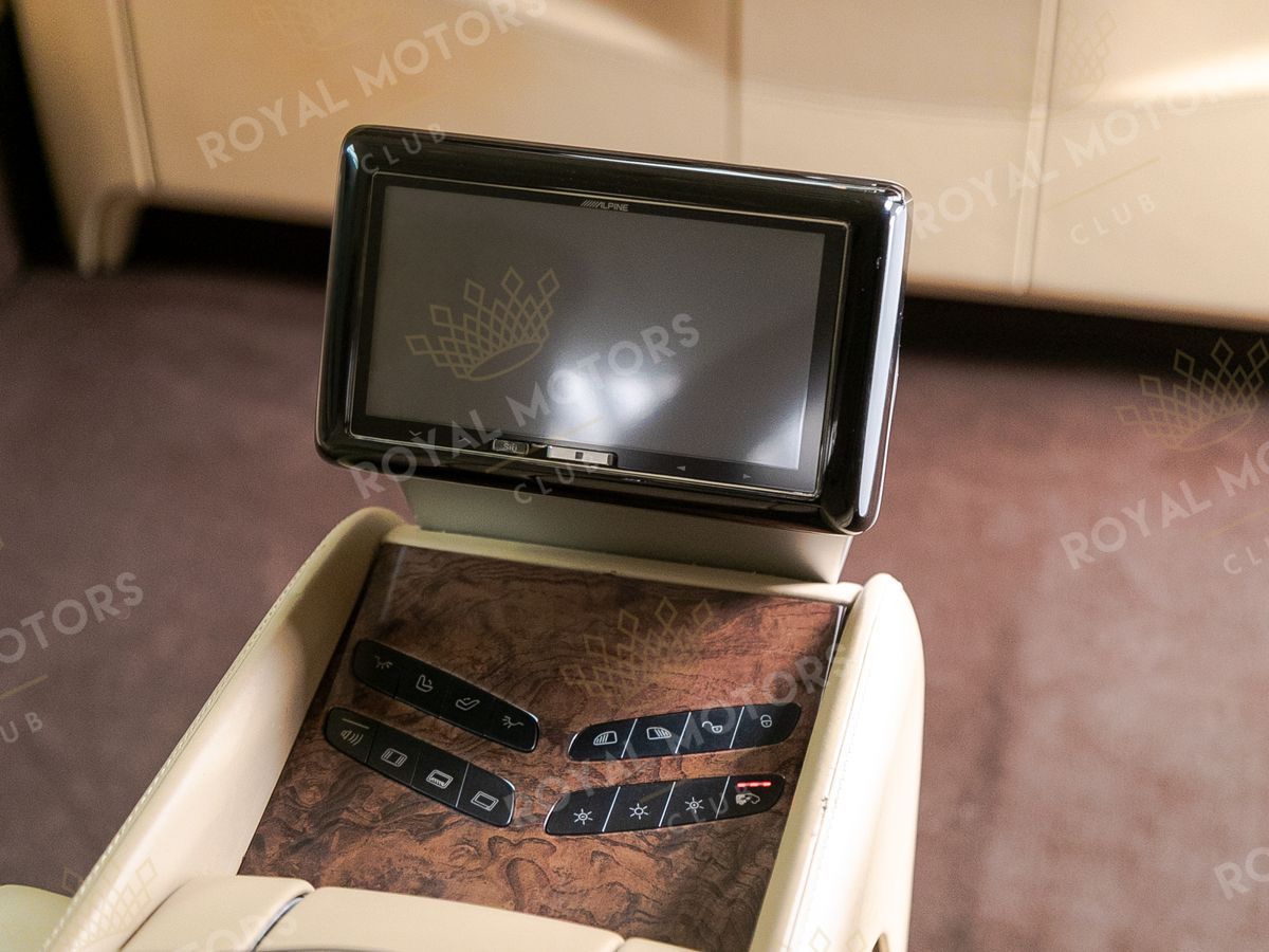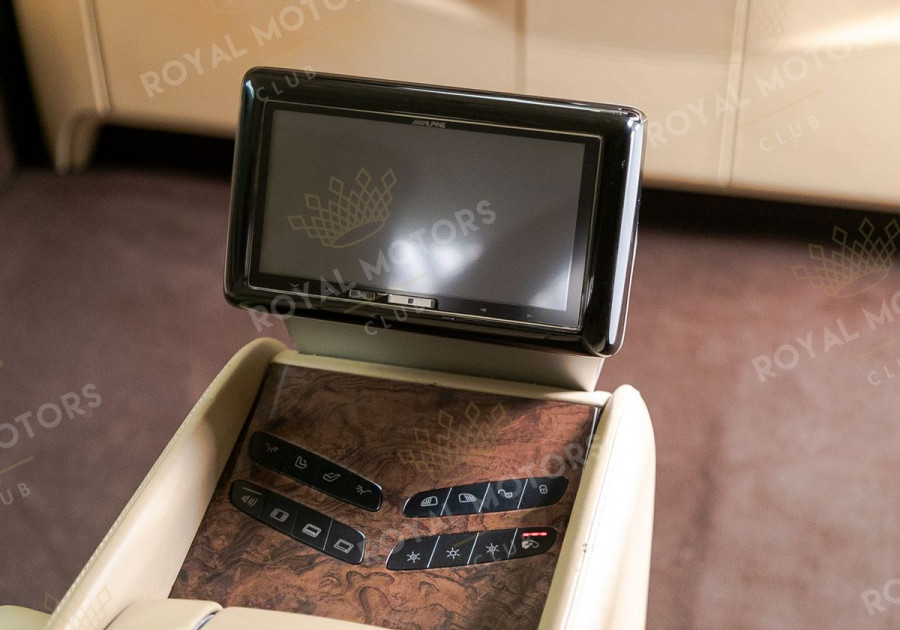 Комплектация оснащена пневматической подвеской, межсалонной перегородкой с монитором, системой оттоман сидений, вентиляцией сидений, камерами с обзором 360, Led Intelligent Light System и солнцезащитными шторками.