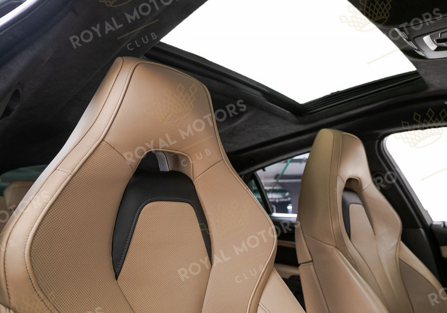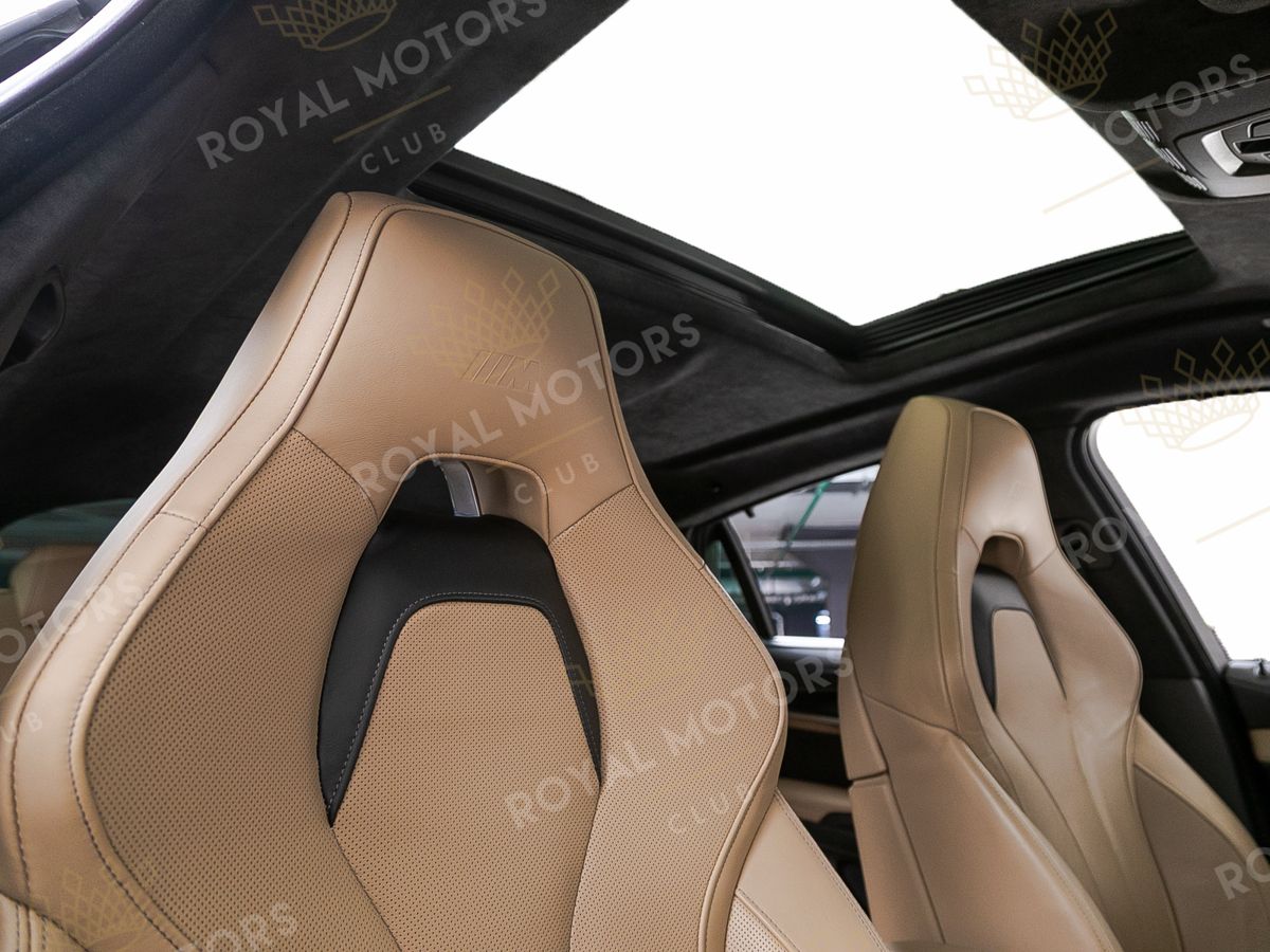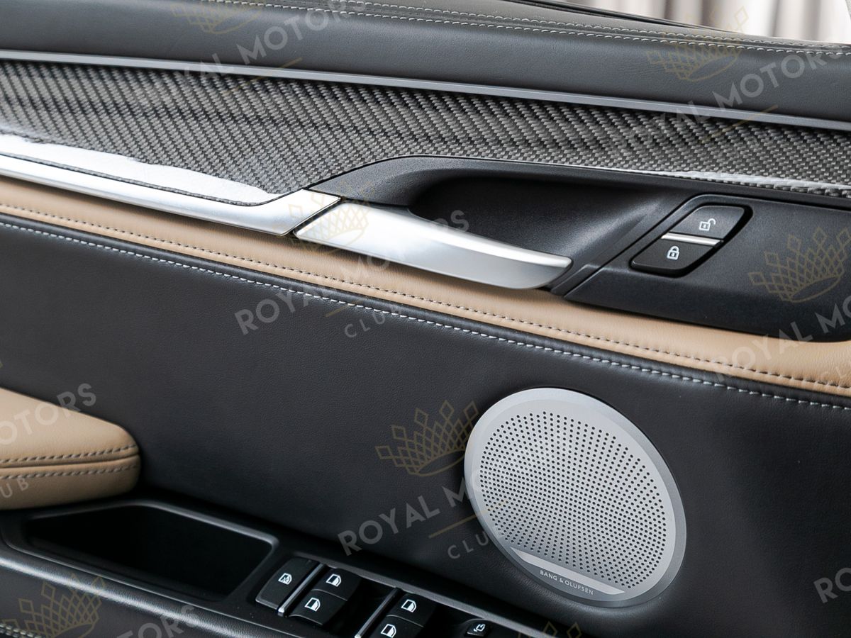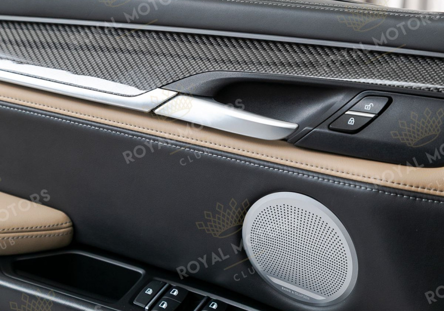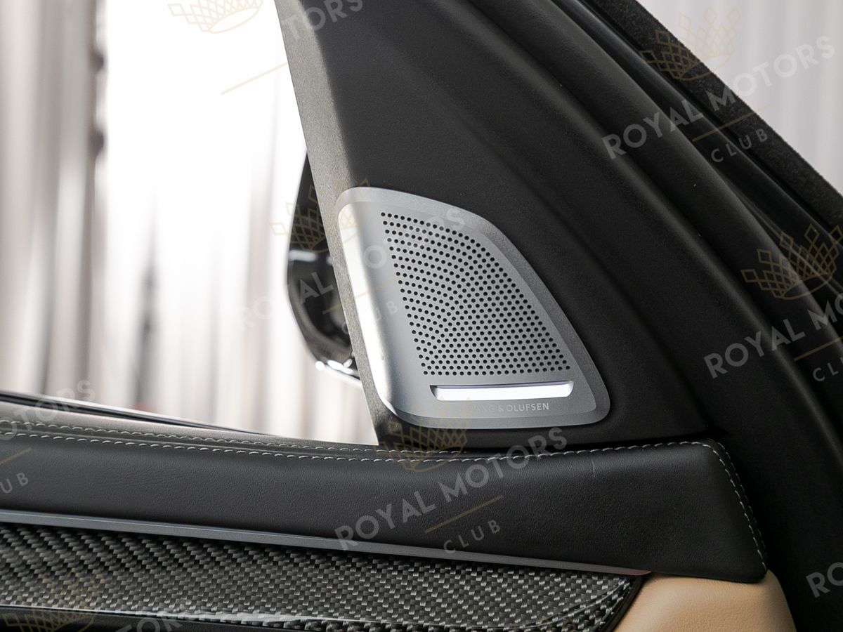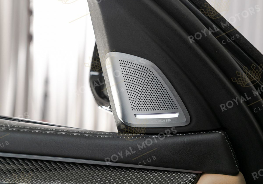 Комплектация оснащена карбон-пакетом интерьера, камерами с обзором 360, проекцией, вентиляцией сидений, доводчиками, солнцезащитными шторками, люком и премиальной аудиосистемой Bang&Olufsen.