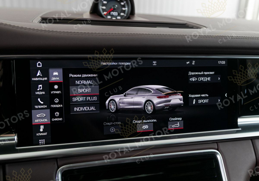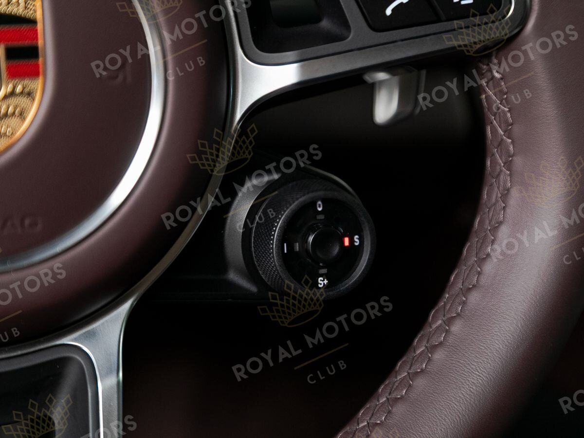Комплектация оснащена Porsche Active Suspension Management, камерами с обзором 360, 18-позиционными сиденьями с функцией памяти, светодиодными матричными фарами, пакетом Sport Chrono, панорамой и премиальной аудиосистемой BOSE.