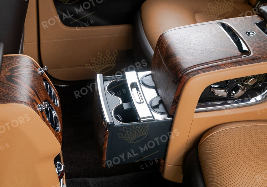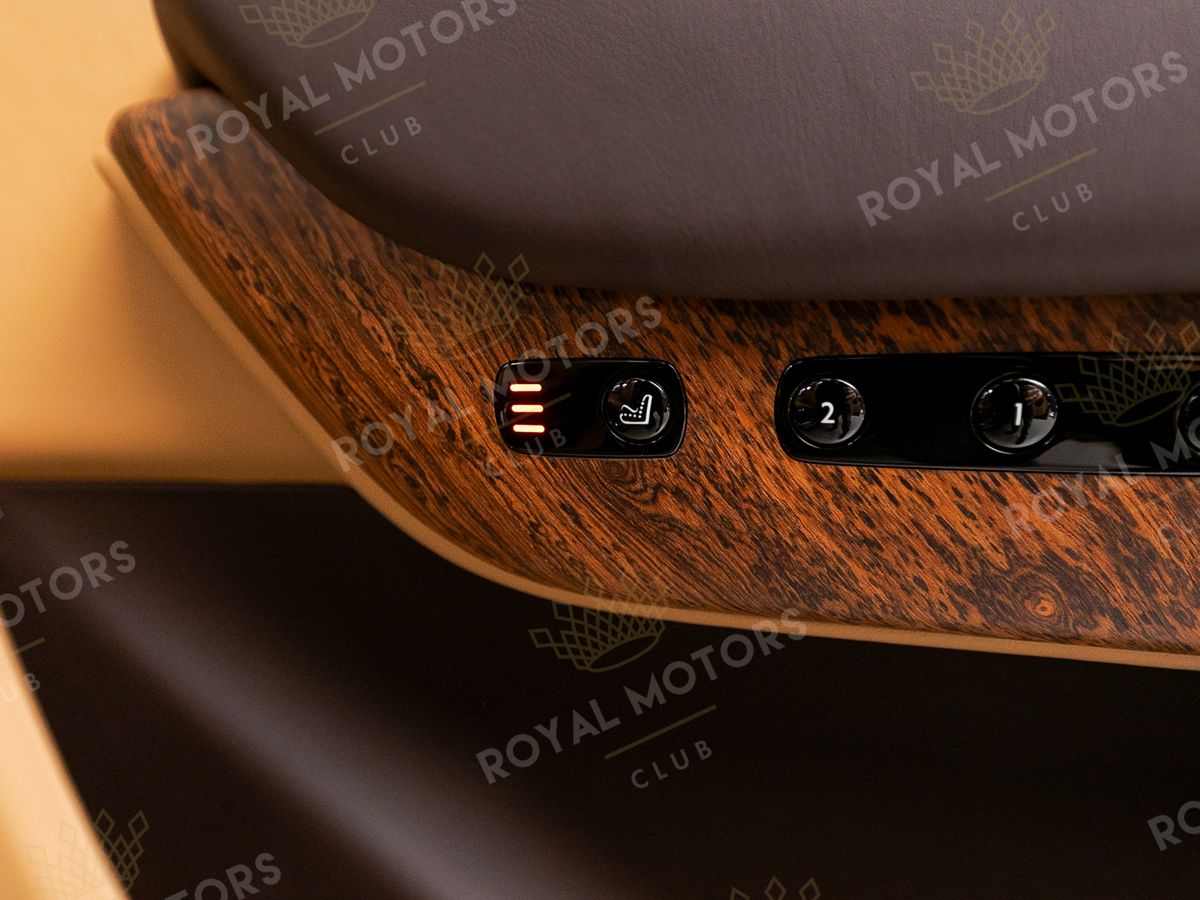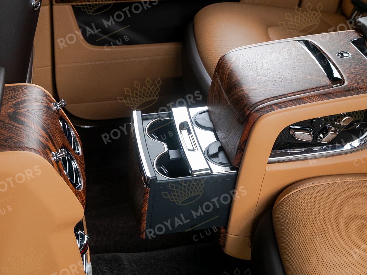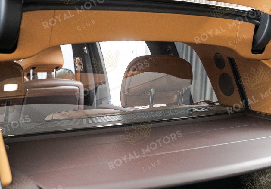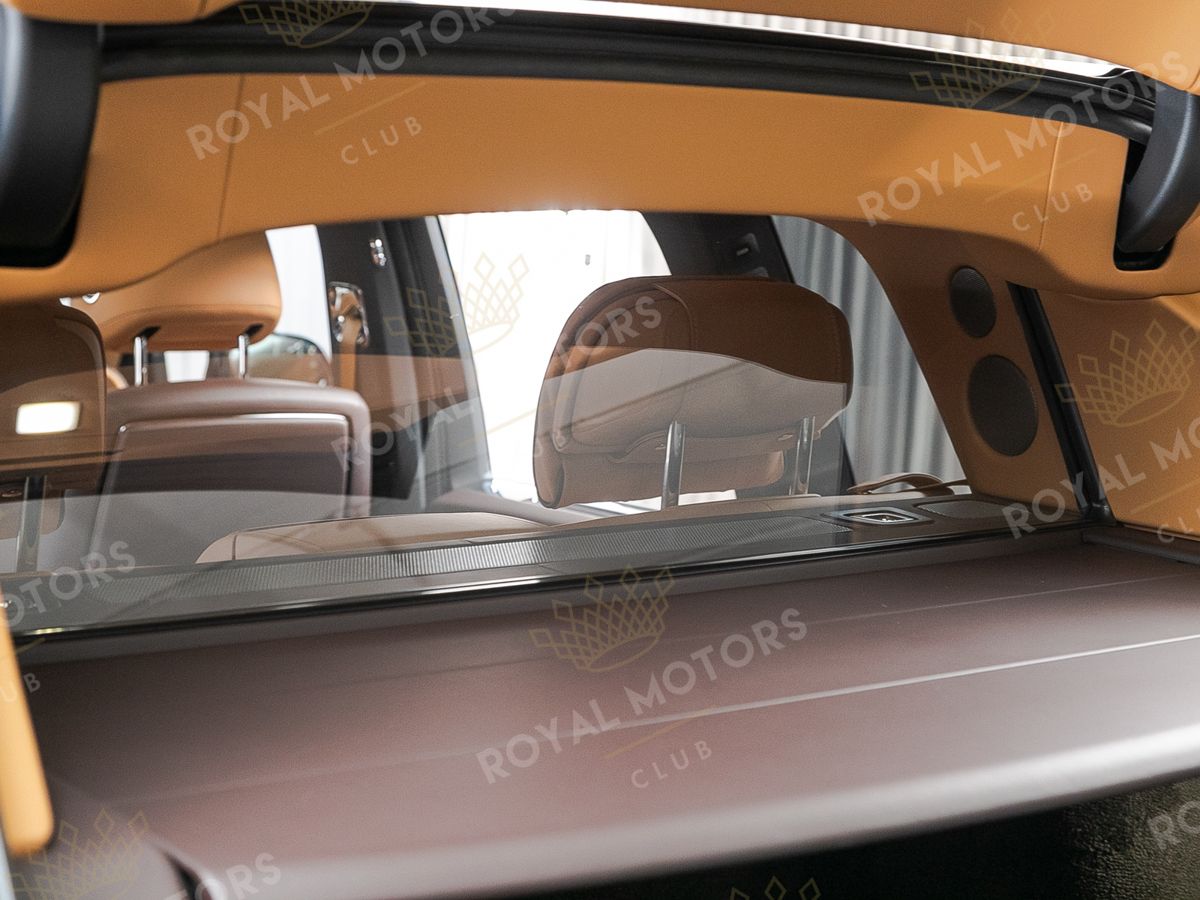 Комплектация оснащена раздельными задними сиденьями, пневматической подвеской, камерами с обзором 360, массажем/вентиляцией сидений, мониторами/столами в спинках передних сидений, системой ночного видения, проекцией и премиальной аудиосистемой Rolls-Royce Bespoke Audio.