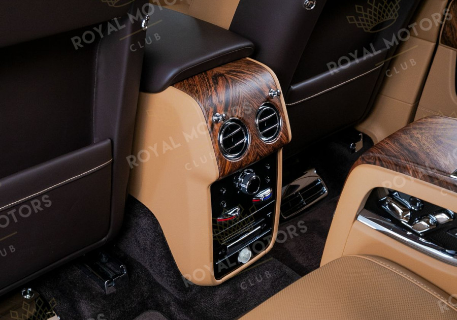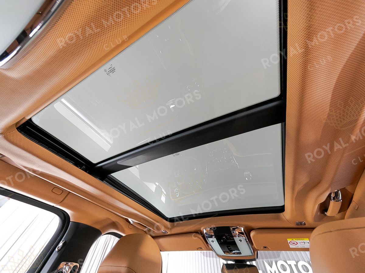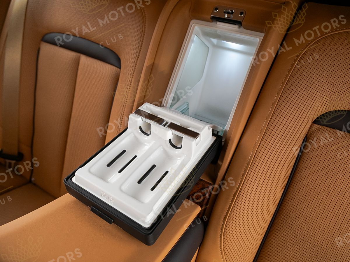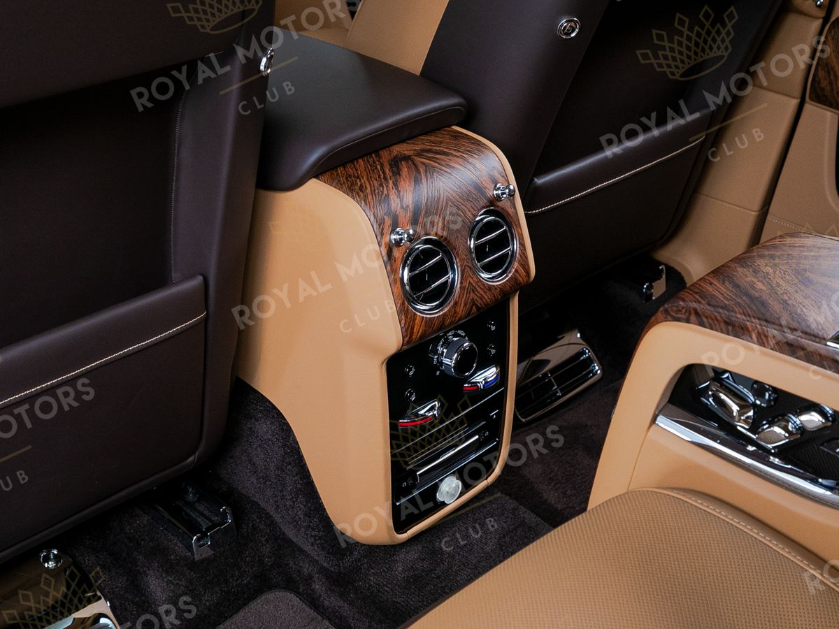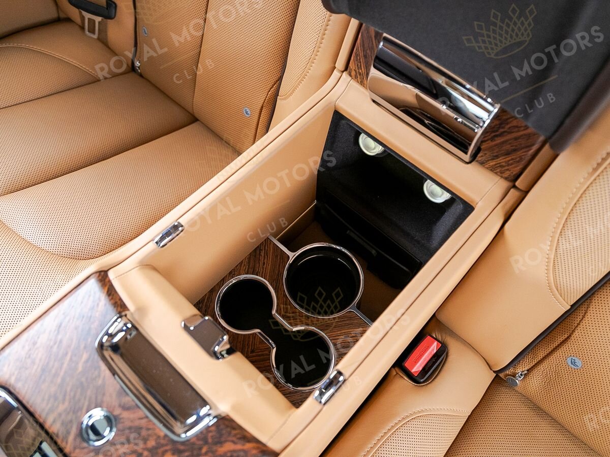 Комплектация оснащена раздельными задними сиденьями, пневматической подвеской, камерами с обзором 360, массажем/вентиляцией сидений, мониторами/столами в спинках передних сидений, системой ночного видения, проекцией и премиальной аудиосистемой Rolls-Royce Bespoke Audio.