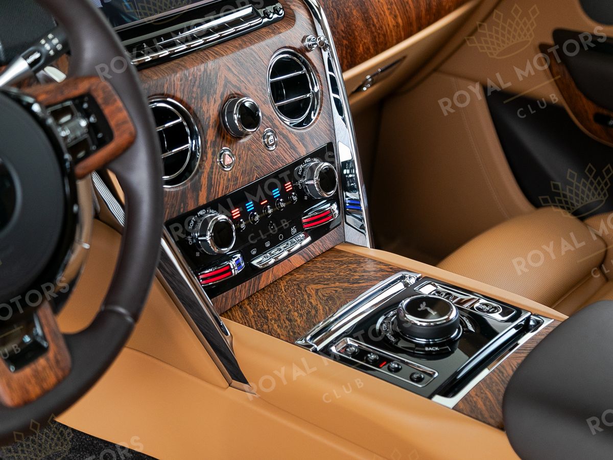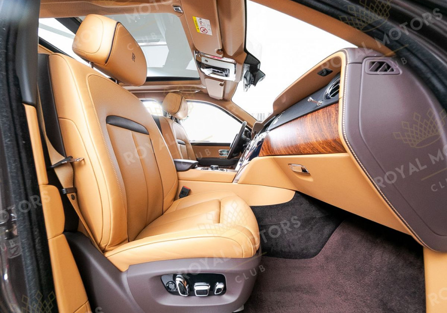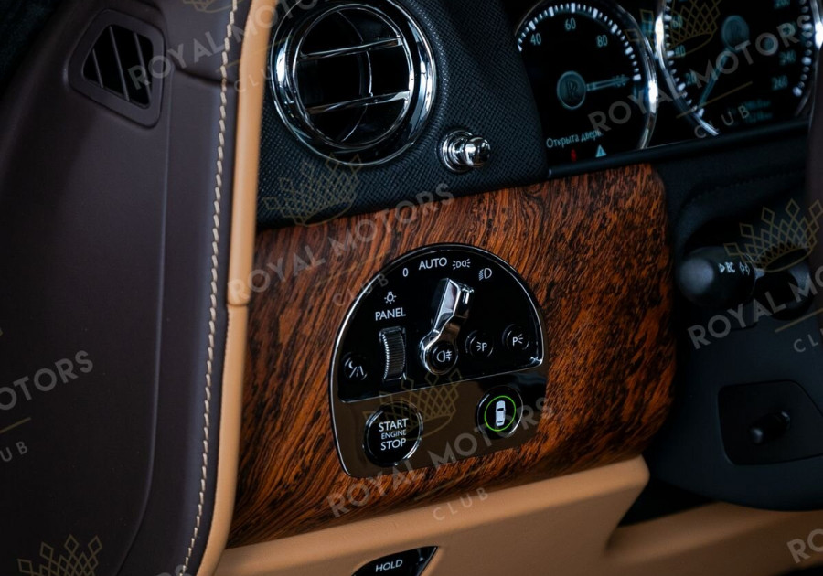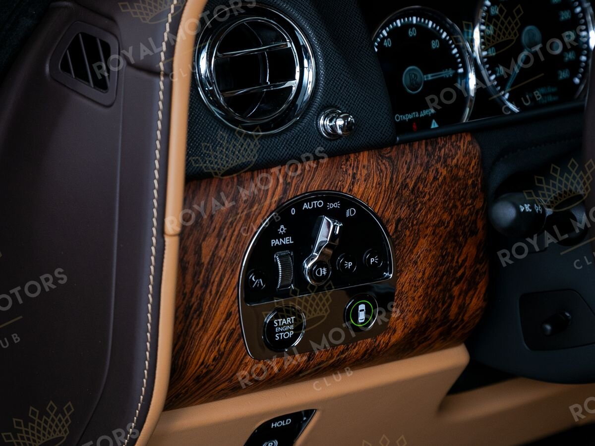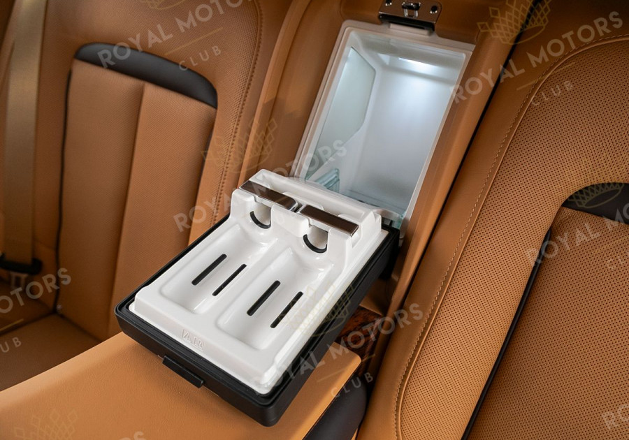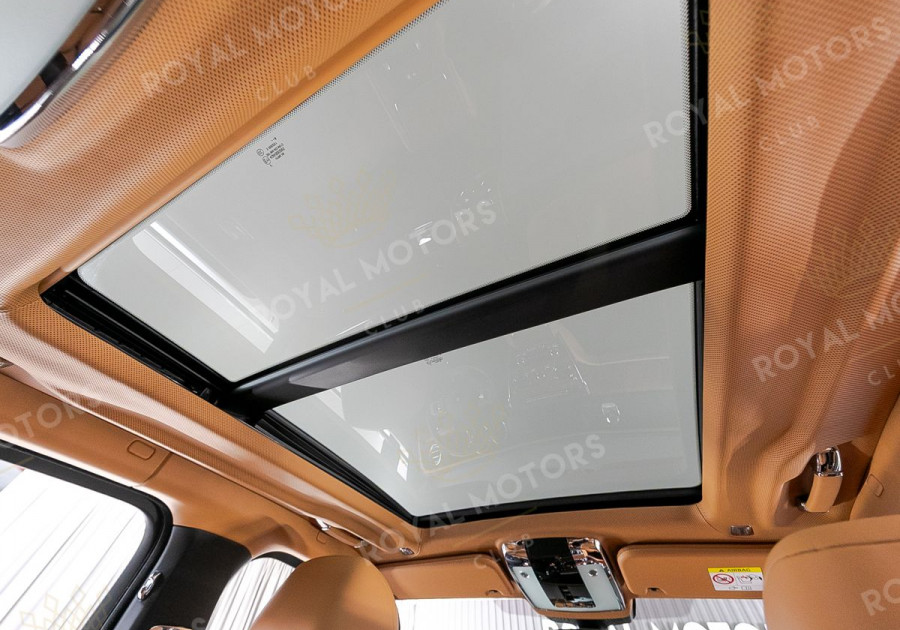 Комплектация оснащена раздельными задними сиденьями, пневматической подвеской, камерами с обзором 360, массажем/вентиляцией сидений, мониторами/столами в спинках передних сидений, системой ночного видения, проекцией и премиальной аудиосистемой Rolls-Royce Bespoke Audio.