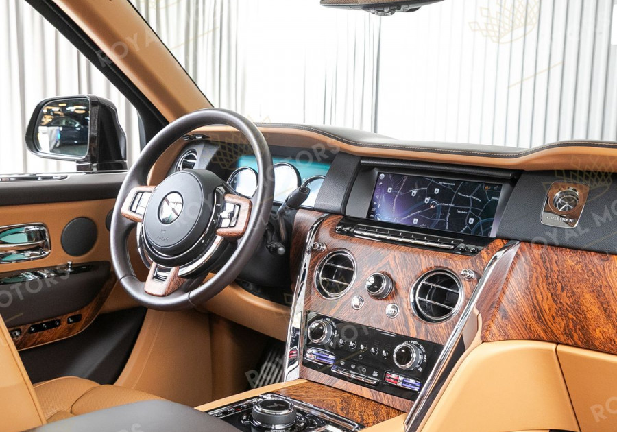 Cullinan имеет роскошный и богато оснащенный салон, в отделке которого преобладает кожа высочайшего качества. Отличительной особенностью внедорожника является наличие сенсорного дисплея мультимедийной системы, которого до этого не было ни у одной модели производителя.