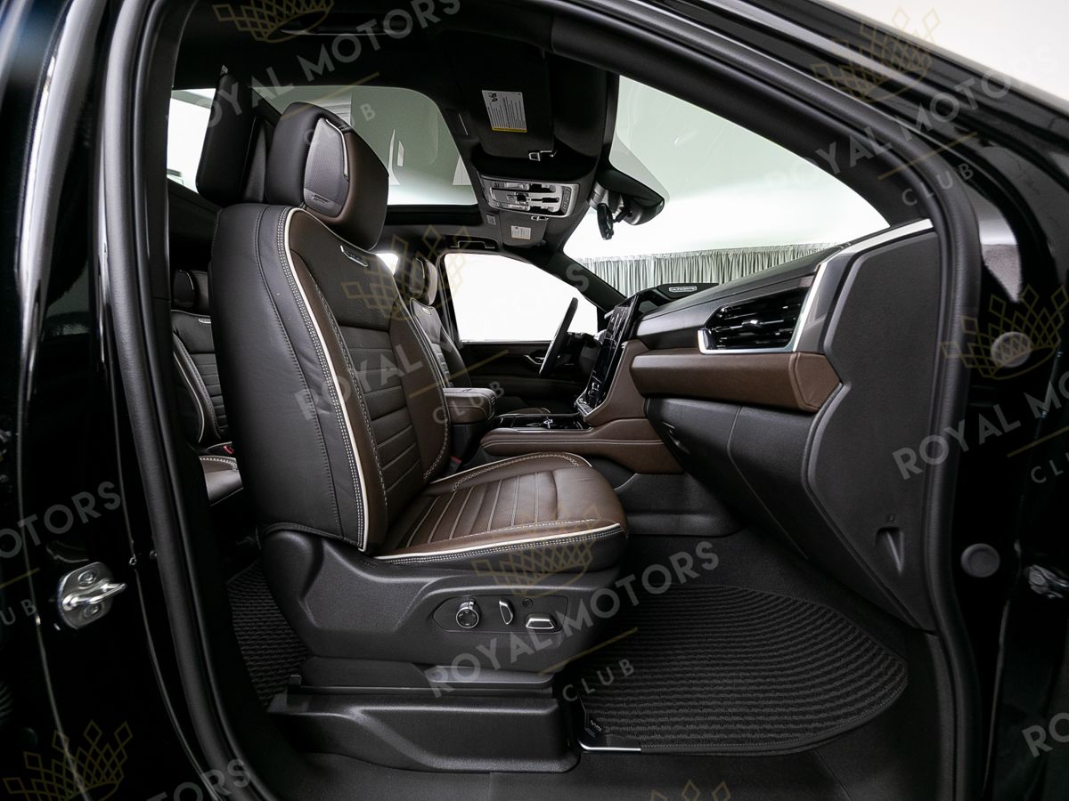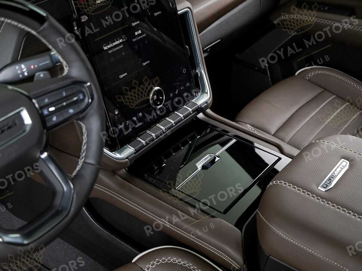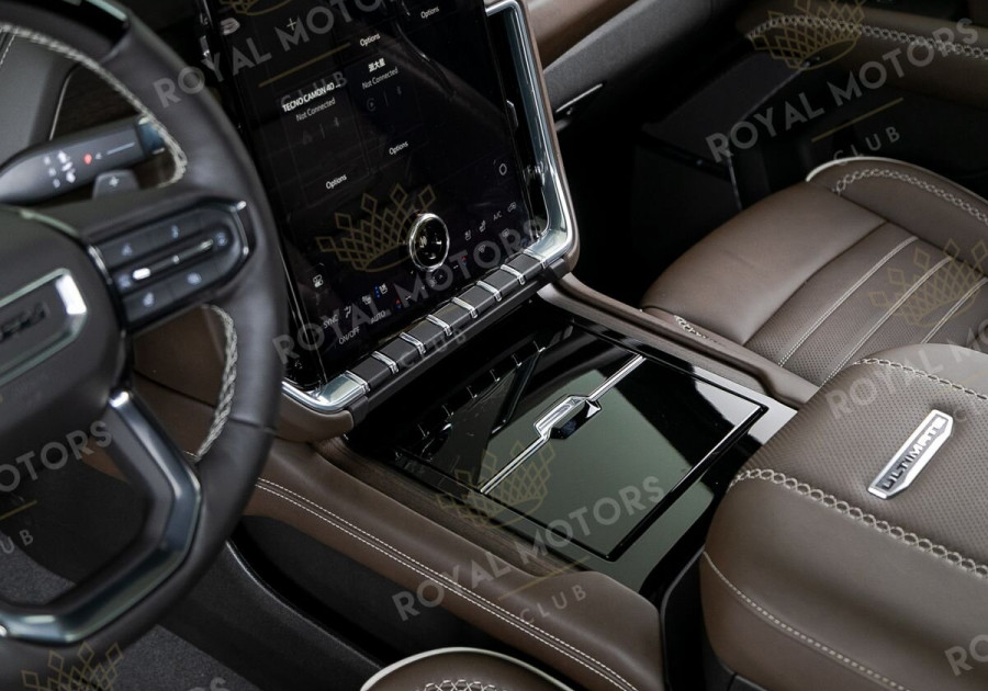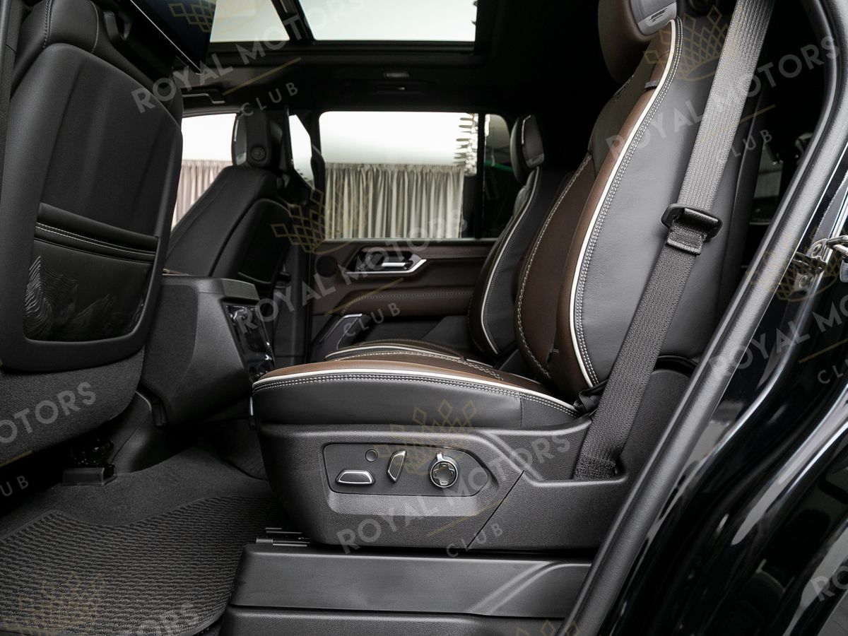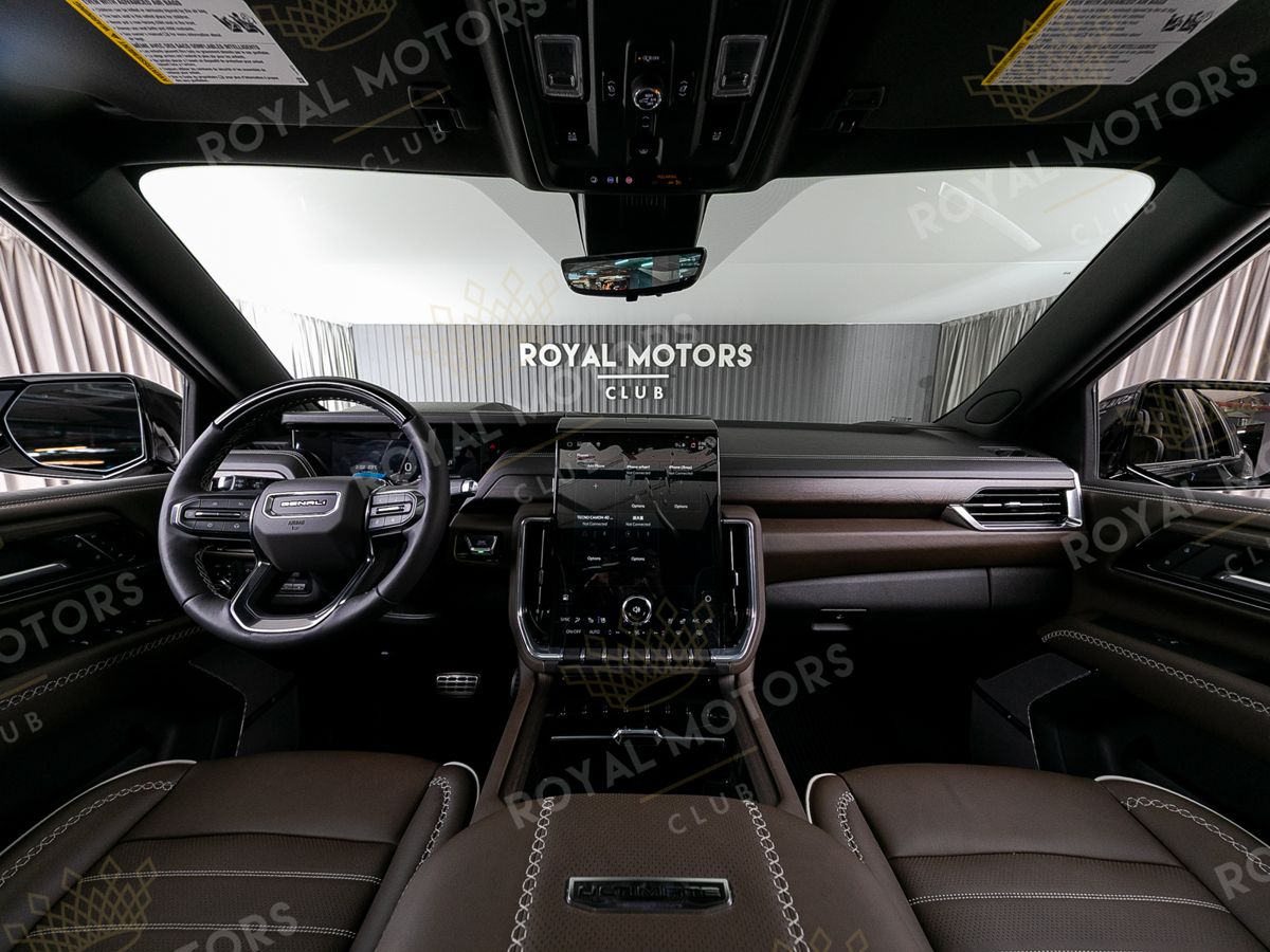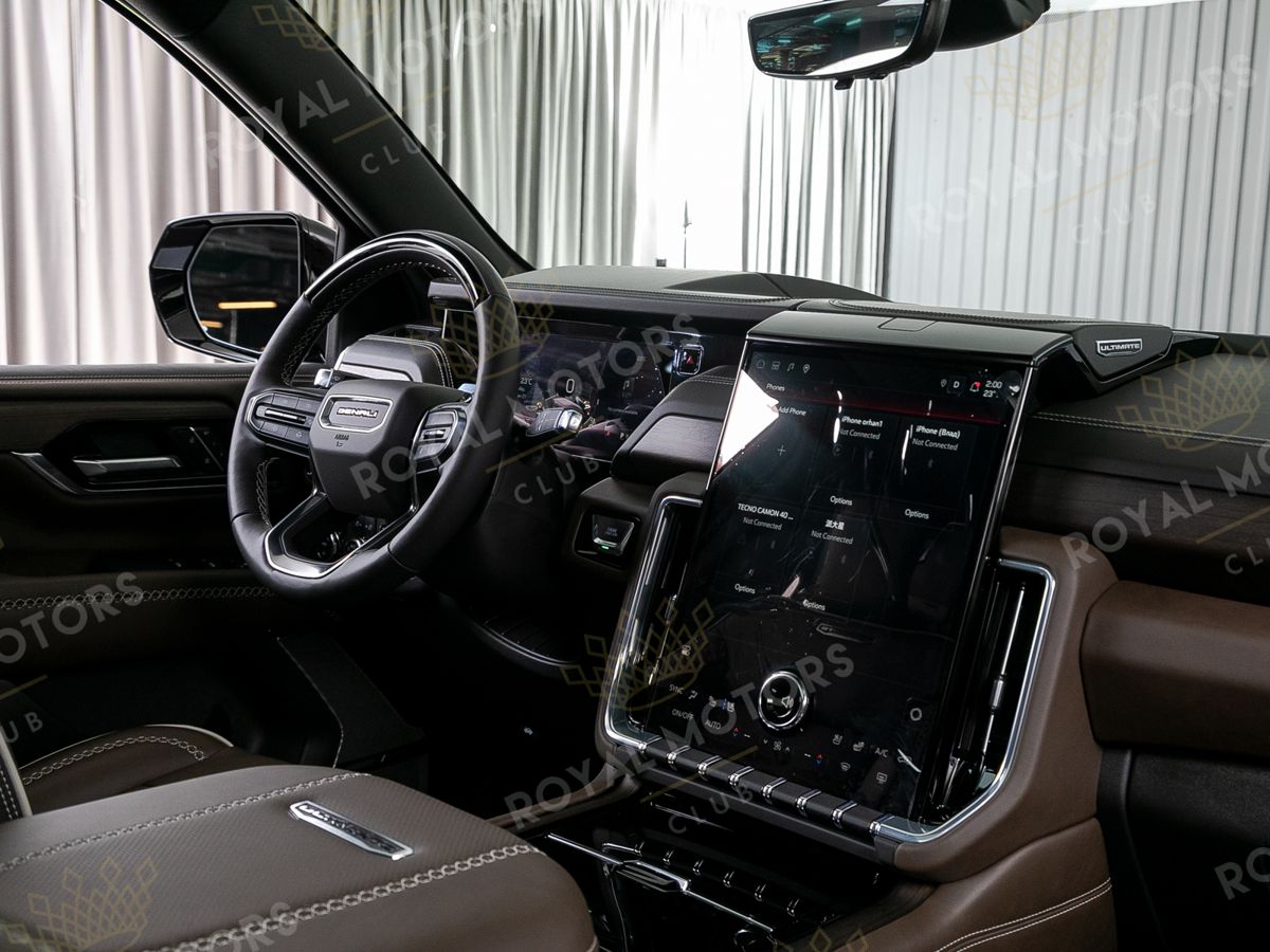 Комплектация оснащена выдвижными порогами с эл.приводом, пневматической подвеской. мониторами в спинках передних сидений, системой Super Cruise, массажем/вентиляцией сидений, камерами с обзором 360, панорамой, проекцией, колёсными дисками Denali Ultimate R24 и премиальной аудиосистемой Bose Performance Series.